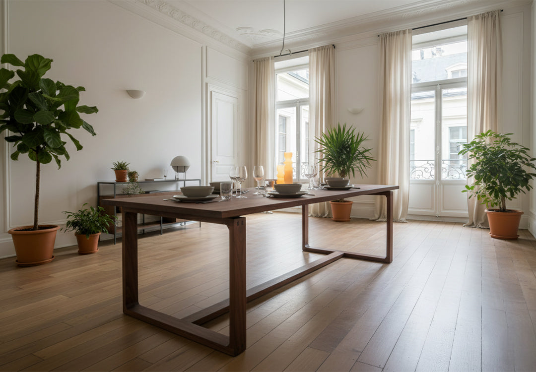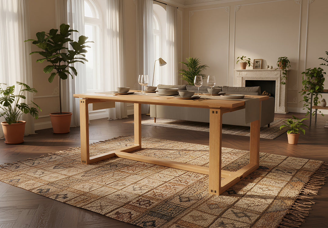 Ginza Table combines simplicity, functionality and elegance, drawing inspiration from Far Eastern design philosophy. Made entirely of solid wood and handcrafted, this table highlights durability and fine workmanship with its wedge-jointed details.