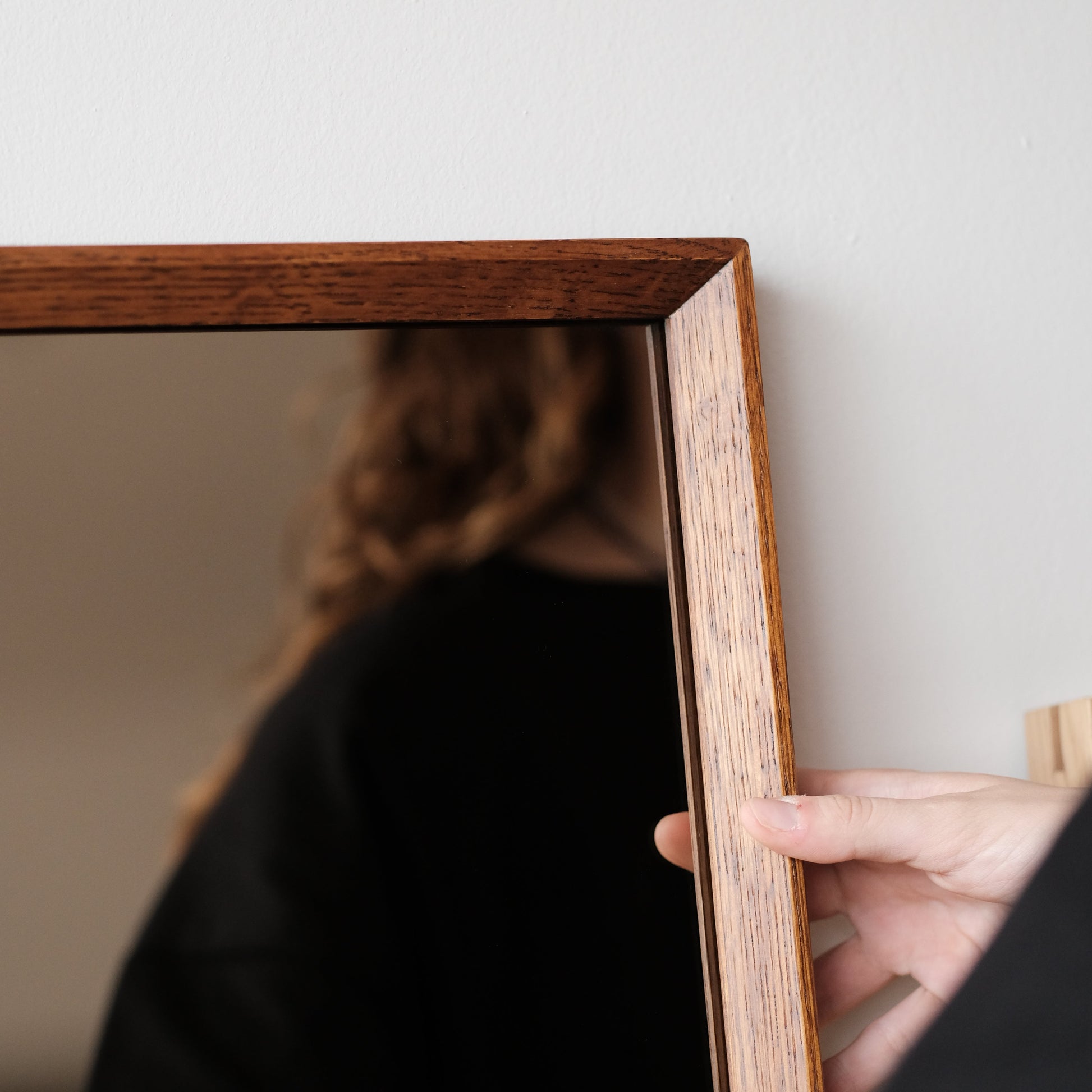 REGULAR solid oak walnut detailed full-length mirror is a stylish and multi-purpose decorative mirror designed with the modern aesthetic approach of the designers and produced with the meticulous workmanship of the carpenters.