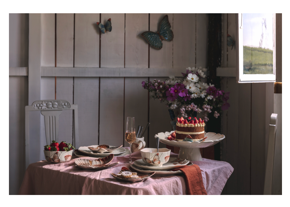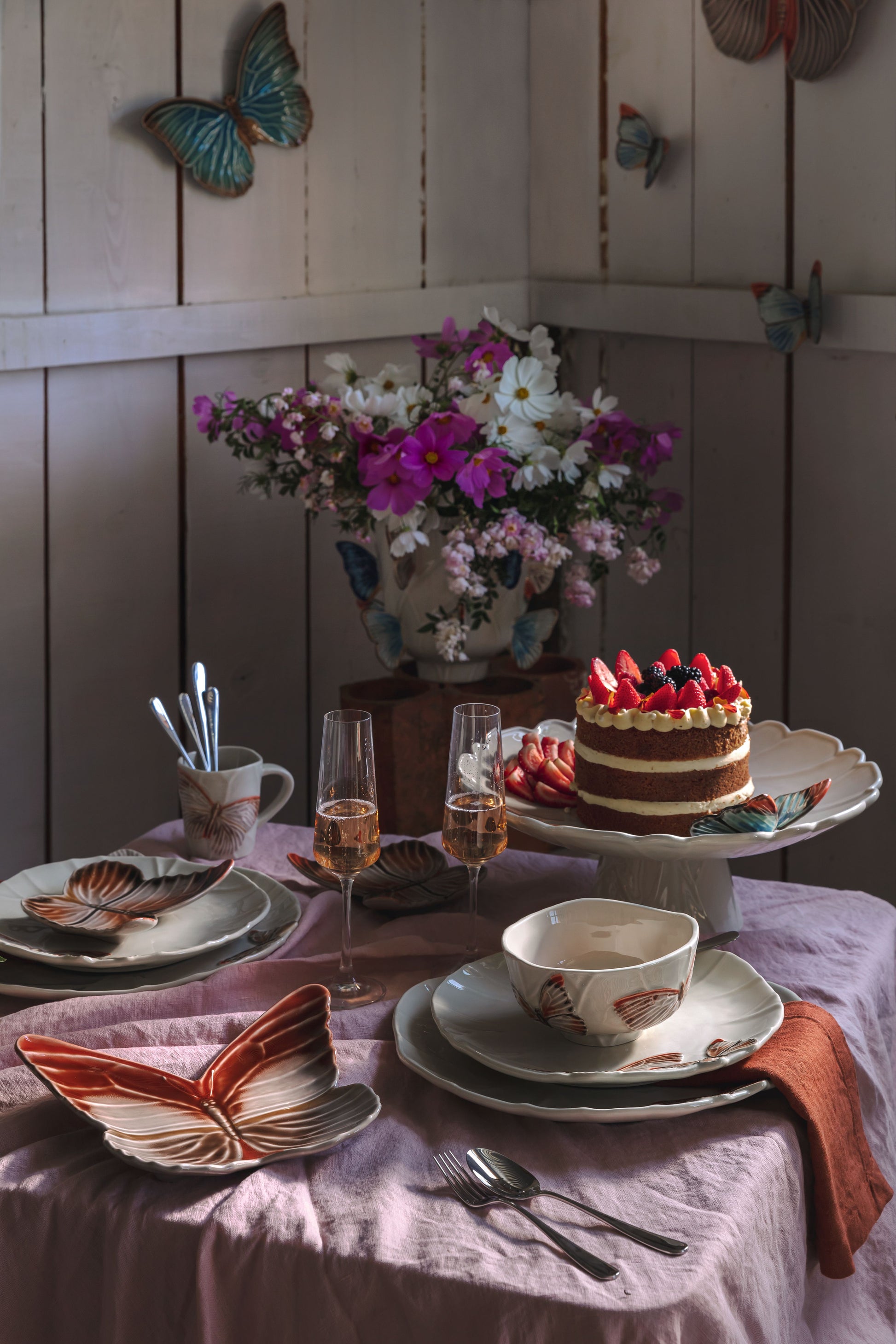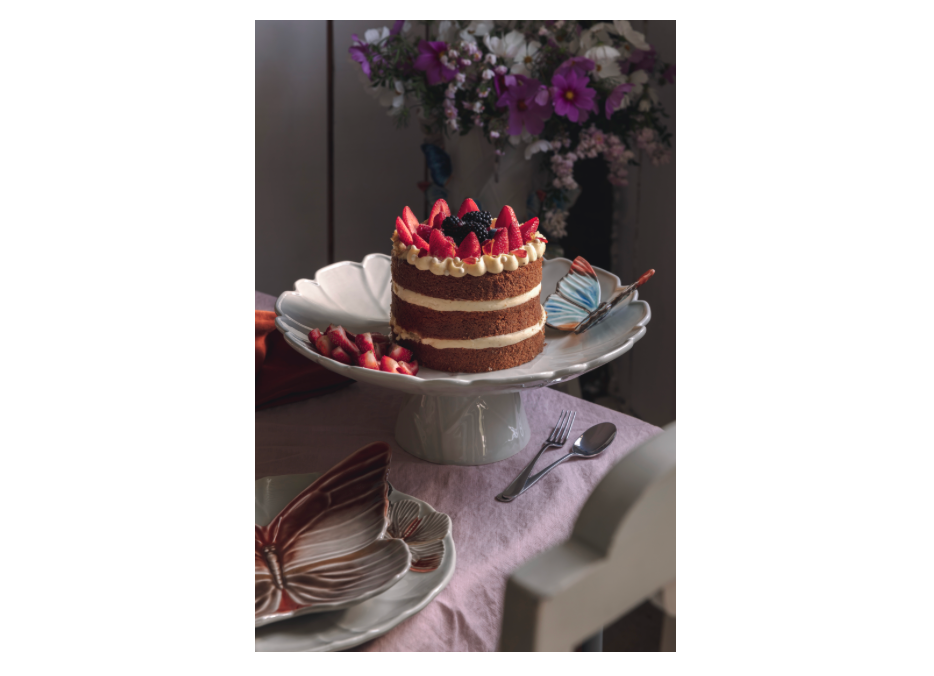 Cloudy Butterflies Beyaz Seramik Kek Standı