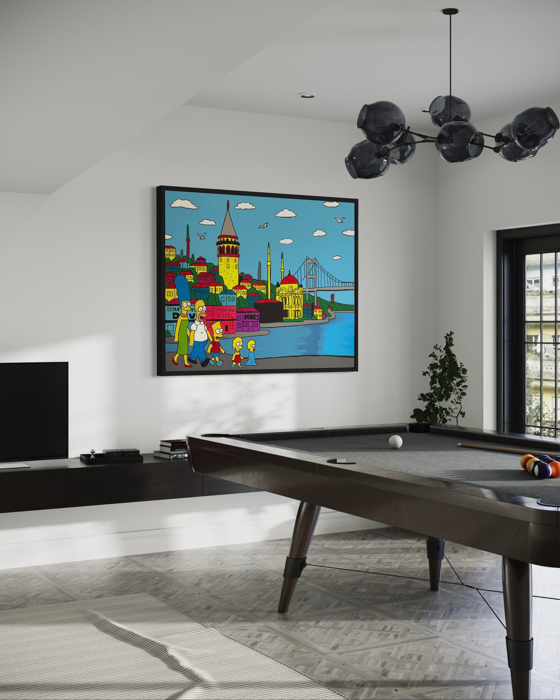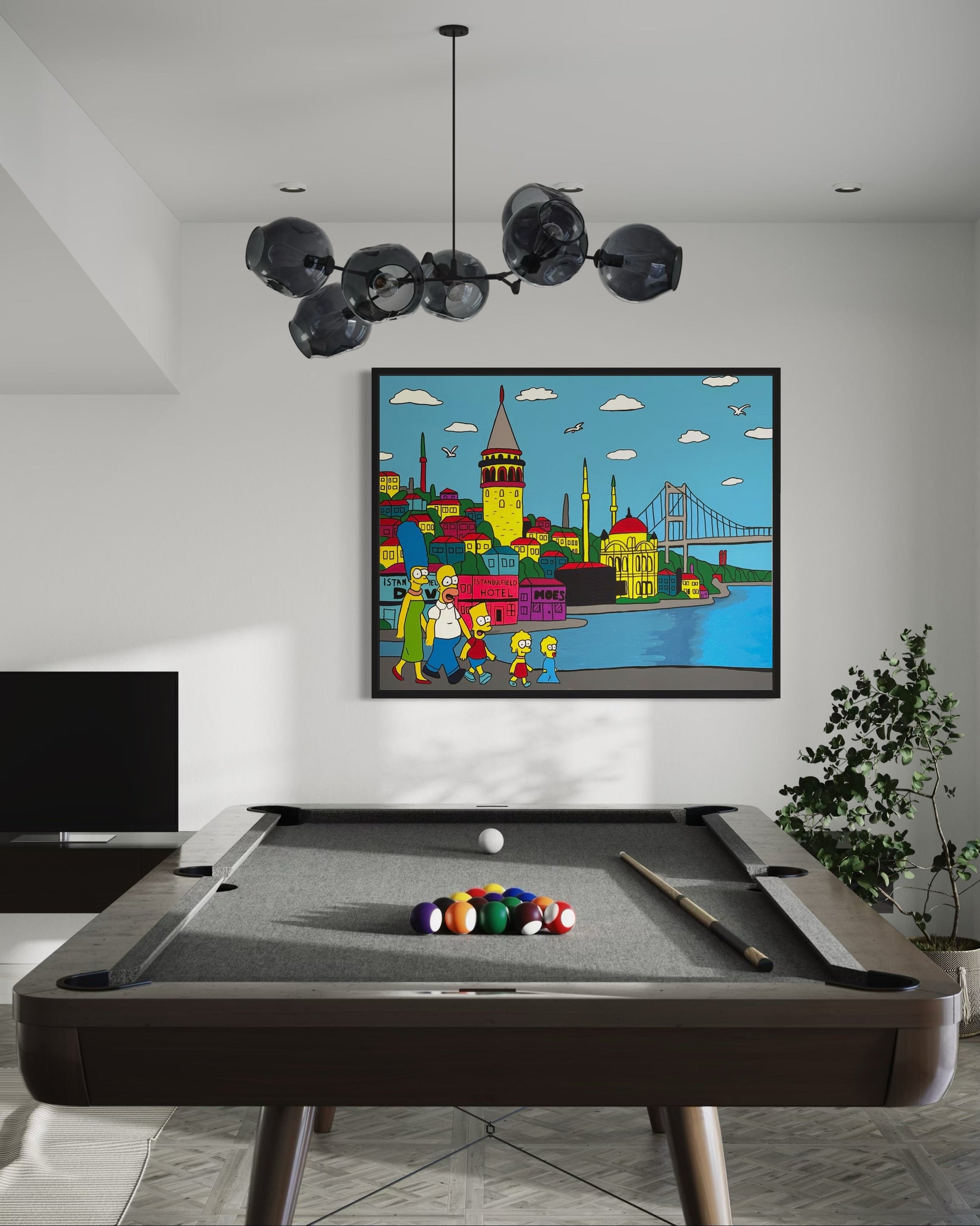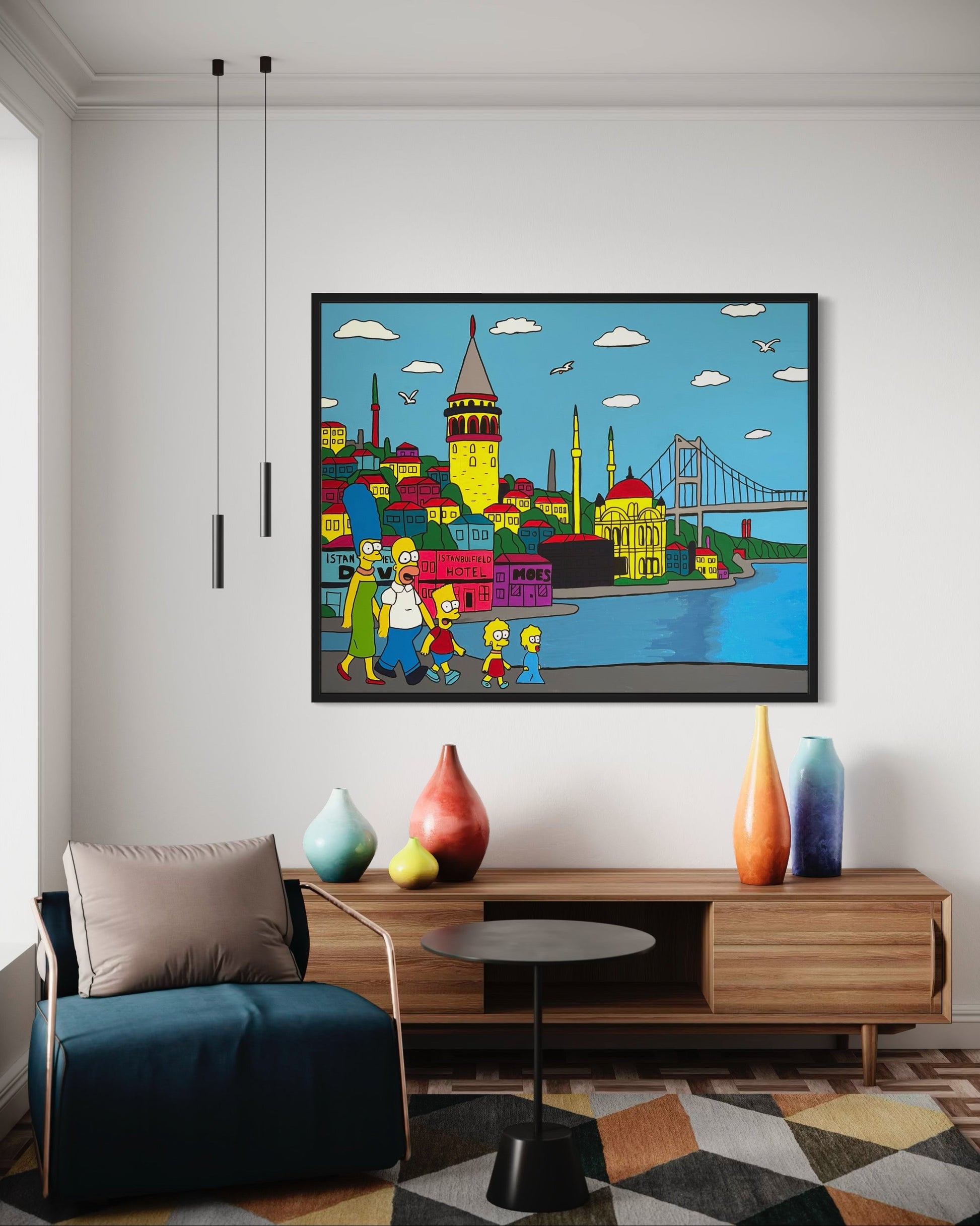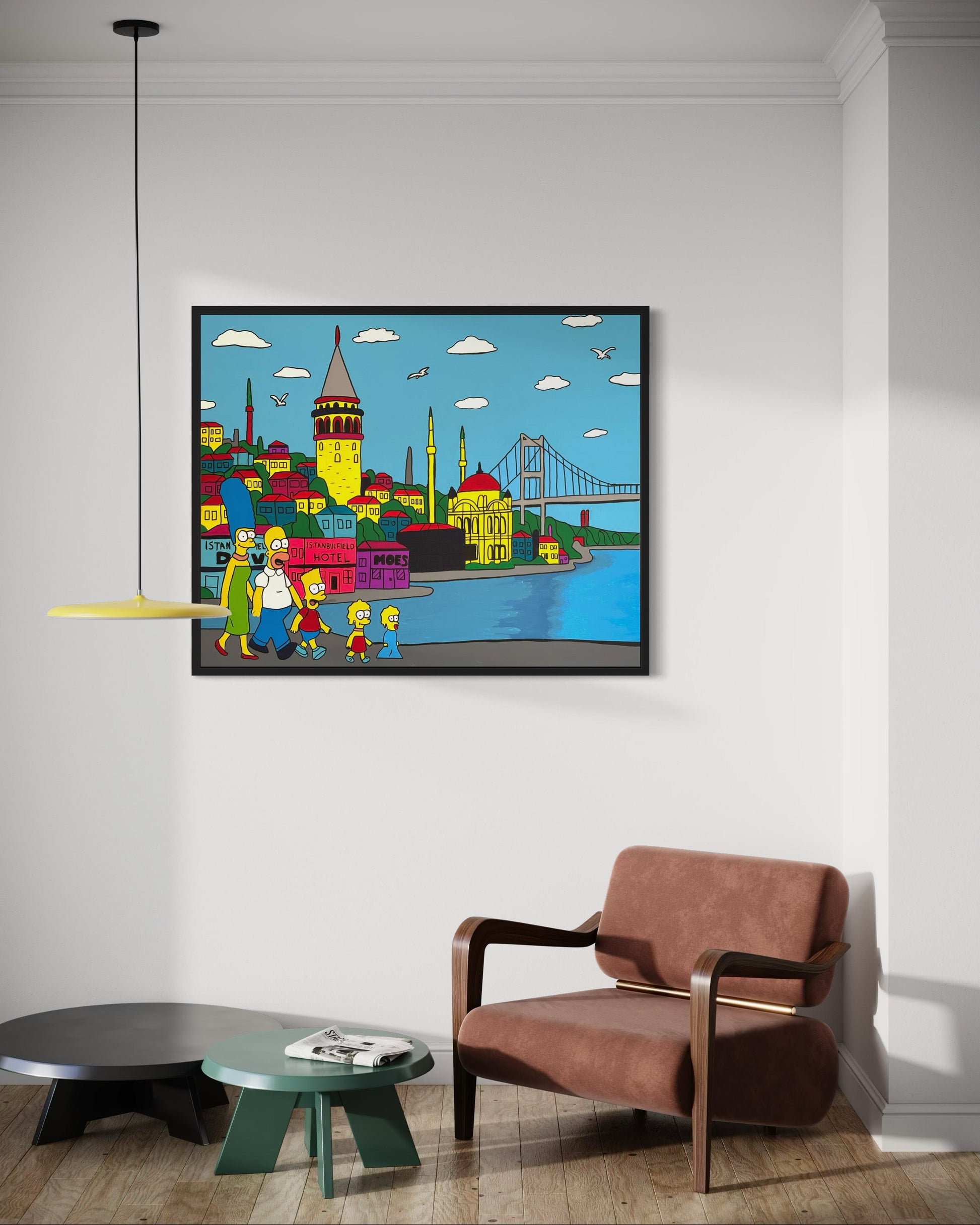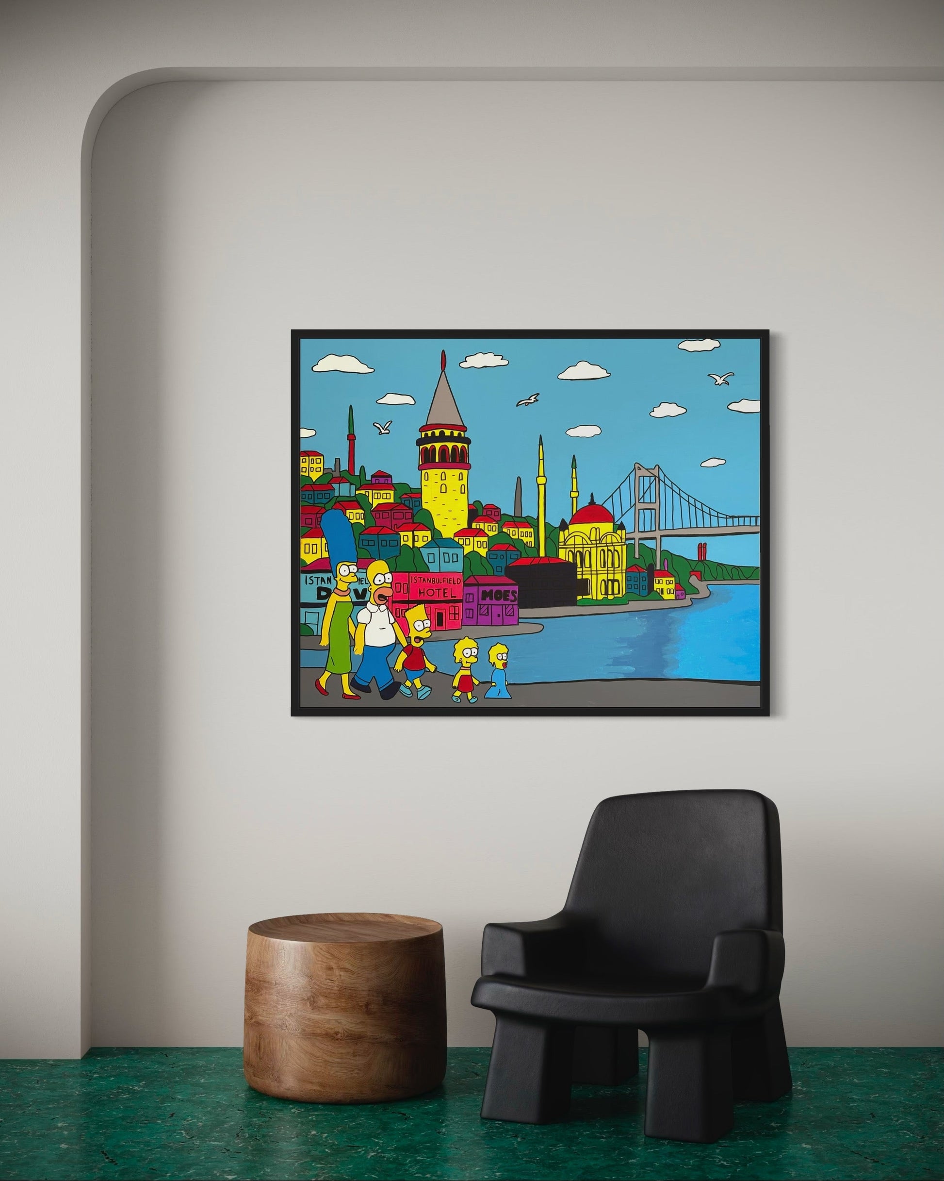 Titled “The Hacked City: Istanbulfield,” this large-scale painting imagines the transformation of Istanbul’s iconic structures as if they were “hacked” into the Simpsons universe.