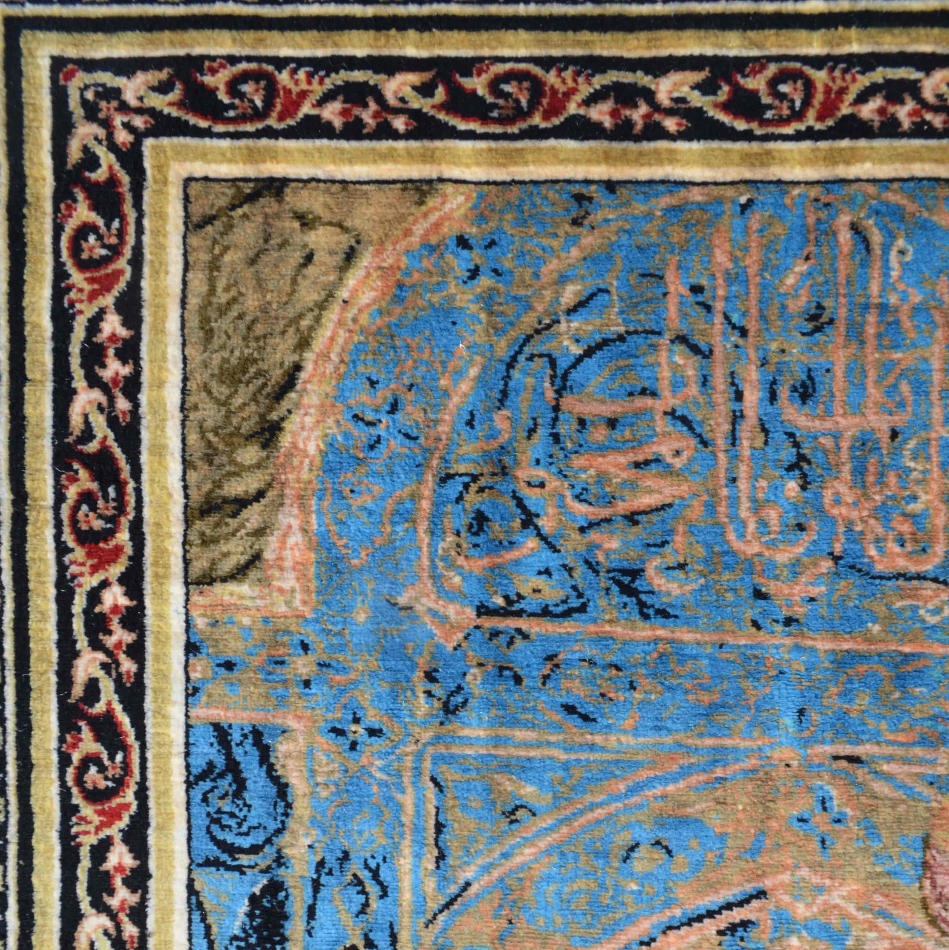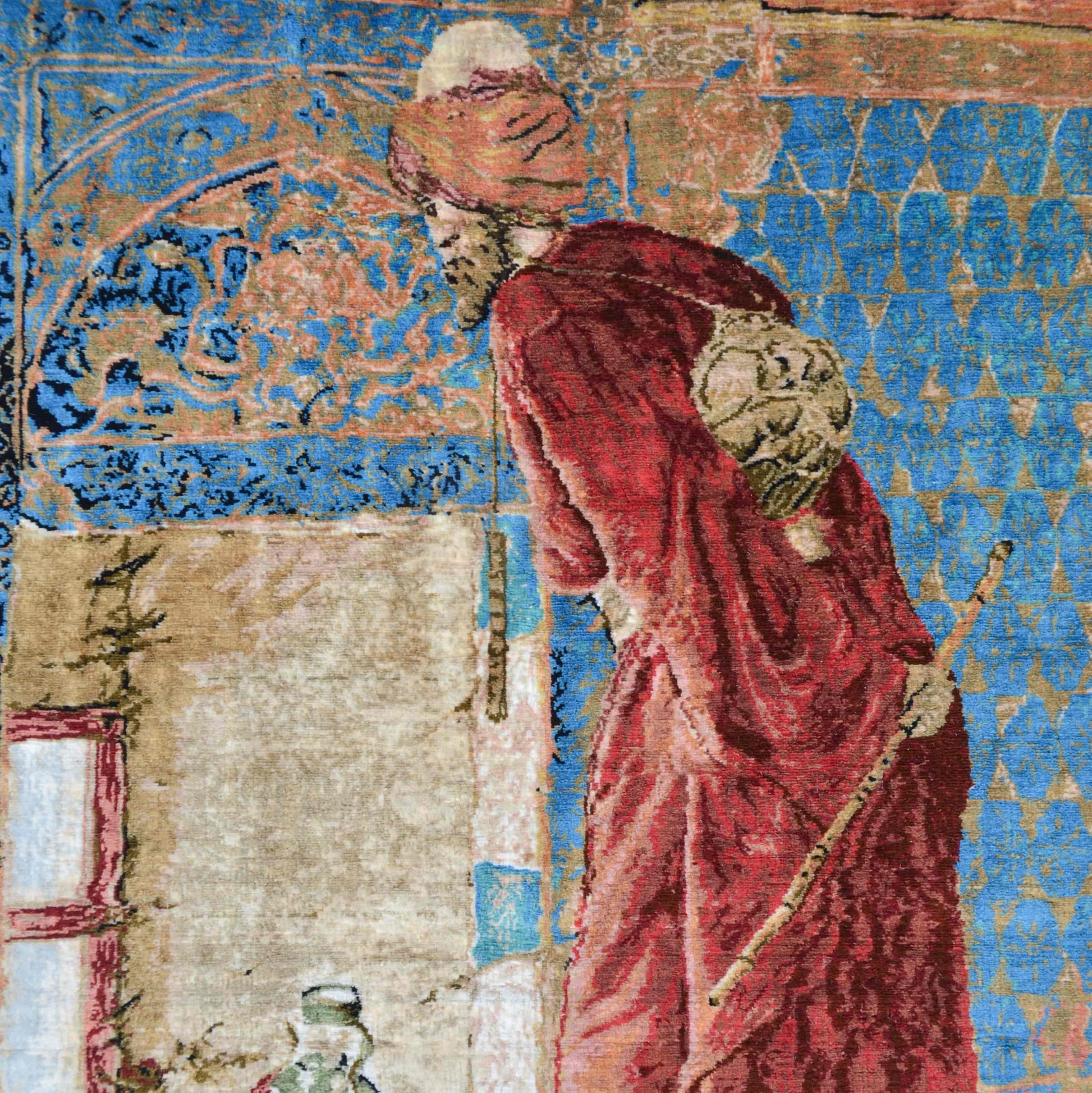 Orijinal Bursa ipeğinden, saf ipek zemin üzerine tamamen el işçiliğiyle dokunan bu özel Hereke halısı, 20x20 kaliteye sahip olup metrekaresinde yaklaşık 4 milyon düğüm barındırır. “Kaplumbağa Terbiyecisi” deseni, geleneksel Anadolu sanatının zarif ve detaylı anlatımını yansıtır. Saf ipek ipliklerin parlaklığı, tablo niteliğindeki sahneyi canlı ve estetik bir şekilde öne çıkarır.