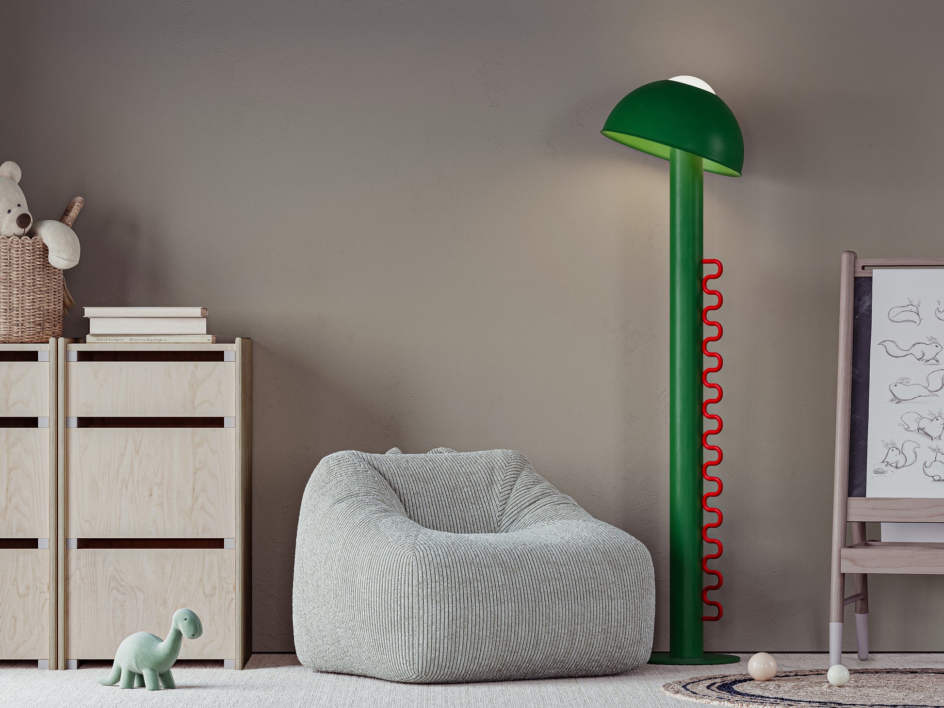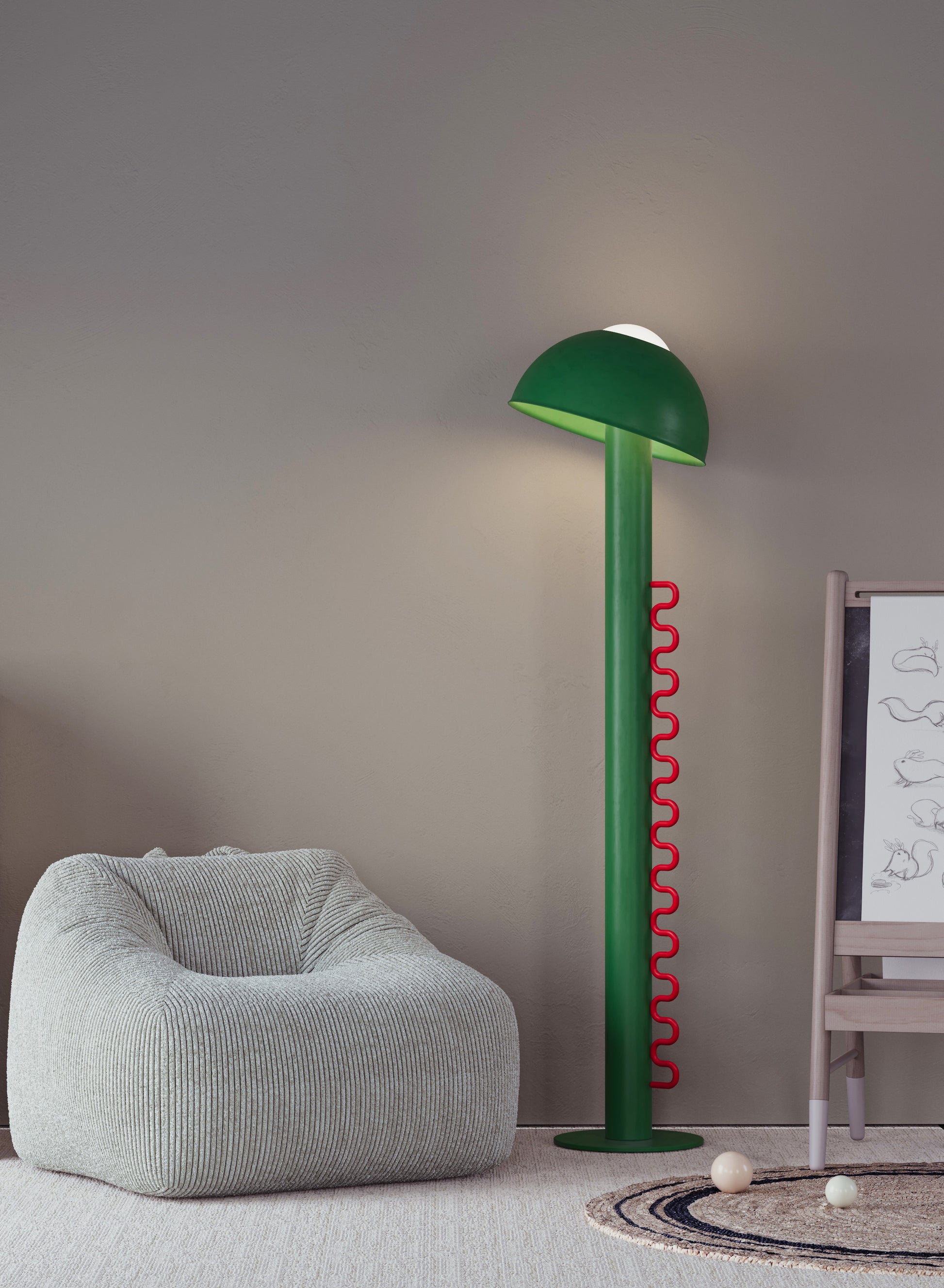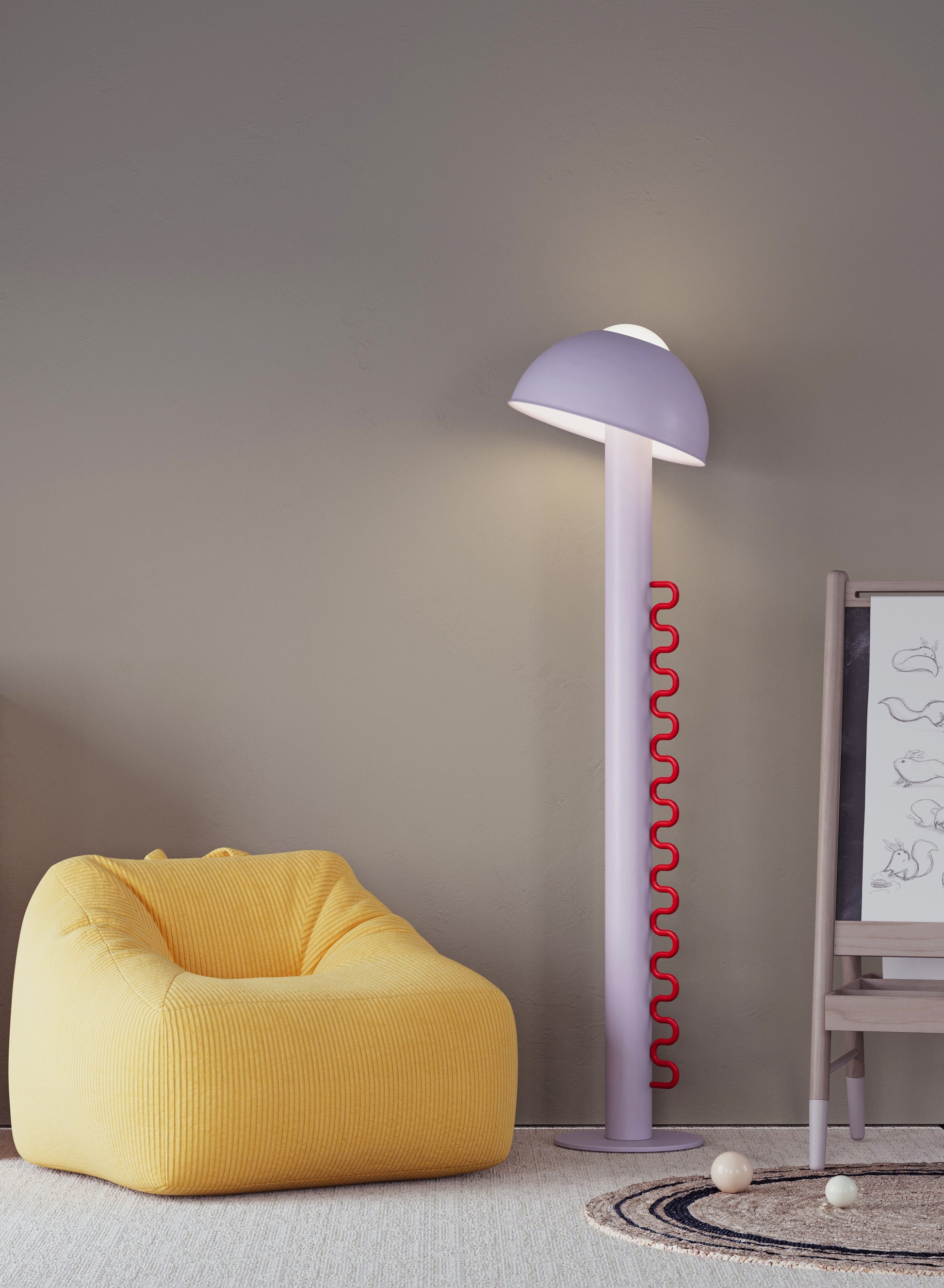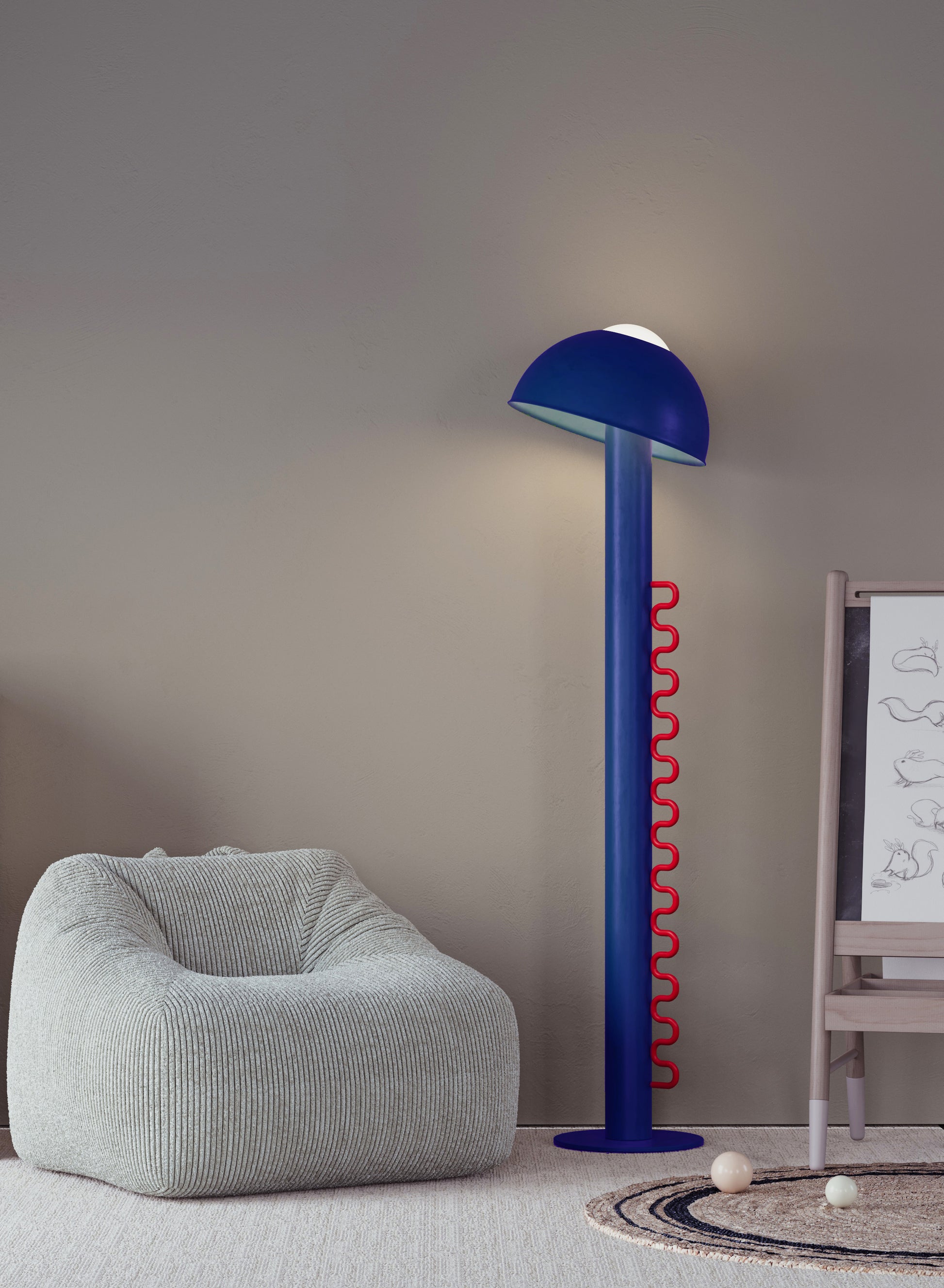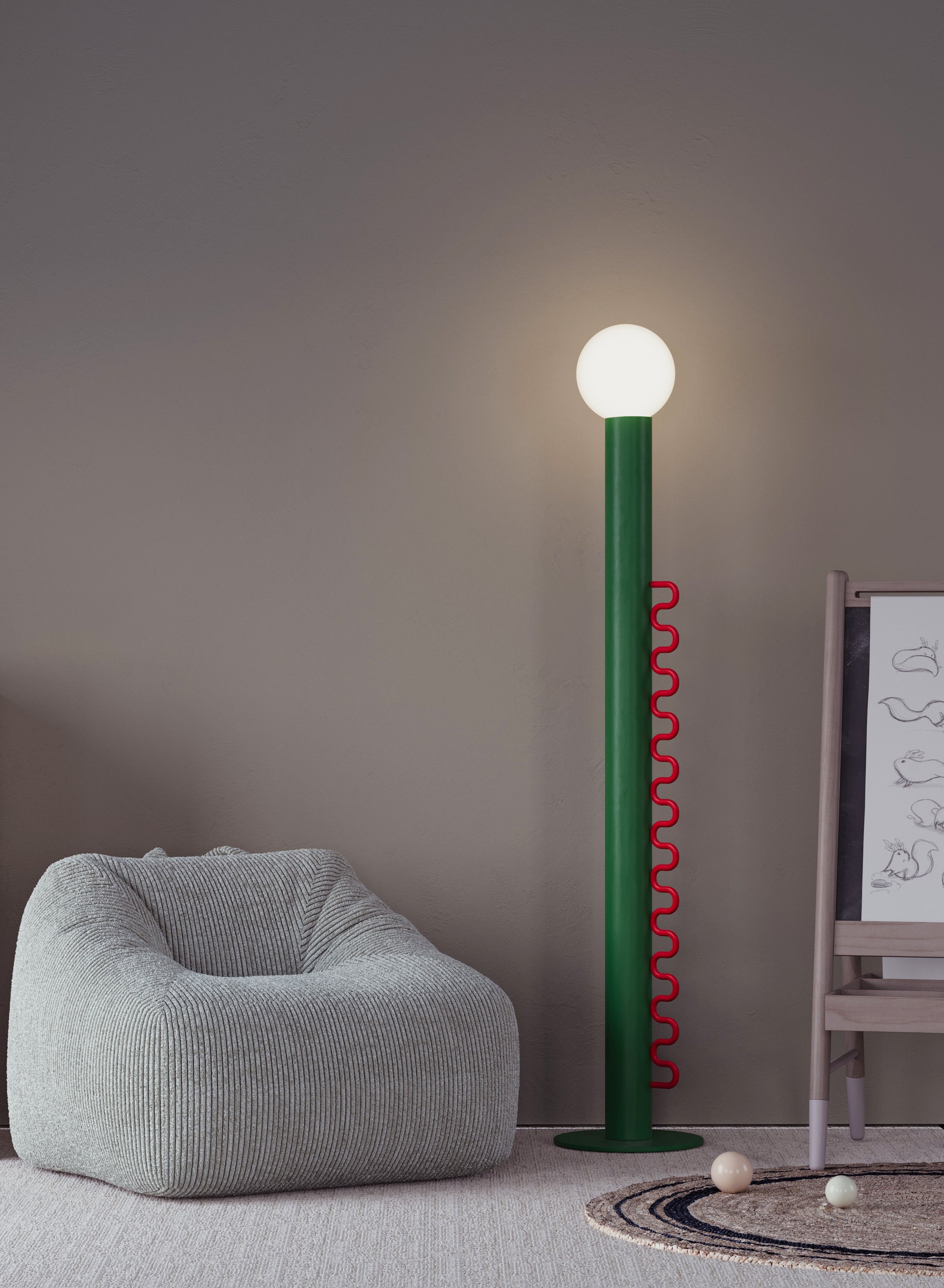 Wave lighting is an ideal solution for children's rooms and colorful, fun environments. It attracts attention with its stylish and functional design. The cap can be removed when desired or adjusted to different angles to control the direction of the light. The cap balanced on the opal sphere allows the light to be directed in the desired direction. Thanks to its dimmable feature, the light brightness can be adjusted precisely, so the atmosphere of the environment can be easily arranged. Its fun and interactive design makes it enjoyable to use, while providing functionality with simple adjustment and dimming controls. Wave adapts to both children's rooms and colorful spaces with its modern design and innovative features.