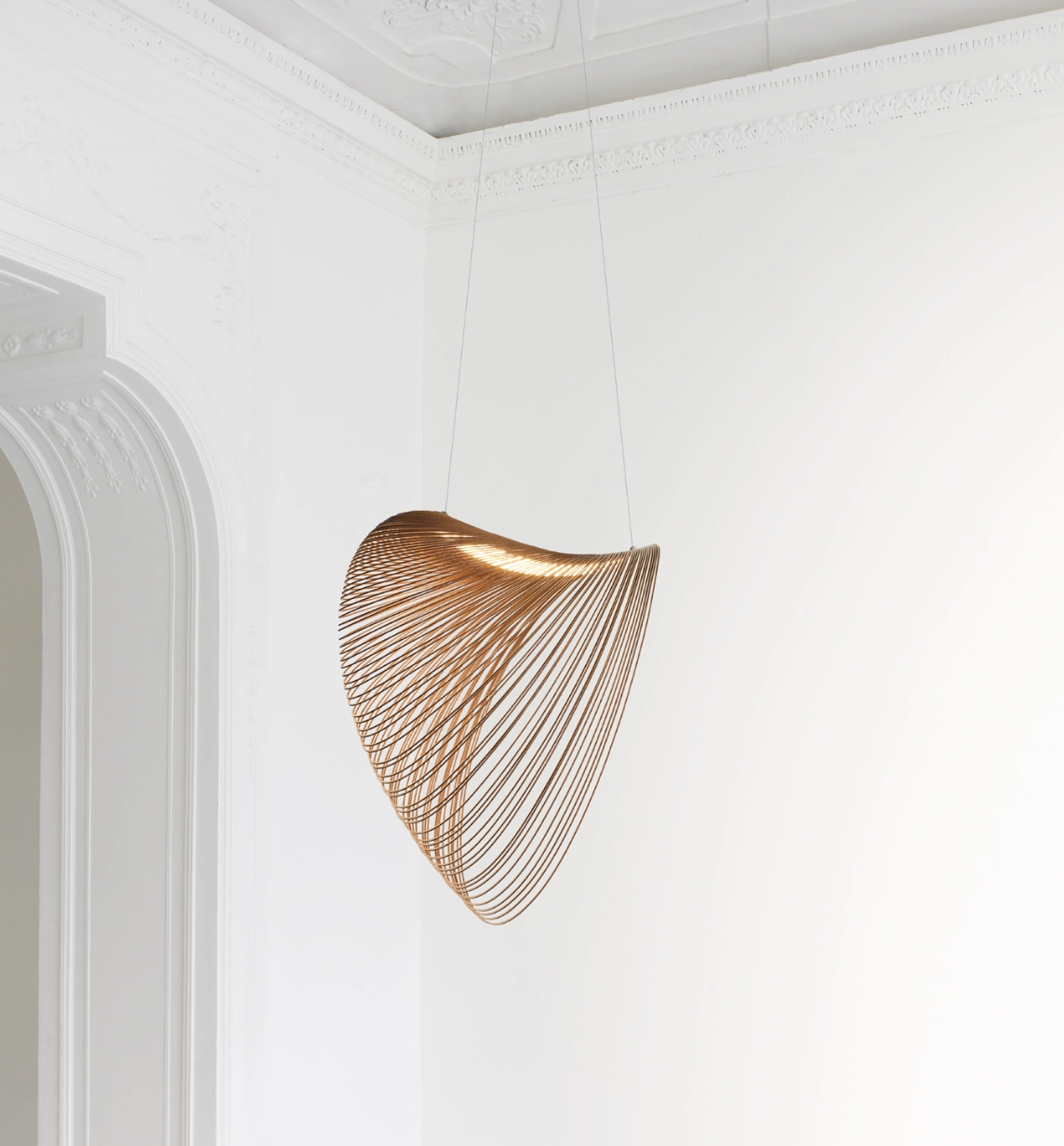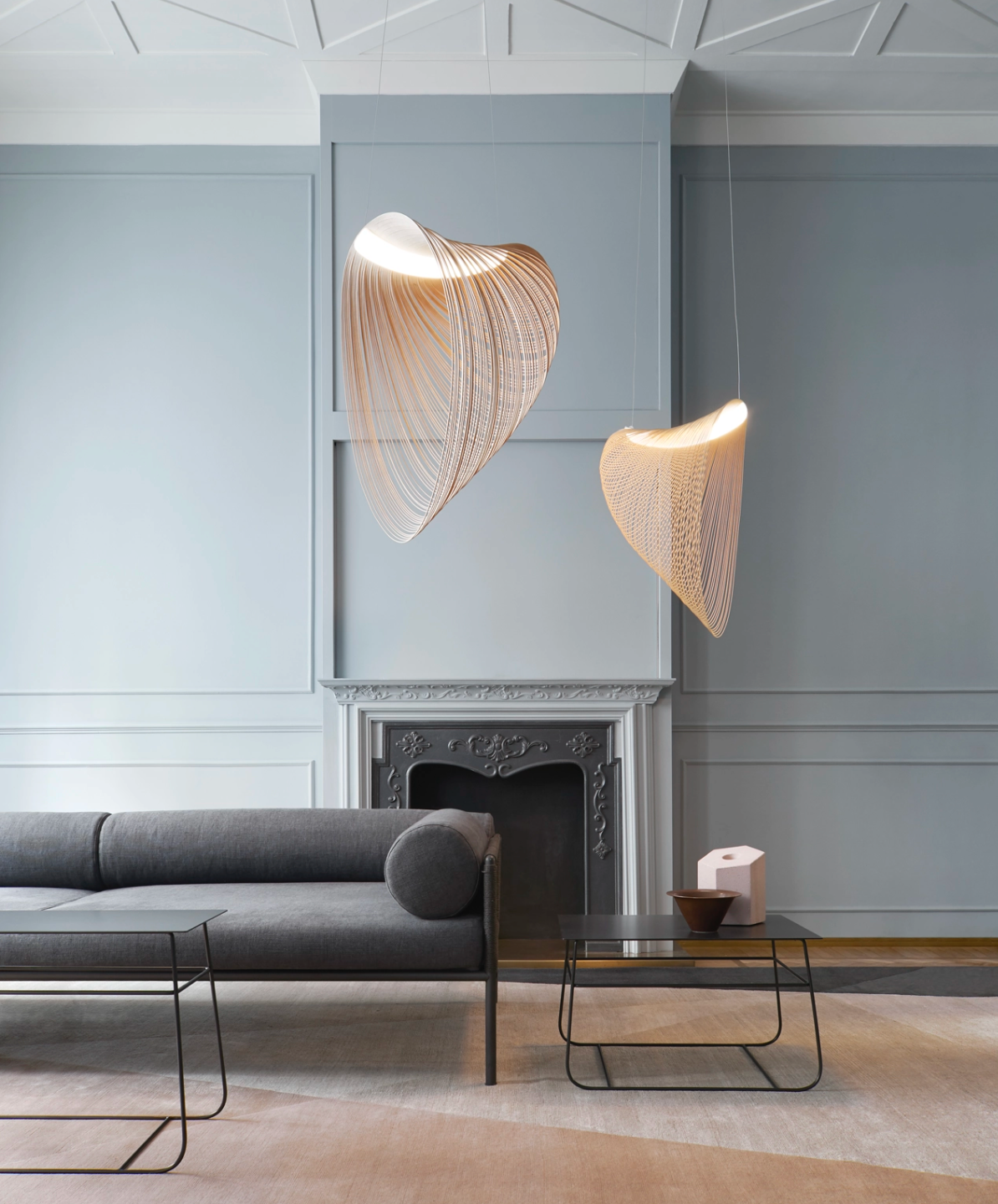 Tavana asıldığında yerçekiminin etkisiyle form kazanan Illan, karakteristik havada süzülür gibi görünen zarif siluetine bürünür.