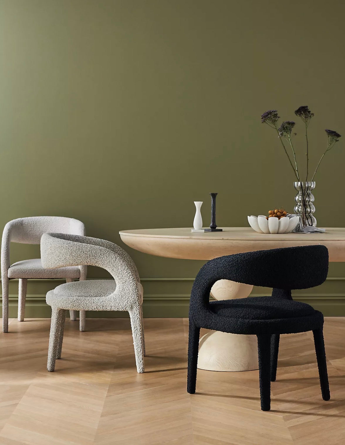 Tamamen döşemeli yapısı, tok oturum konforu ve dokulu buklet kumaşıyla, her mekânda modern sanat etkisi yaratır. Kumaşın doğal dokusu, sıcaklık ve karakter hissini artırırken, formun zarafeti mekanınıza sofistike bir hava kazandırır.