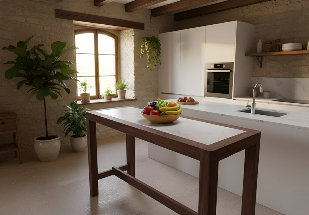 Noma bistro masa, zarif yapısı ve net çizgileriyle ferah ve modern bir atmosfer yaratır. Mermer yüzeyin sofistike dokusu ile doğal ahşap gövdenin sıcaklığı, el işçiliğiyle bütünleşerek dengeli bir tasarıma dönüşür. Pratik kullanımıyla ister mutfakta ister sosyal alanlarda sade bir şıklık sunar.
