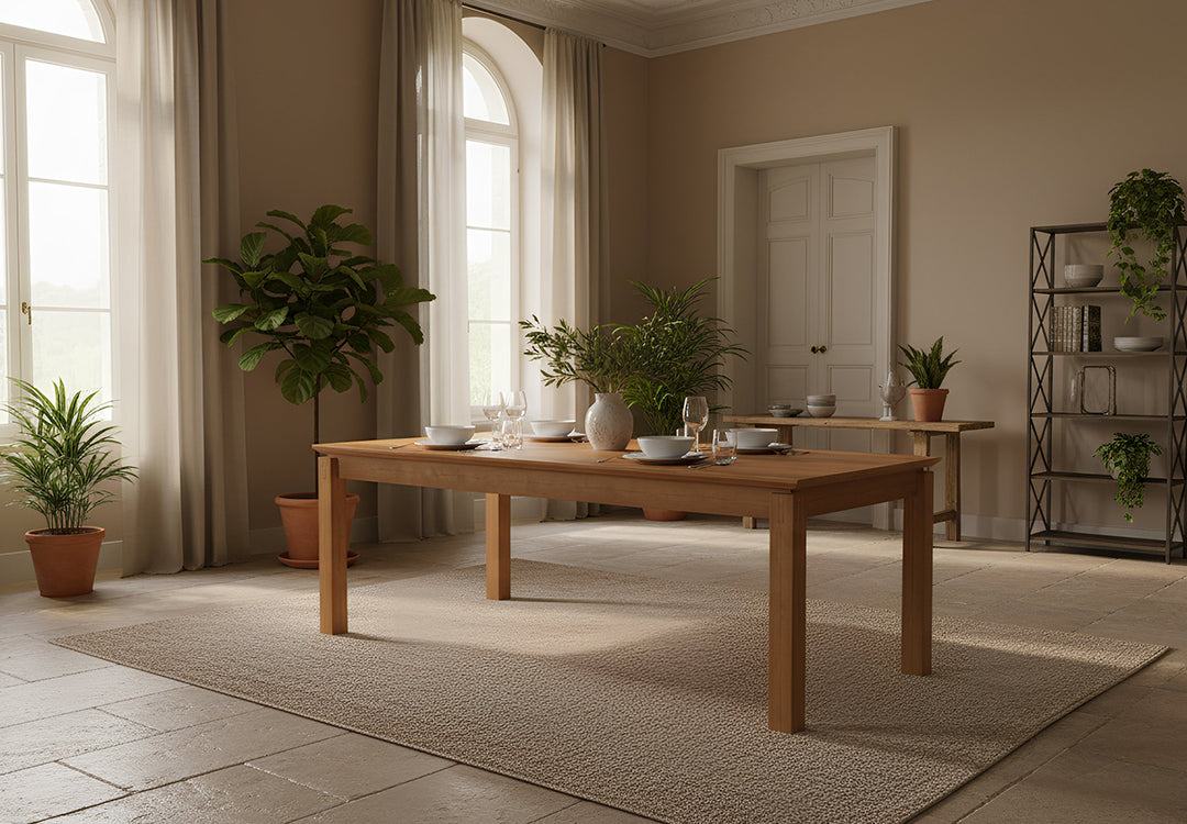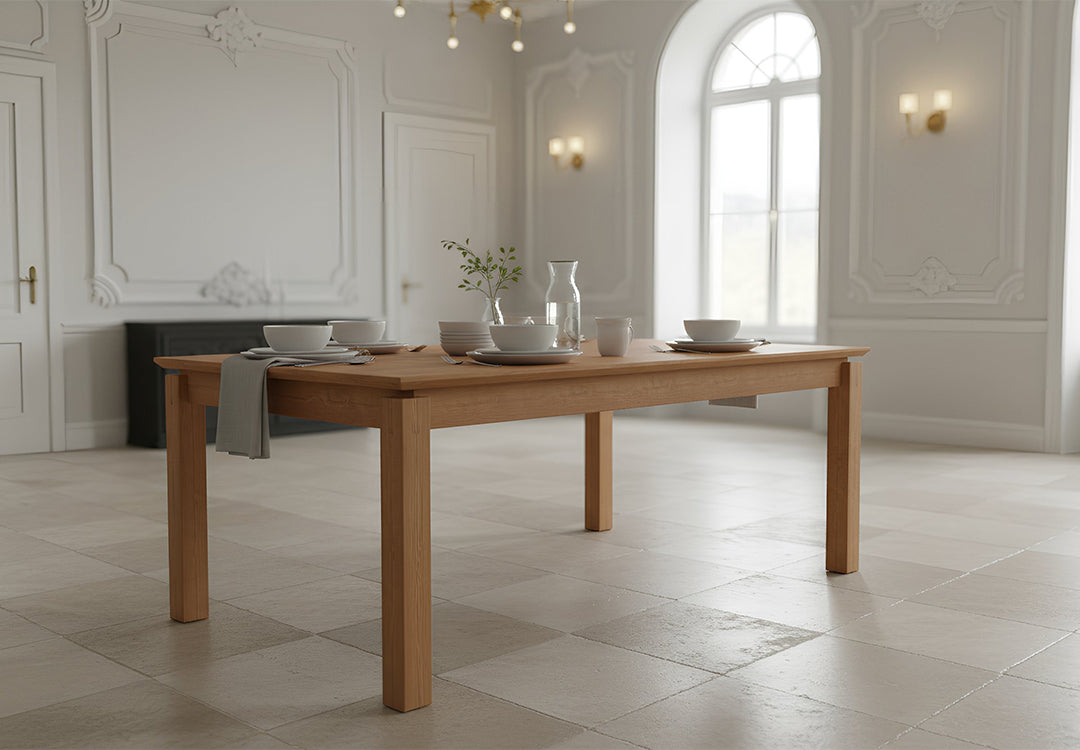 Cassel yemek masası, tamamen masif ahşap kullanılarak, el işçiliğiyle üretiliyor. Özel birleşim detaylarıyla dikkat çeken tasarım, doğal dokusuyla mekanınıza sıcaklık katıyor. Cassel yemek masası, hem samimi aile yemeklerine hem de geniş sofralara zarafetle eşlik edecek zamansız çizgileriyle, yaşam alanınızın odak noktası olacak.