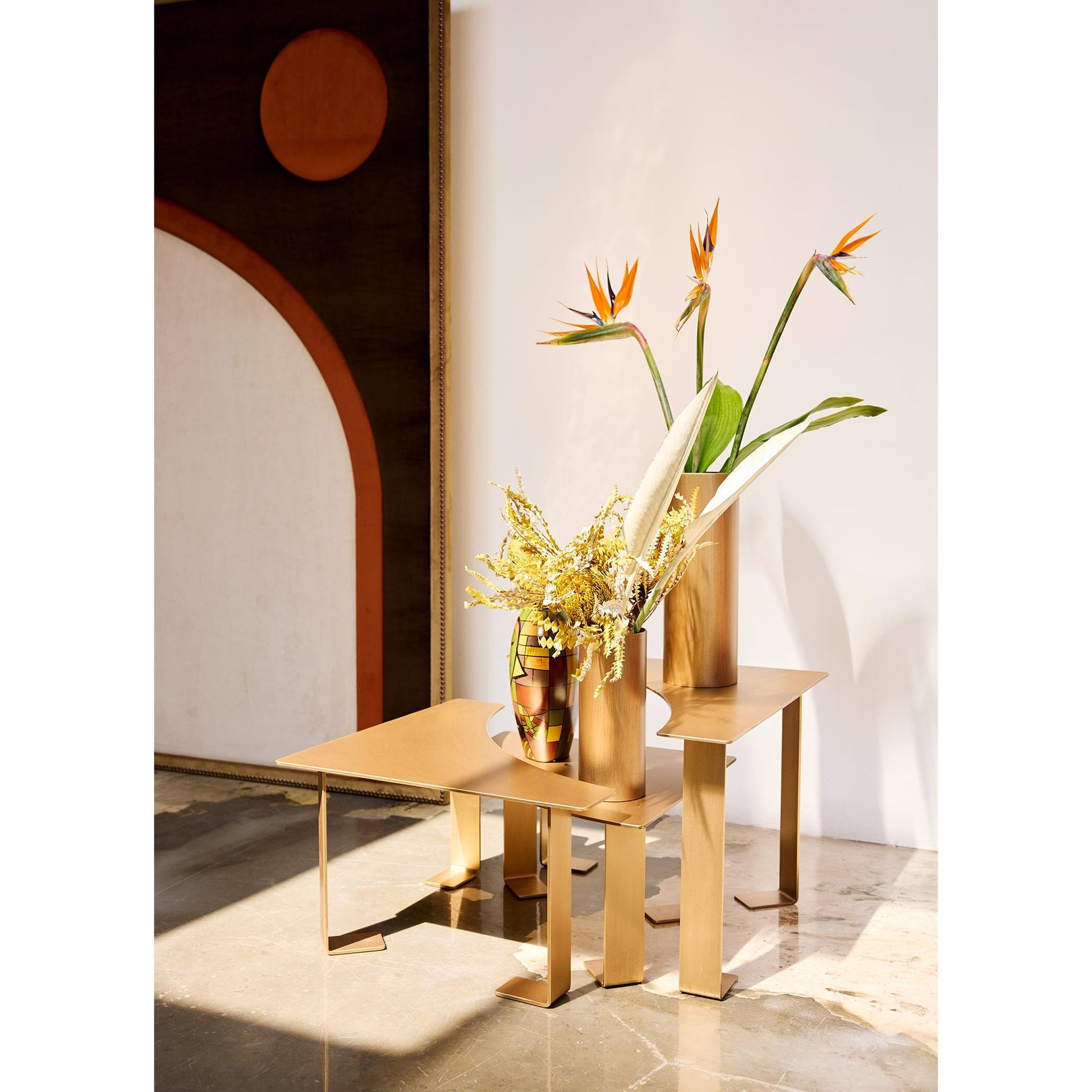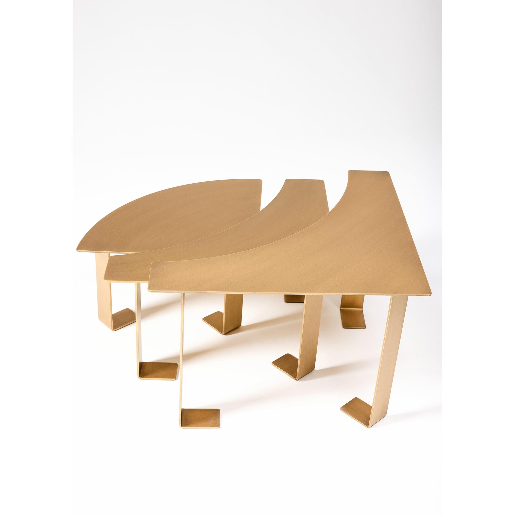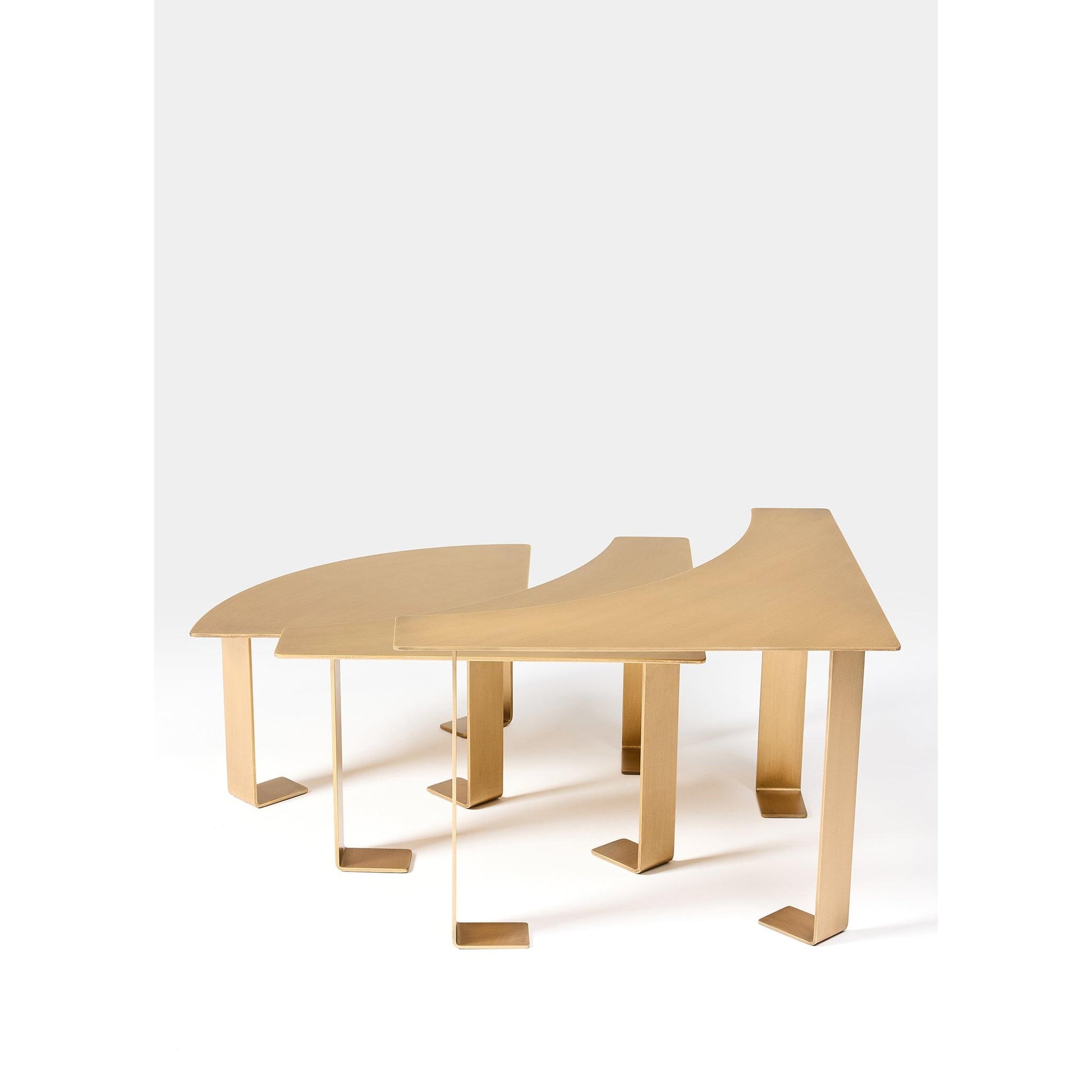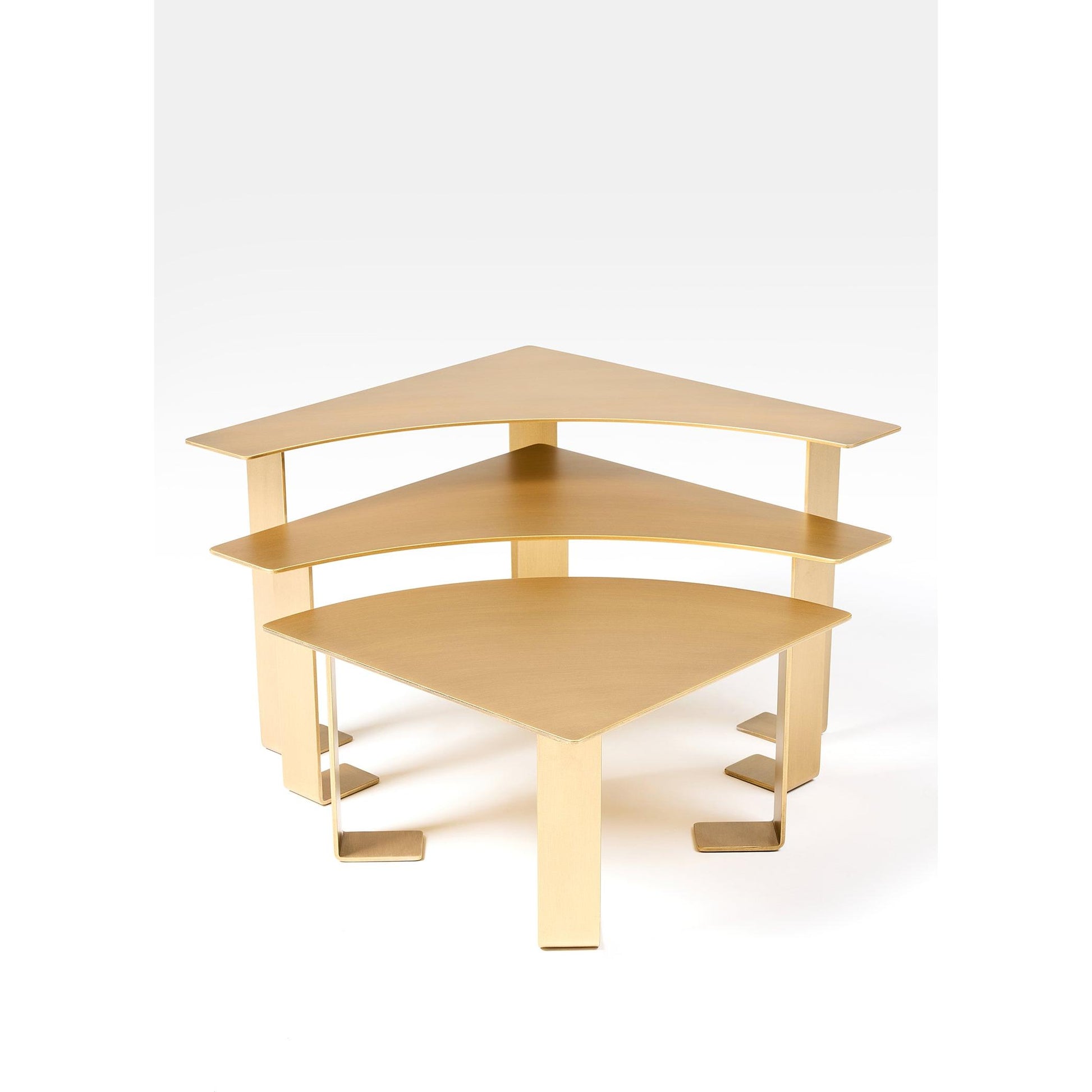 Trion Altın Rengi Üçgen Formlu Metal Yan Sehpa Takımı
