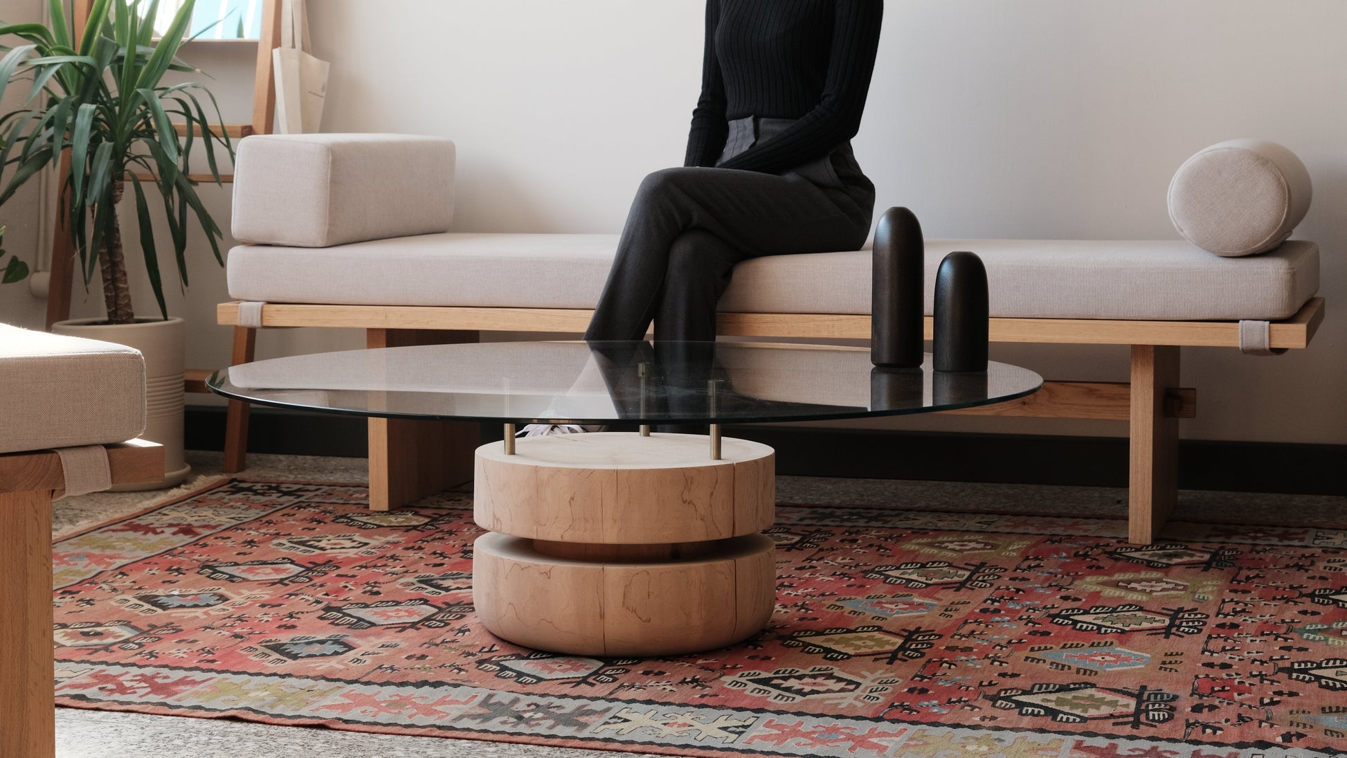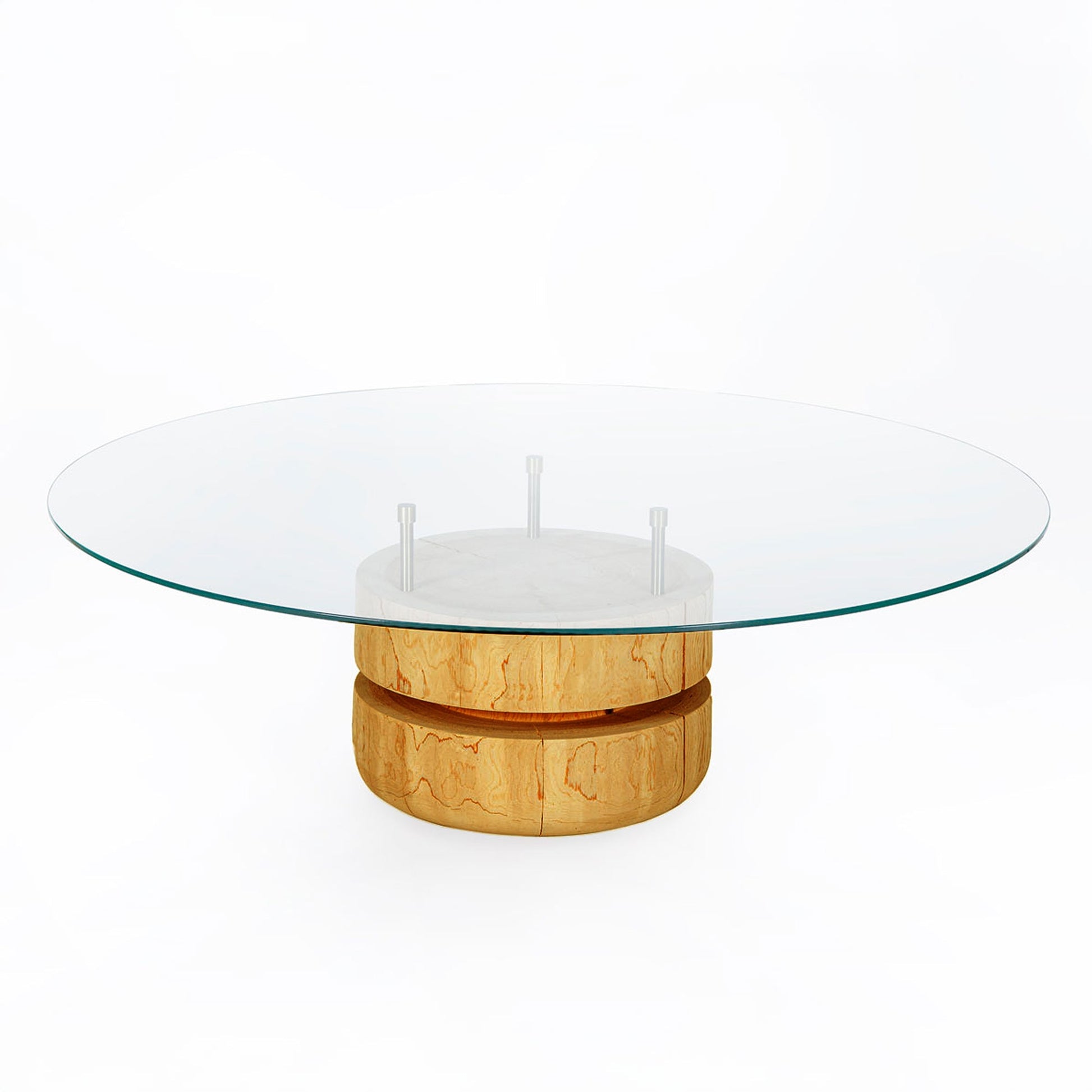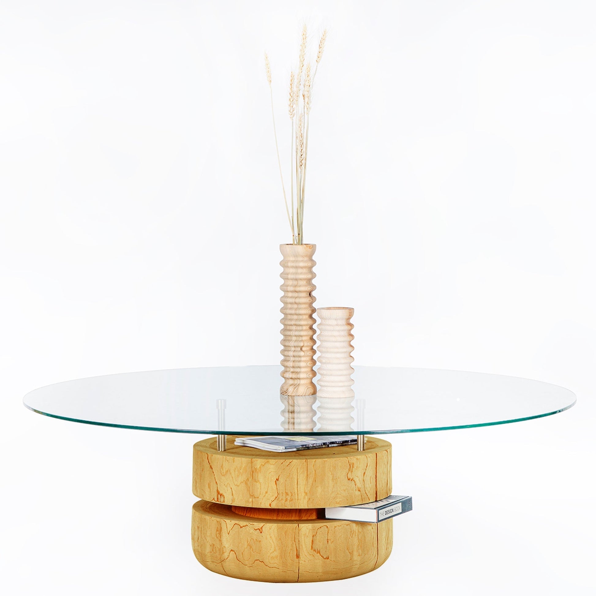Bookworm Orta Sehpa, Masif Sedir, Cam Tablalı, Yuvarlak