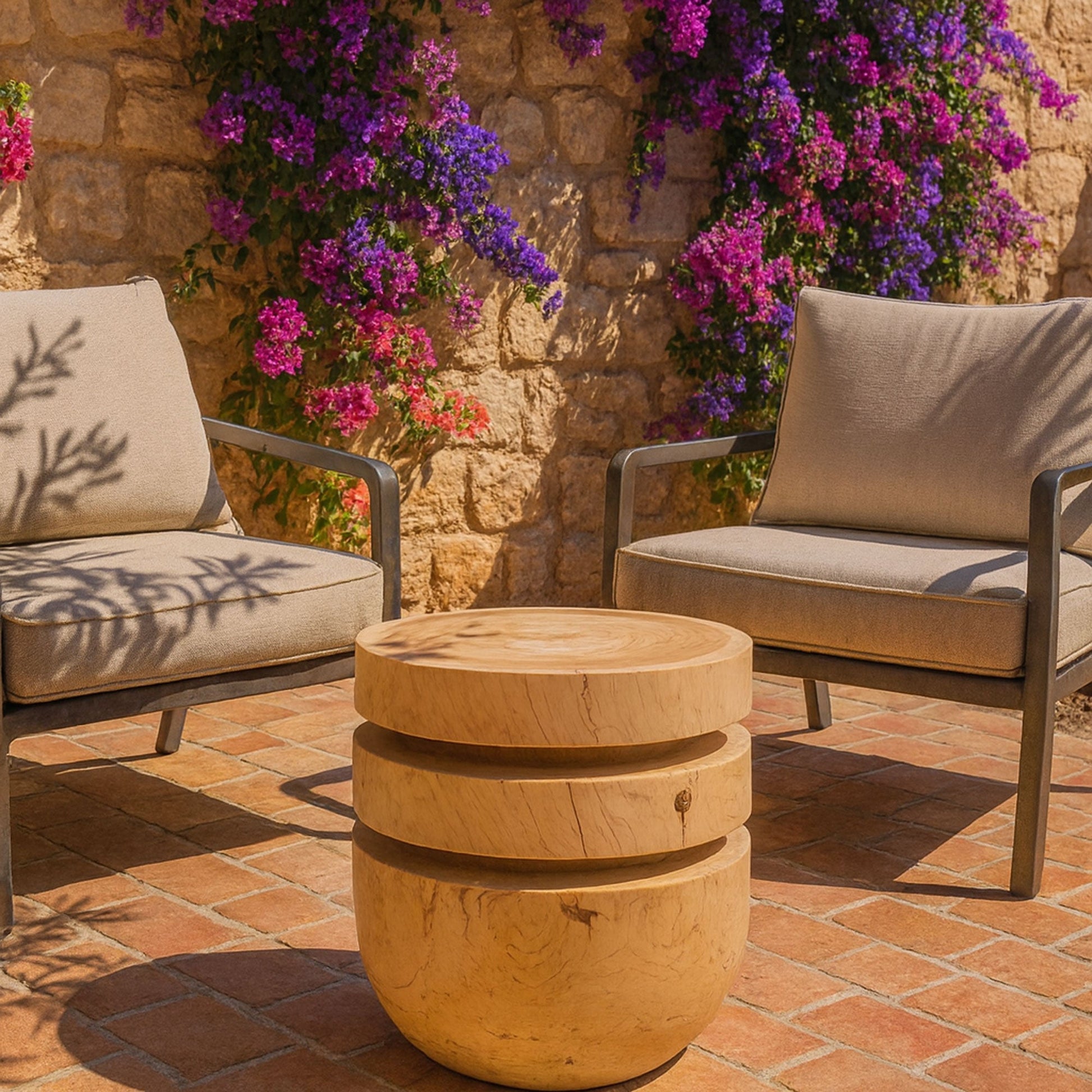 Bookworm Sehpa / Tabure Masif Sedir Yuvarlak Bej