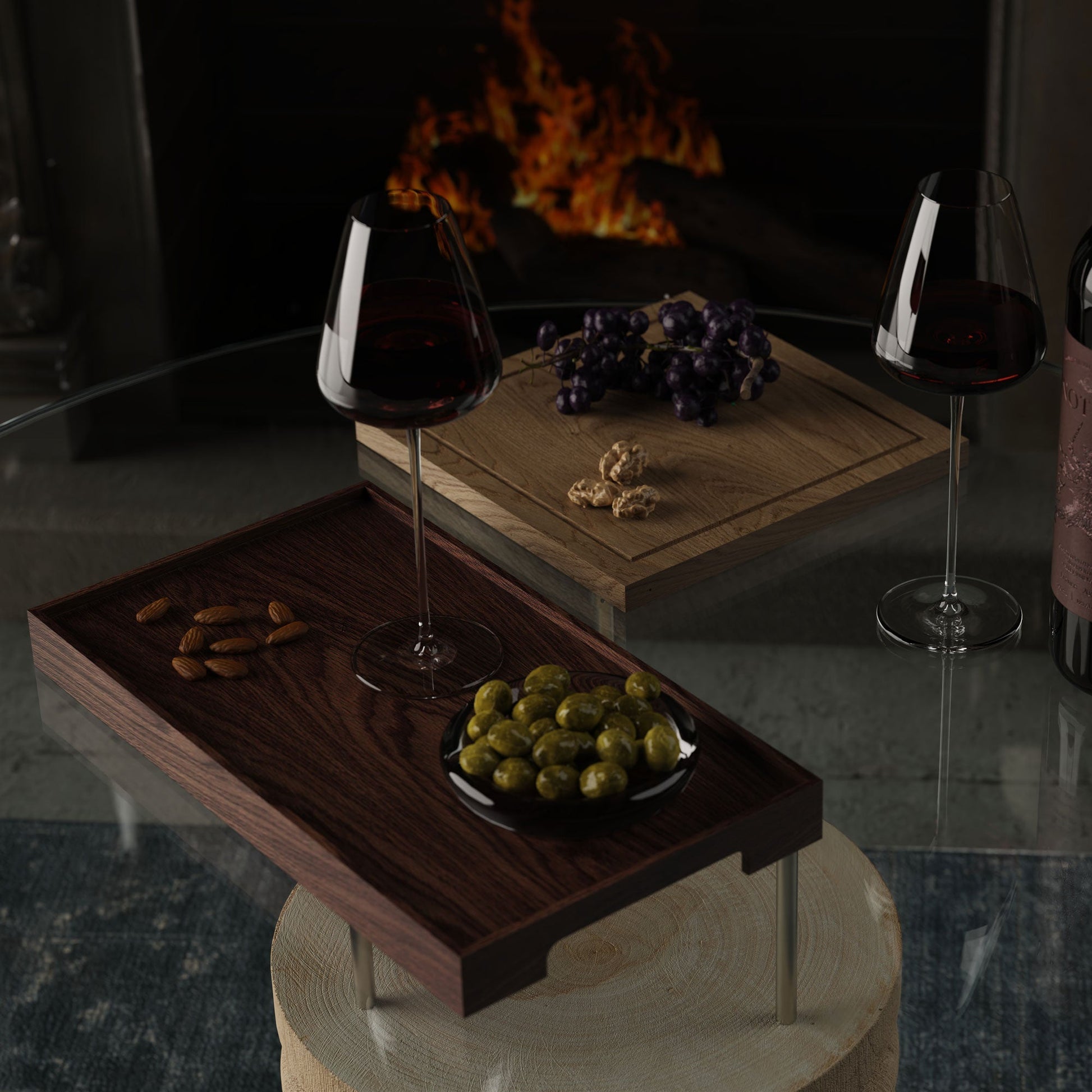 İki kişinin kullanımına uygun, servis ve sunum tahtası. Masif meşe ağacından üretildi. Kenarındaki kanalları sayesinde yiyeceklerin sularını engelliyor. Kübik, yalın ve sade.
