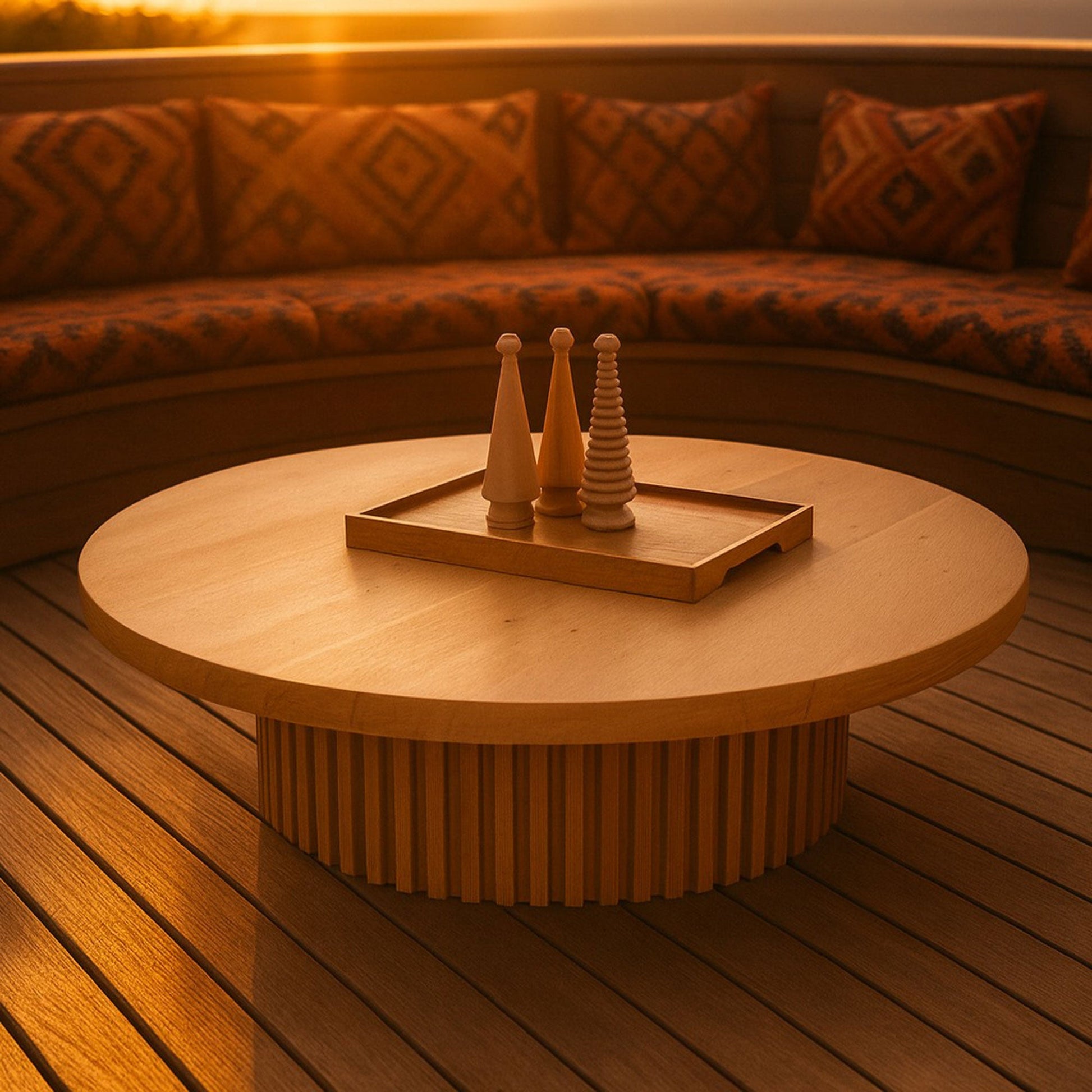 Docia Orta Sehpa, Masif Meşe, Yuvarlak, Çıtalı, Bej