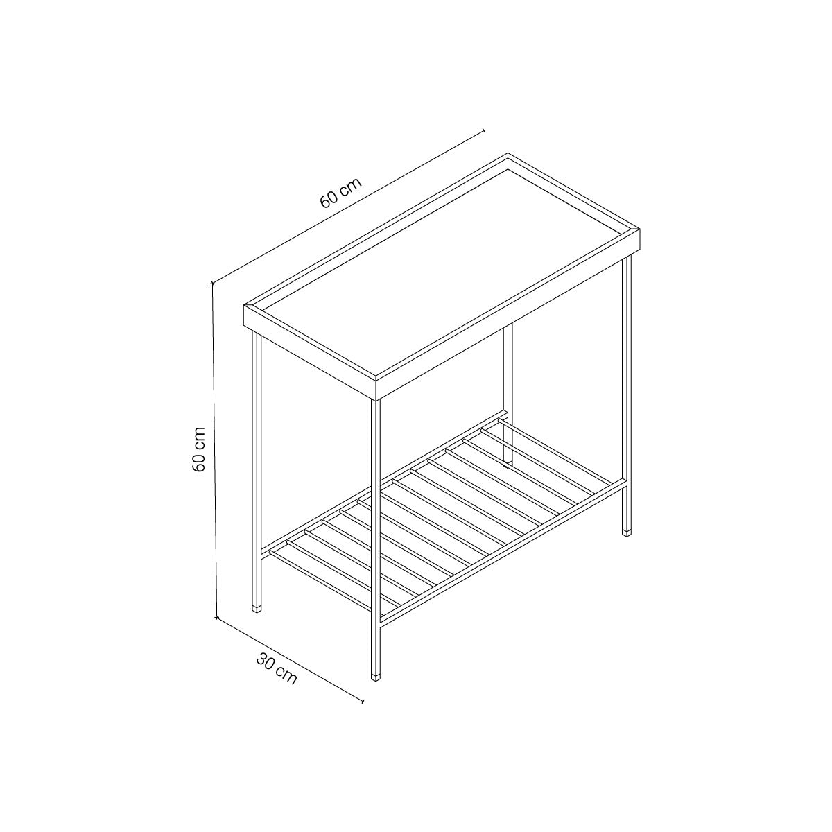 Masif Ahşap Geniş Yan Sehpa - Metal Ayaklı