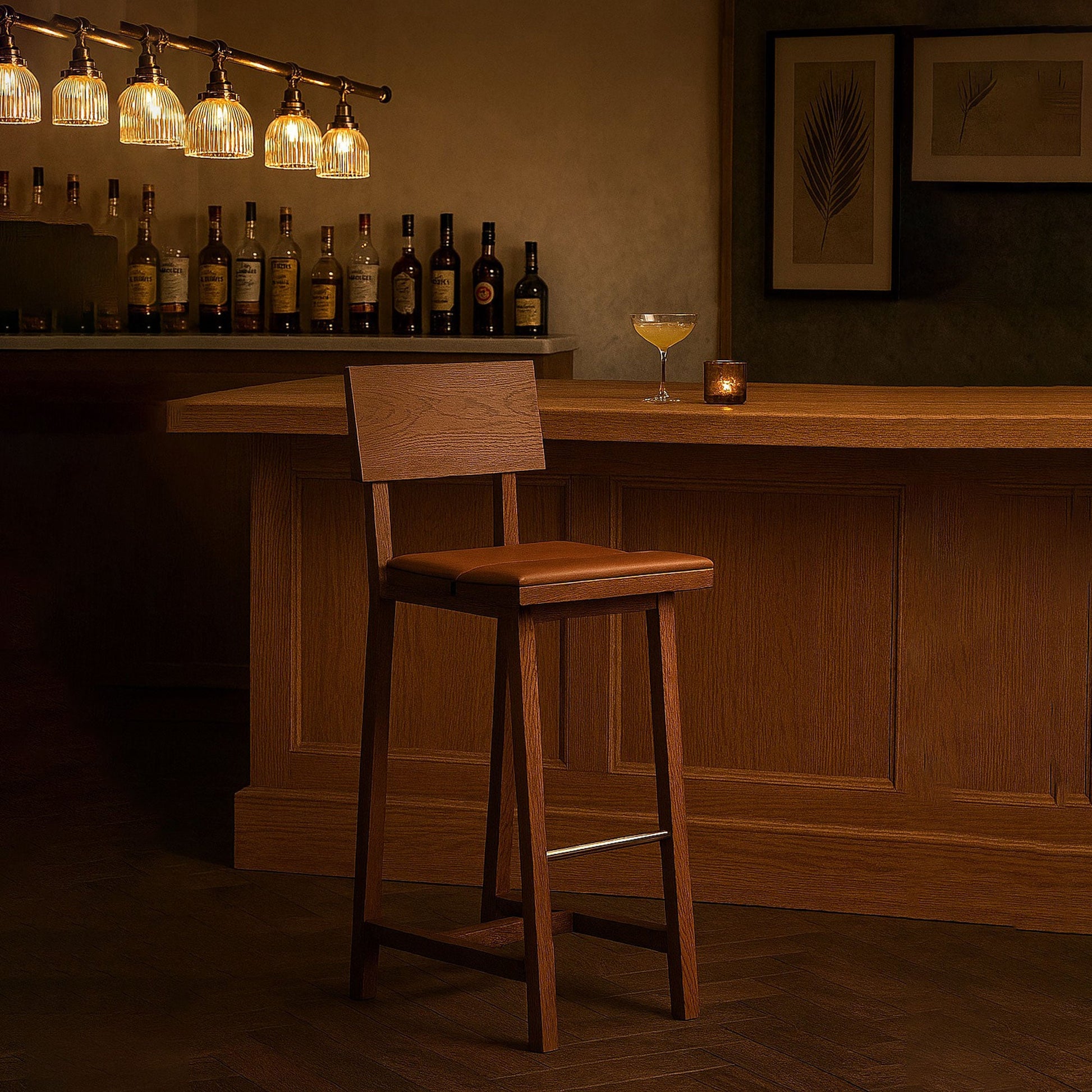 Modern ve konforlu PI Bar Sandalyesi meşe ağacından tamamen el işçiliği ile üretildi.
