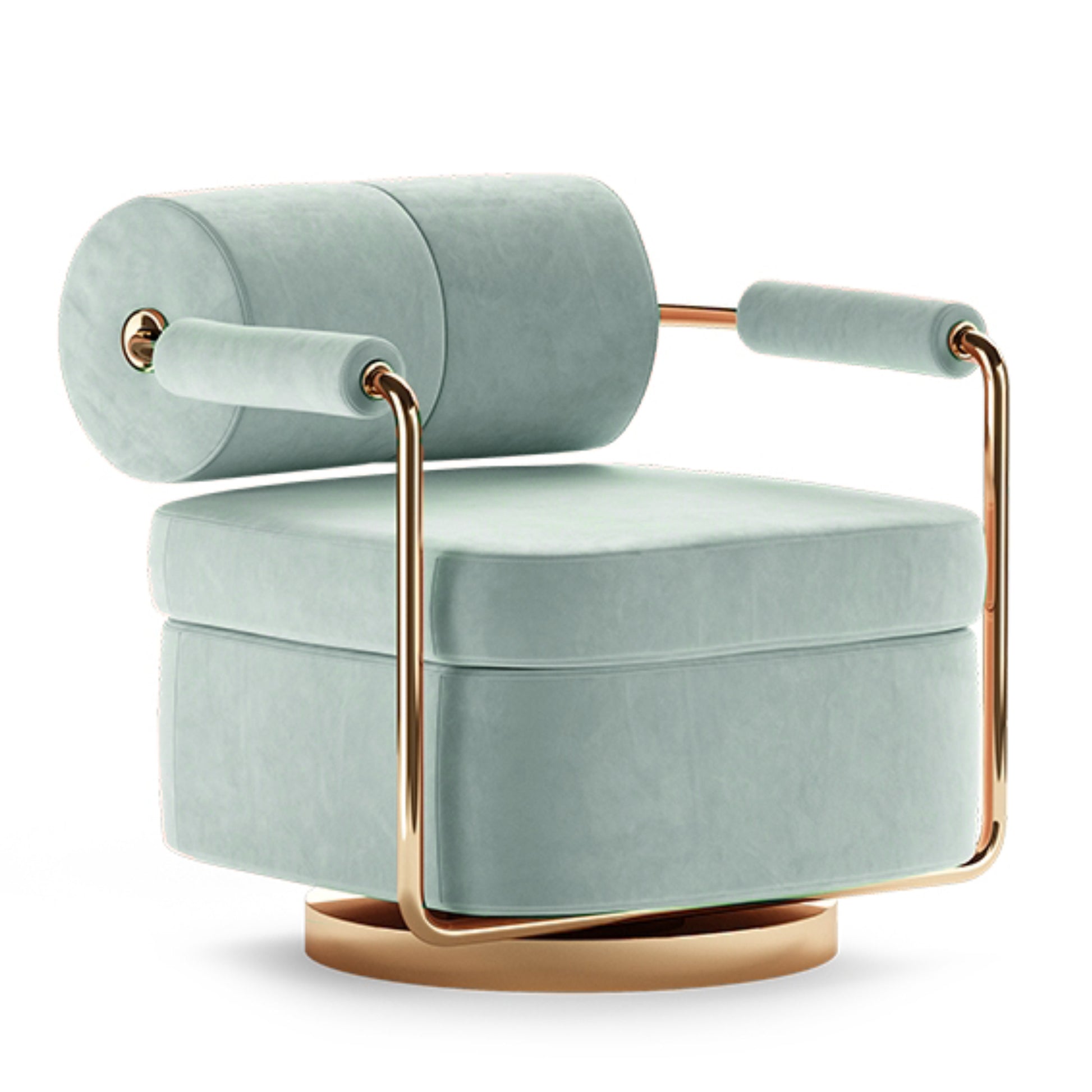 Yuvarlak hatlı kolçakları ve sırt desteği, kullanıcıya ergonomik bir oturma pozisyonu sunarken, yumuşak kumaş döşemesi ise ekstra konfor sağlar. Alt kısmındaki pirinç detaylı metal taban, tasarımın lüks havasını pekiştirirken, berjerin genel görünümünü tamamlar. Bonno Berjer, çağdaş iç mekanlara mükemmel bir uyum sağlayarak her türlü dekorasyon tarzına sofistike bir dokunuş ekler.