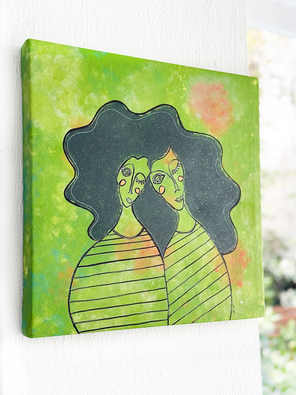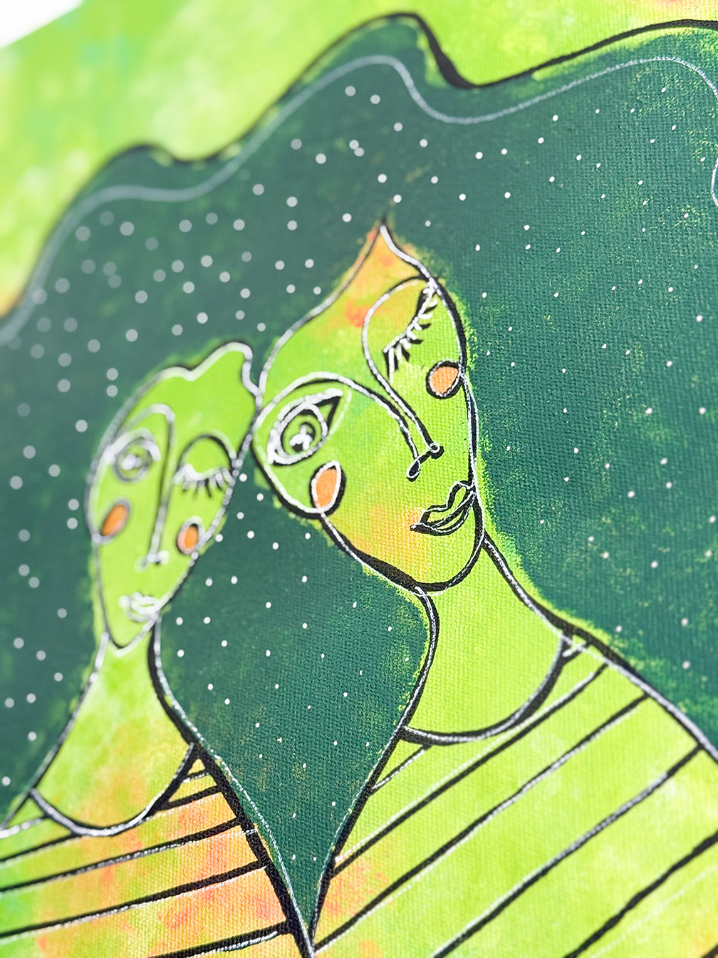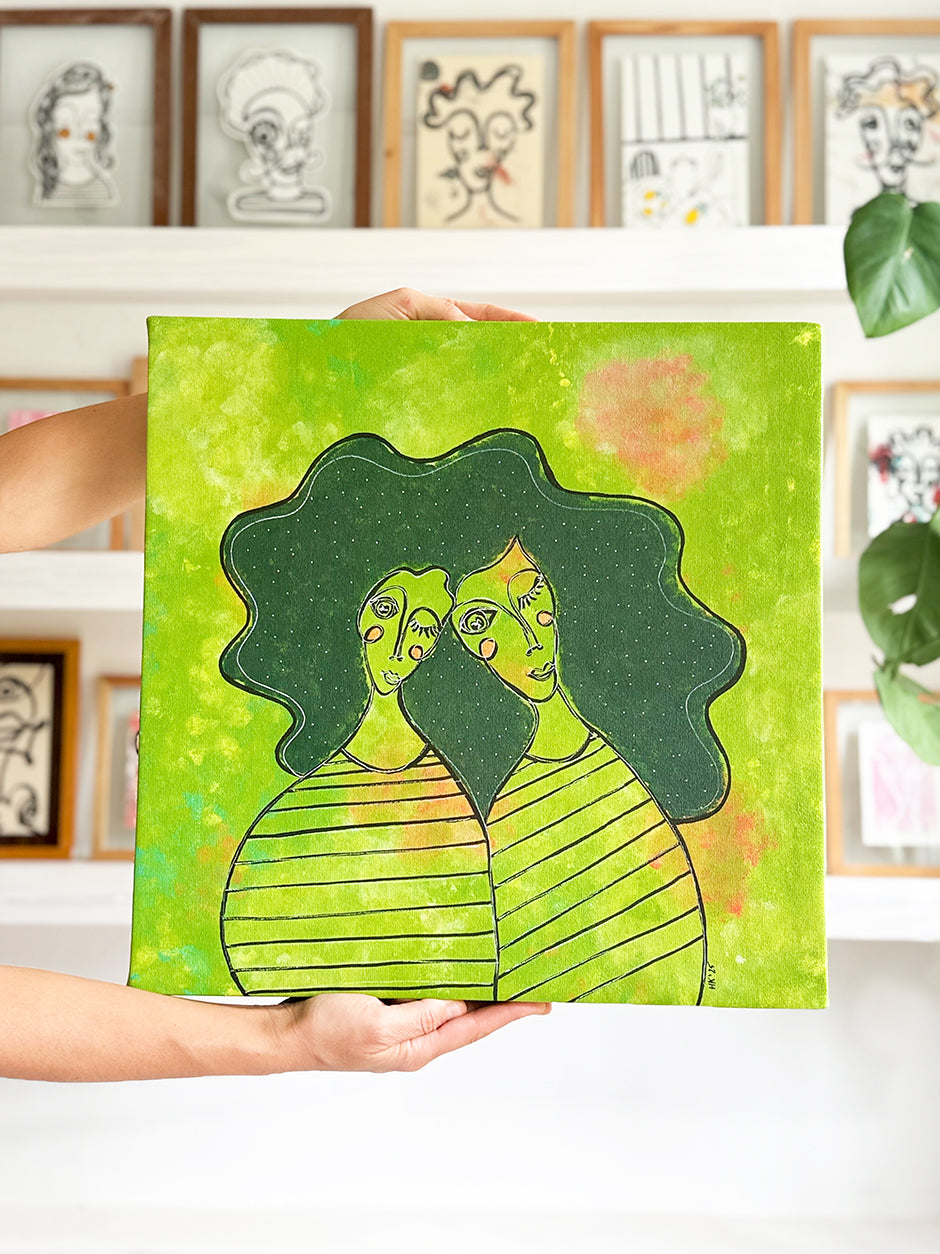 Materyal : 3 kat astarlı, %100 pamuklu tuval bezi üzerine akrilik boya, kalem ve su bazlı markör.
