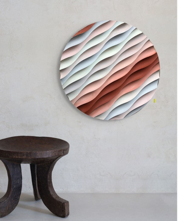 3D Ahşap El Boyaması Yuvarlak Tablo-Naturel