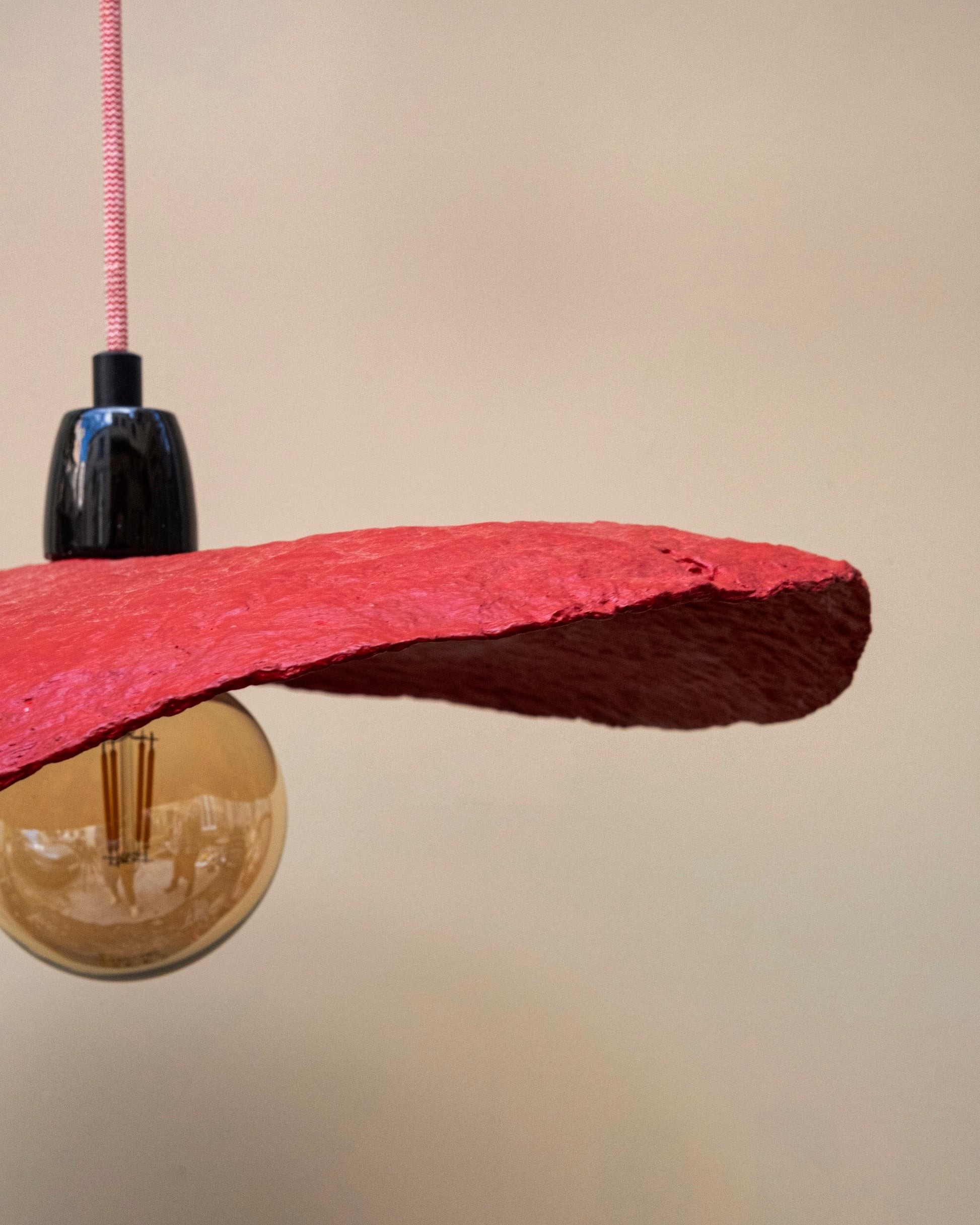 Bordo renk avize, tasarım ilhamını sade ve güçlü formülle dikkat çeken büyük bir sepetten alıyor. Canlı rengiyle mekana sıcaklık katarken, zarif yapısıyla şıklığı tamamlıyor.Bir yemek masasının, bir odanın üzerinde veya geniş bir koridor alanında şık bir atmosfer yaratırken aynı zamanda dekoratif bir obje olarak da dikkat çeker. Sürdürülebilir bir yaklaşımın ürünü olan bu avize, geri dönüşüm kağıt hamurundan üretilmiş olup, sağlam yapısıyla hem güzel hem şık bir tercih sunuyor. Her bir ürün el yapımı olduğundan, birbirinden farklı ve benzersizdir.
