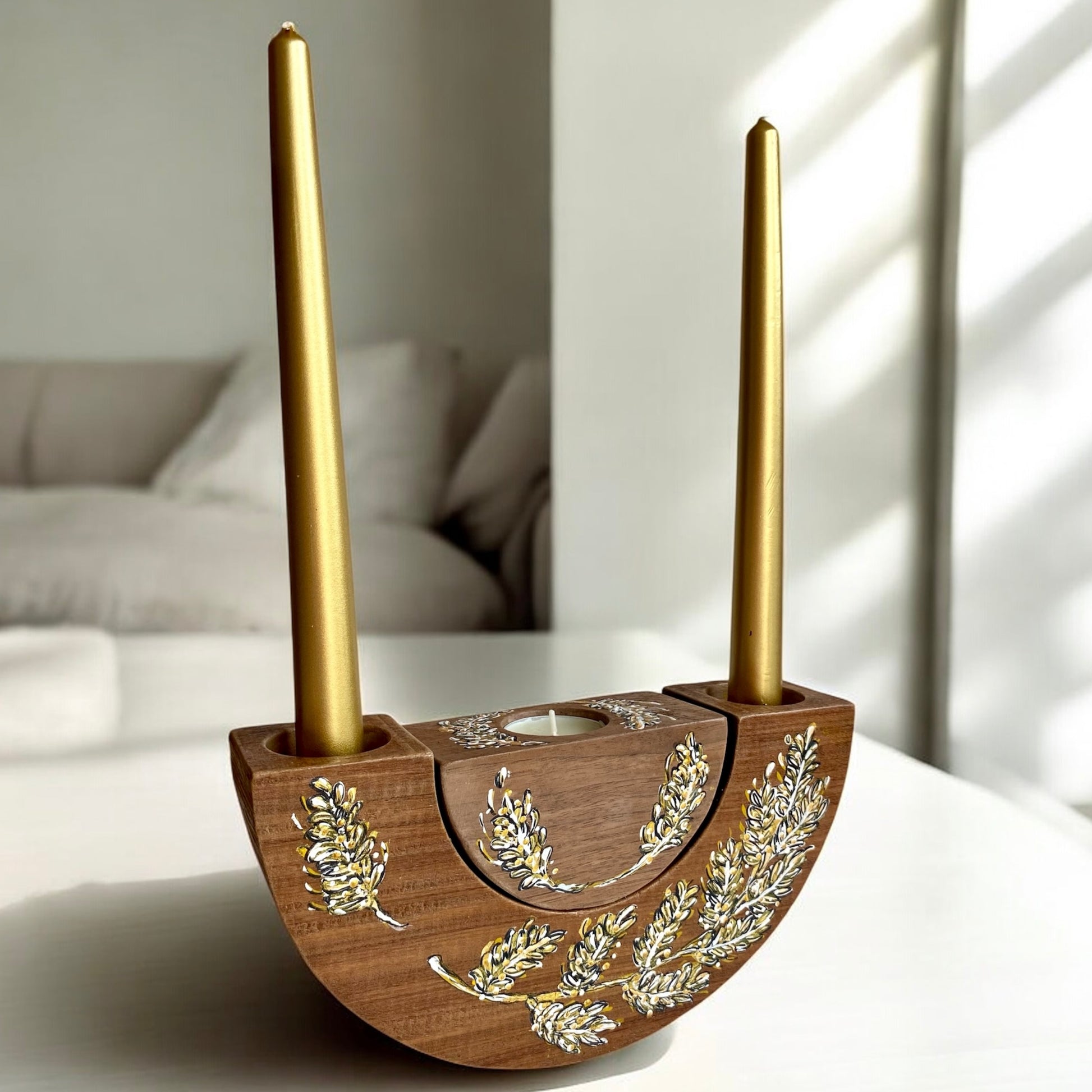Üç adet tealight veya iki adet şamdan mumu ve bir adet tealight mumu ile kullanıma hazırdır.