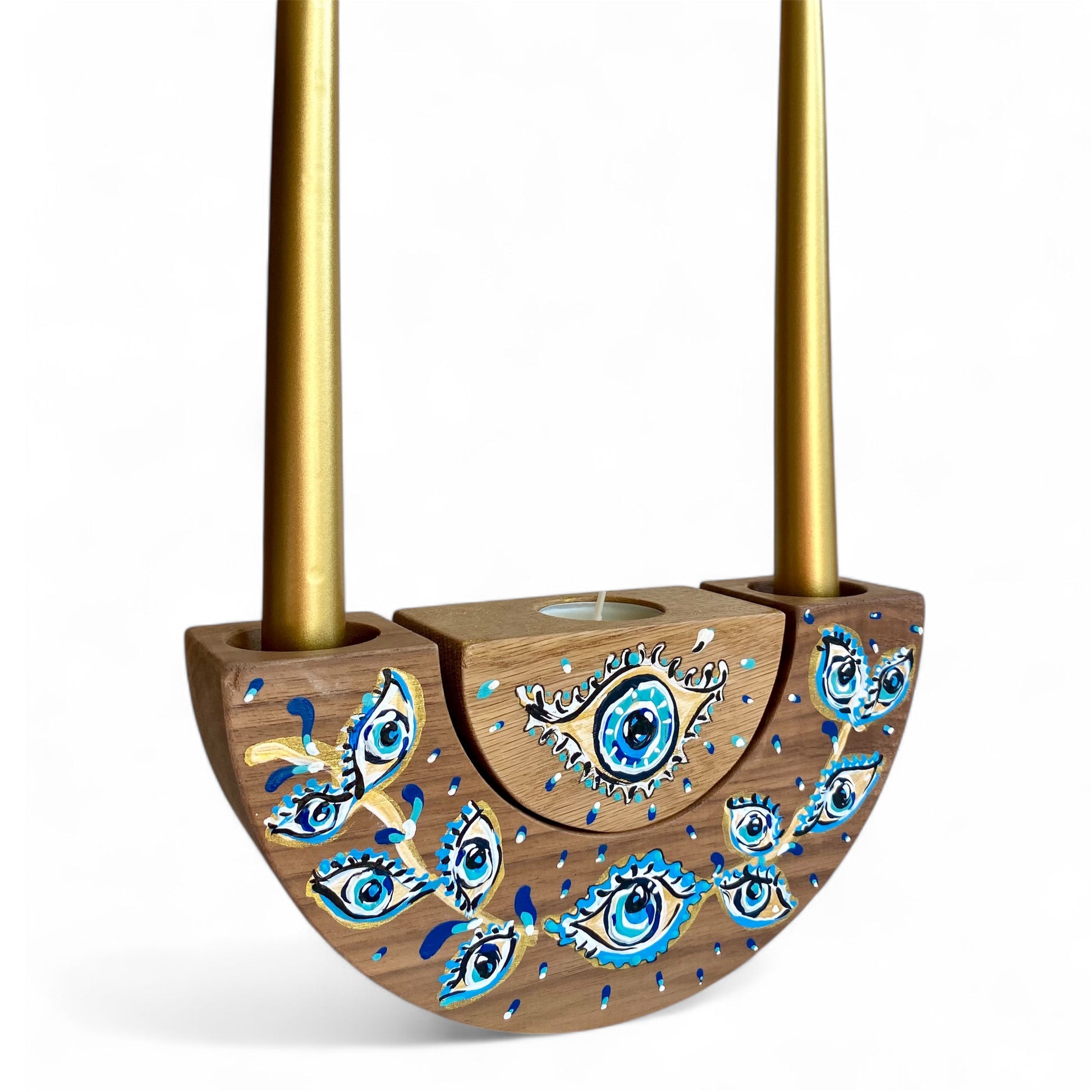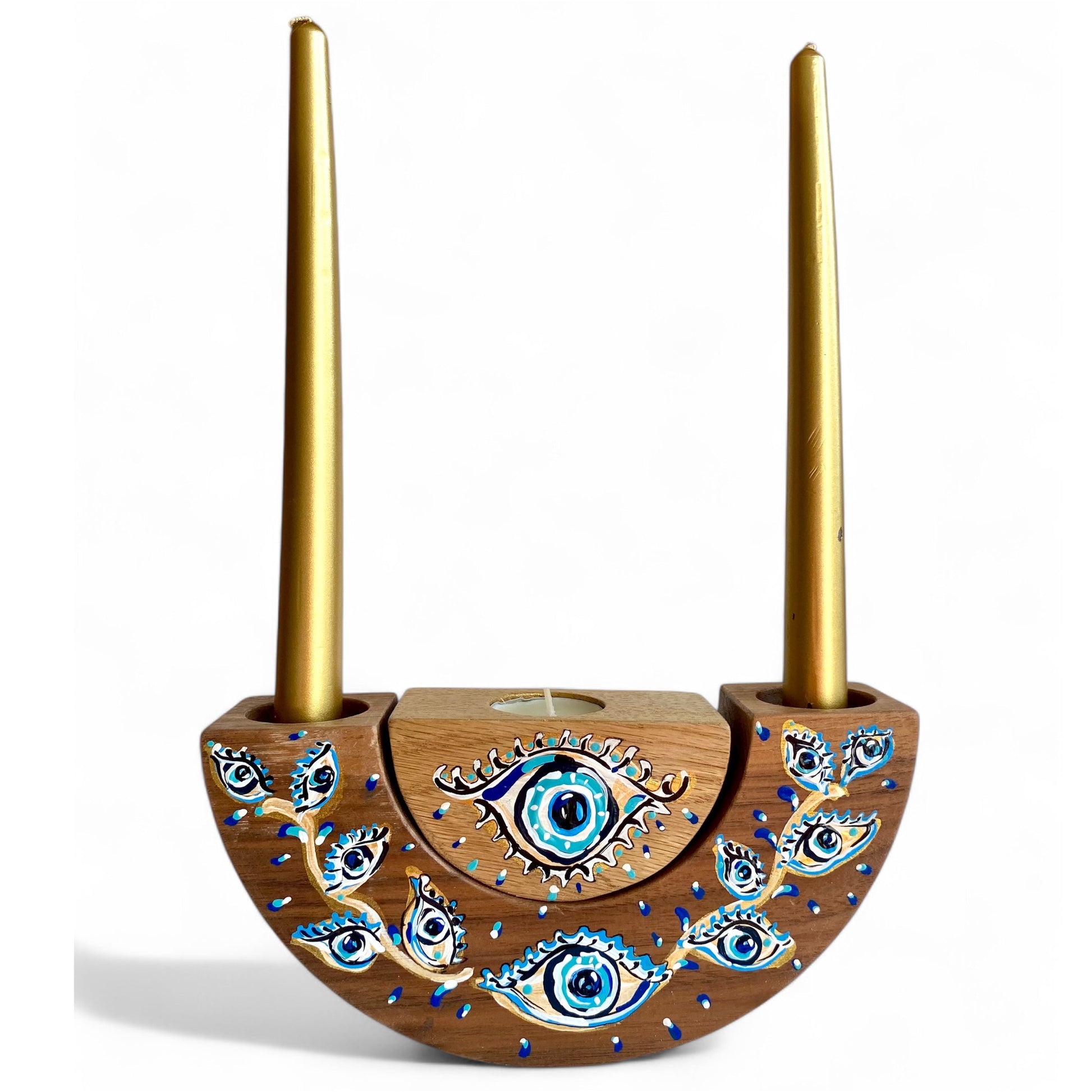 İki adet şamdan mumu ve bir tealight kullanımı ile beraber aynı zamanda üçlü tealight olarakta kullanılabilir.
