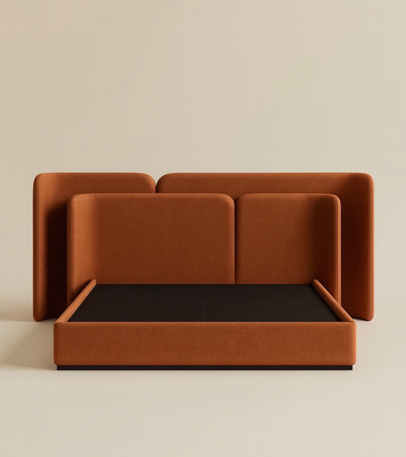 Modüler panellerden oluşan başlık tasarımı, duvara yaslanmadan kendi bütünlüğünü korur ve yatak odasında heykelsi bir etki yaratır. El işçiliğiyle üretilen Esmare Kadife Karyola, çağdaş yaşam alanlarına sıcaklık, denge ve görsel güç kazandırır.