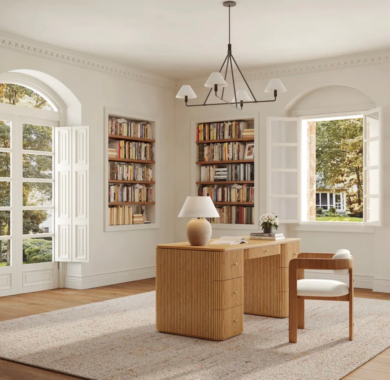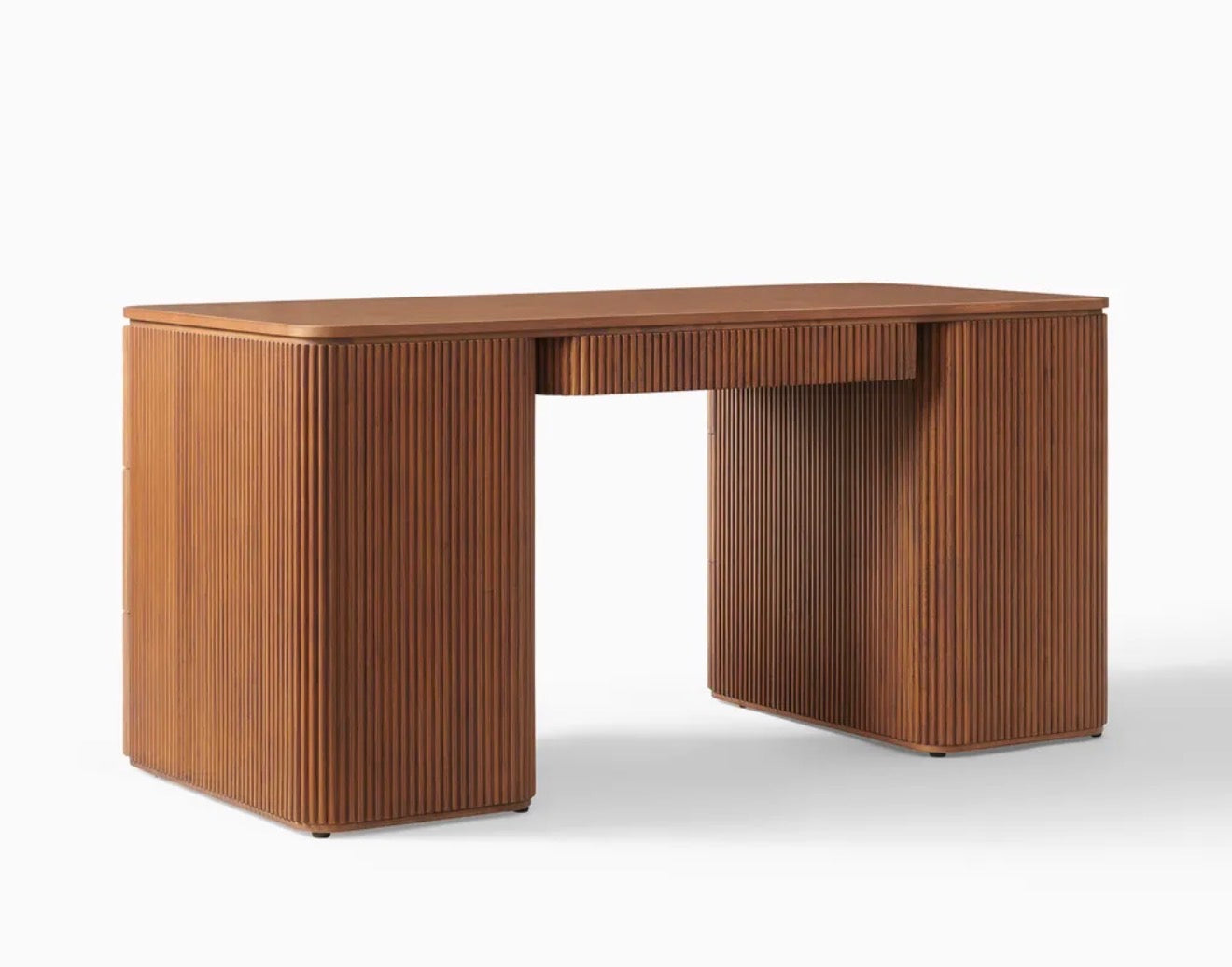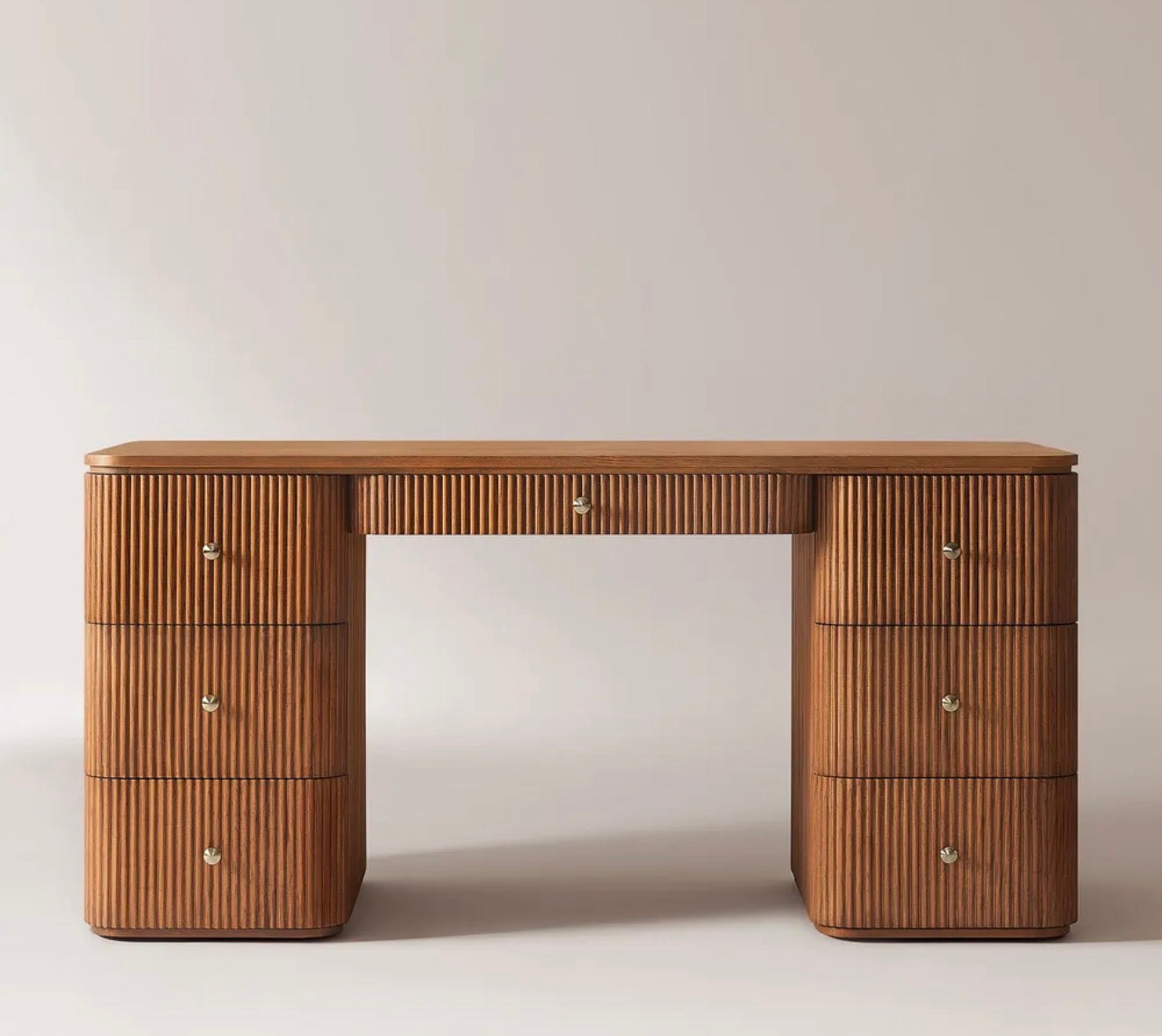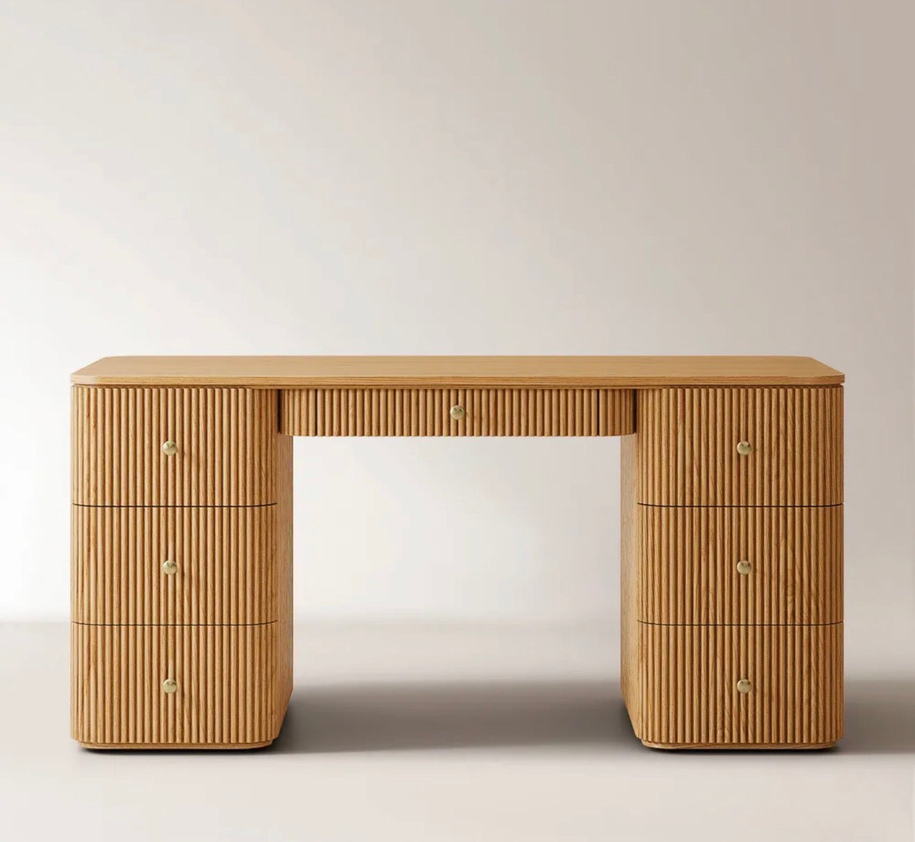 Esona Ahşap Çalışma Masası, doğadan gelen sıcaklığı çağdaş bir tasarım disipliniyle yorumlar. Flüt detayları, Art Deco zarafetini modern çizgilerle yeniden şekillendirirken; simetrik formu çalışma alanında denge hissi yaratır. Hem yaratıcı hem profesyonel alanlara estetik bir dokunuş katar.