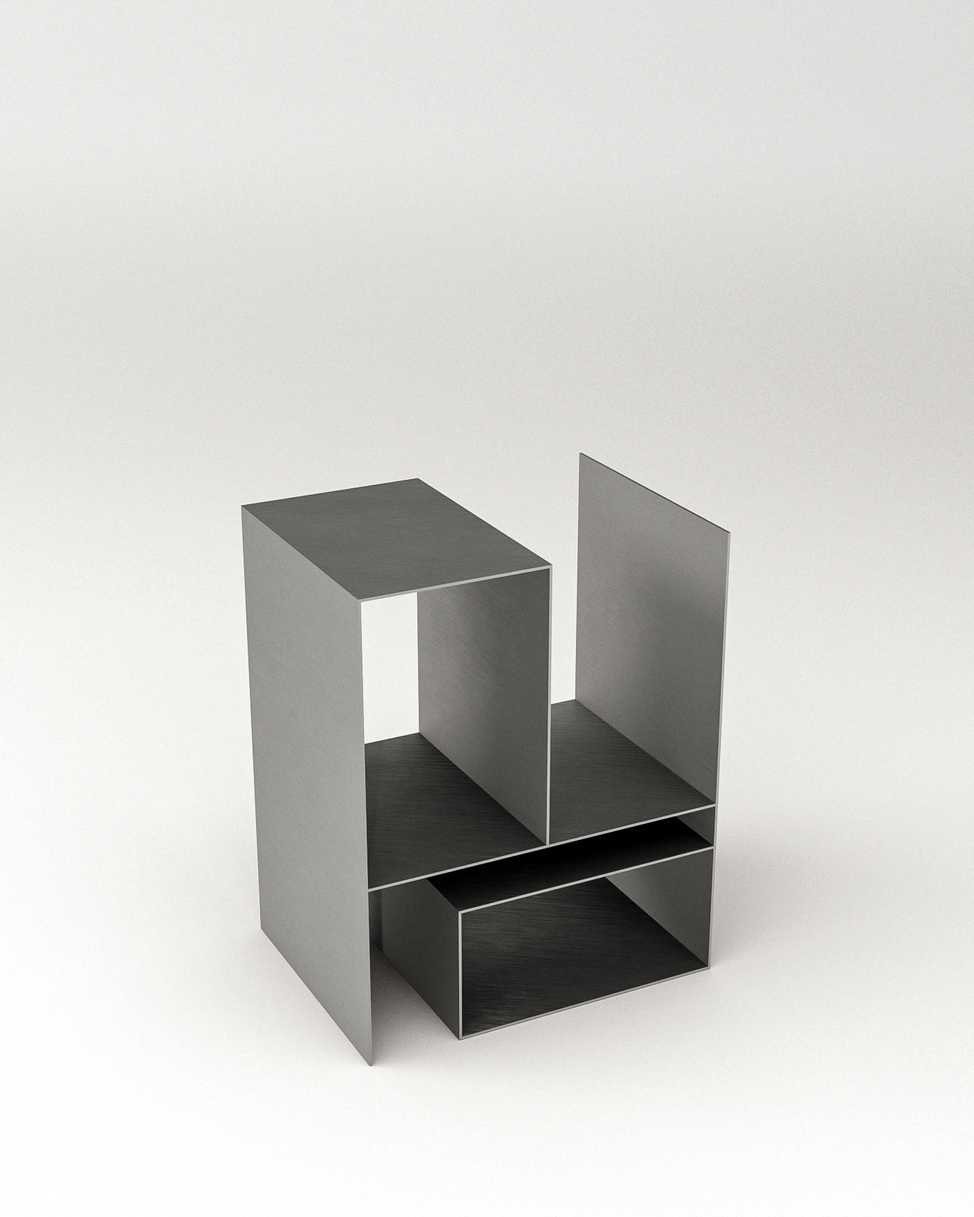 FOLD serisinin ilk ürünü, paslanmaz metalden keskin hatlara sahip yan sehpayı aynı zamanda dergilik ve depolama olarak kullanabilirsiniz.