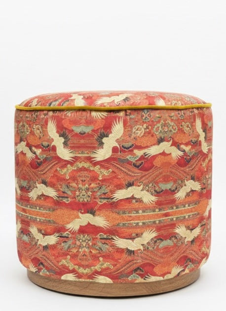 Turna Kuşu puf/yan tabure ya da ayak uzatma kadifemsi yüzeyi, dokunduğunuzda geçmişin zenginliğini fısıldayan yumuşak bir parlaklık yayılıyor.Üzerinde ki altın işlemeli Turnalar sanki kılıfın yüzeyinde değil, ebedi bir gökyüzünde kanat çırpıyormuş gibi görünüyor.Her turna sahibine mutluluk, sadakat ve sonsuz zarafet getirme vaadi taşıyordu. Bir salonun köşesinde, lüks bir koltuğun üzerinde parlayan kırlent, yalnızca bir dekorasyon parçası değil, aynı zamanda Doğu'nun büyülü bir rüyasıdır.