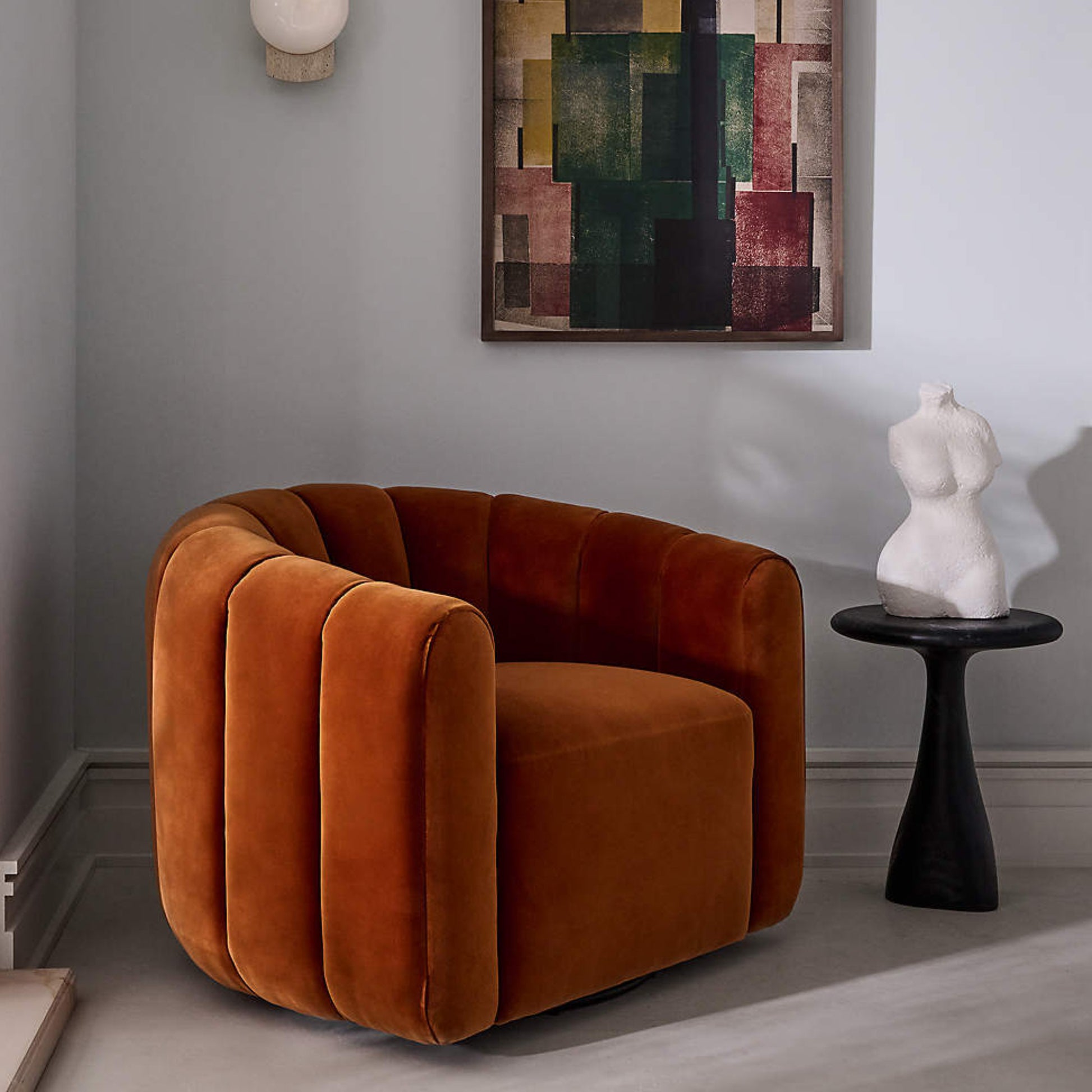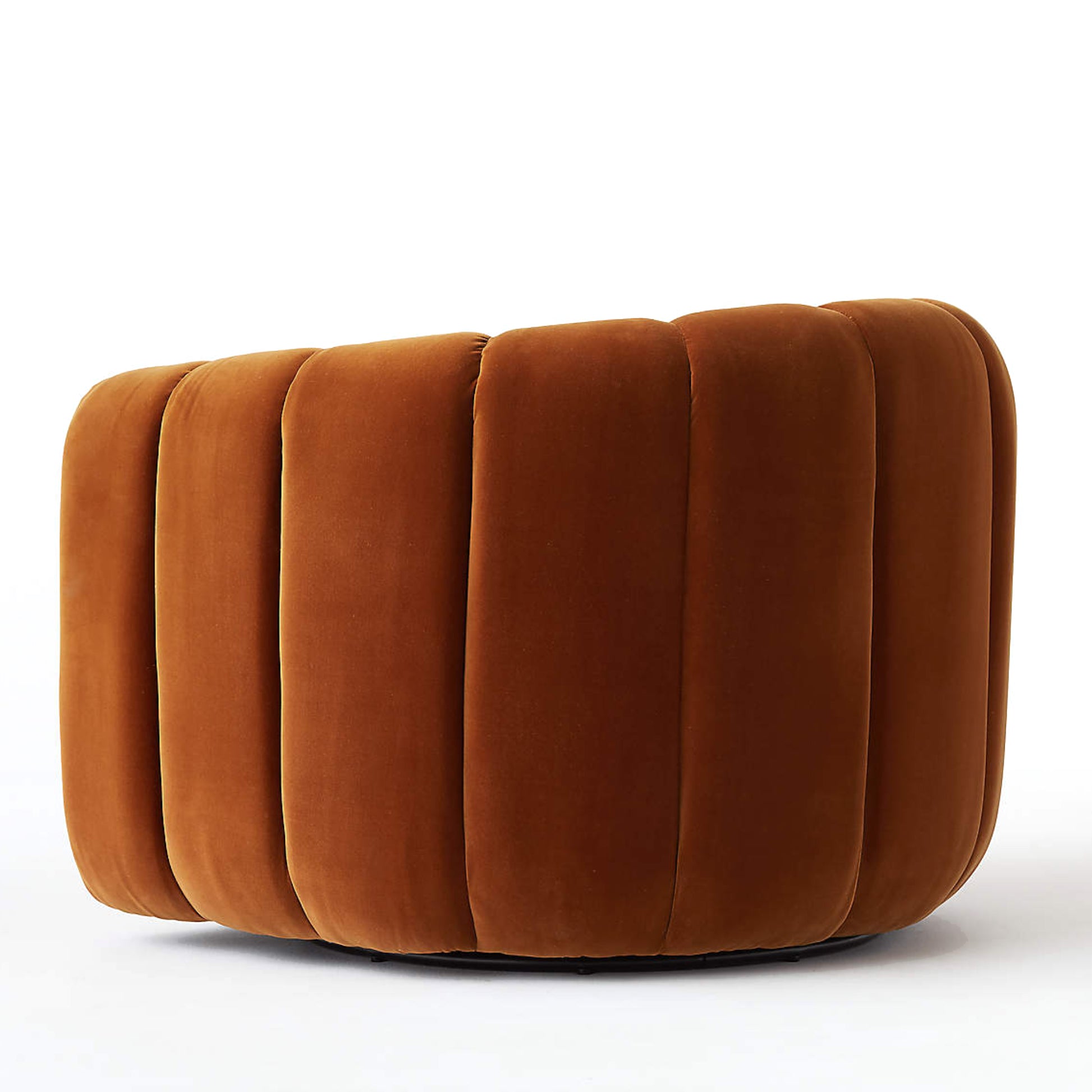 Hanoly Berjer, modern lüksü yansıtan yuvarlak hatlı ve zarif bir tasarıma sahiptir. Kadife döşemesi, yumuşak dokusu ile hem estetik hem de konfor sunar. Çarpıcı görünümü ve döner tabanı sayesinde her mekâna şıklık katarak hem işlevsel hem de stil sahibi bir tercih olur. Modern tasarımı ve göz alıcı detayları ile Hanoly Berjer, yaşam alanlarınıza sofistike bir dokunuş kazandırır.