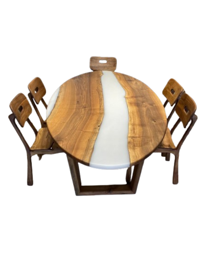 Ceviz Nehir Epoksi Elips Yemek Masası - Duman Gri Reçine Tasarım