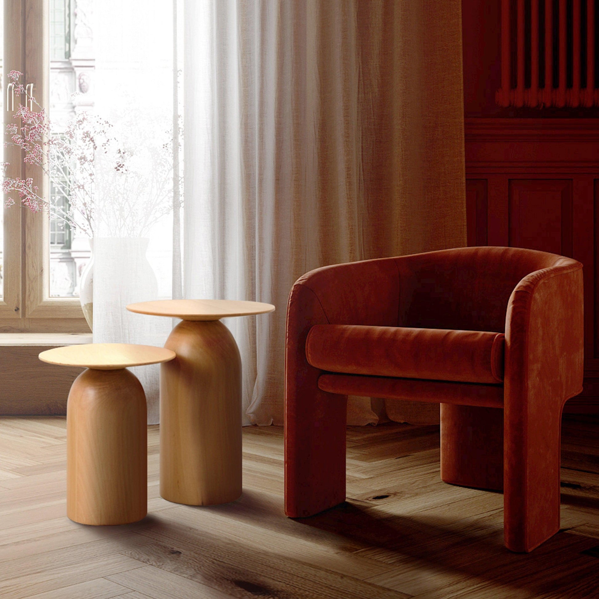 KABU yan sehpa, tamamen el yapımı olarak ıhlamur ağacından üretilmiştir. Ahşap ustalarımız tarafından özenle seçilen ağaçlar; ceviz ve siyah olmak üzere iki farklı cila seçeneği ile sunulmaktadır. İç mekanlar için üretilmiş olan bu kullanışlı sehpa, diğer boyu ile kombinlenebileceği gibi tek olarak da tercih edilebilir.