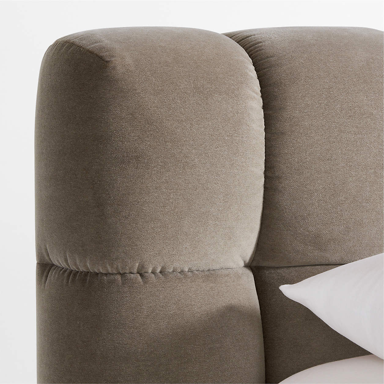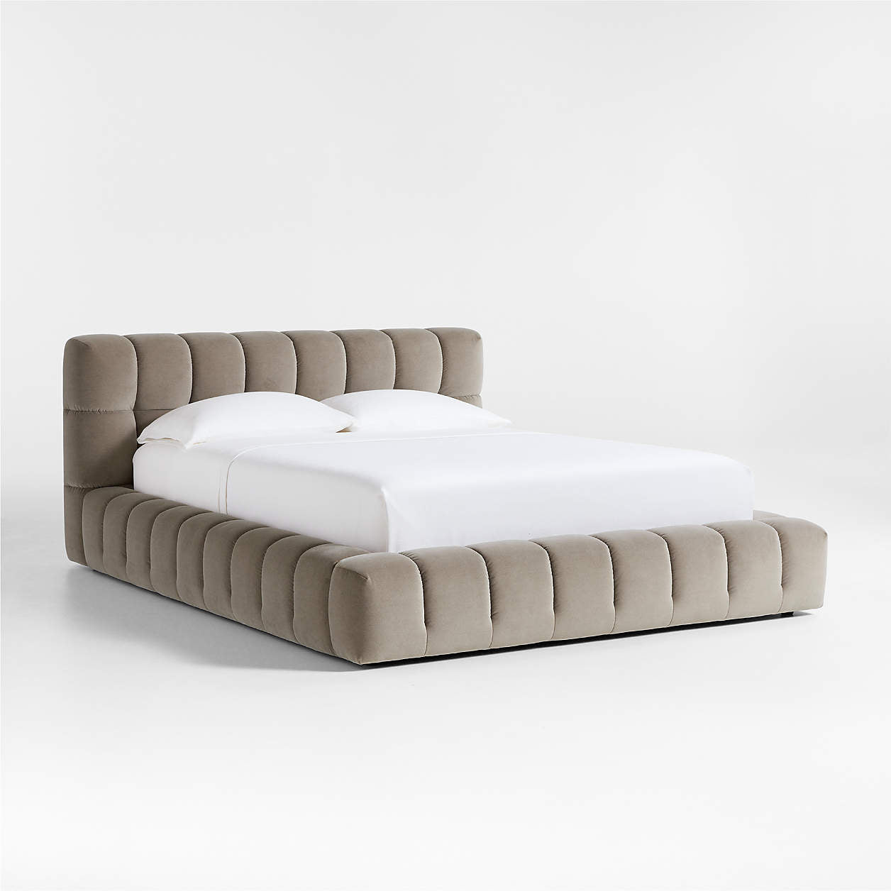 Kayle Kadife Karyola, sade çizgileriyle hem modern hem zamansız mekanlara uyum sağlar. Bej duvar tonları, mermer komodinler ve bronz detaylı apliklerle birleştiğinde kusursuz bir denge oluşturur. Düşük formlu yapısı sayesinde yüksek tavanlı odalarda mimari bir bütünlük sağlar.
