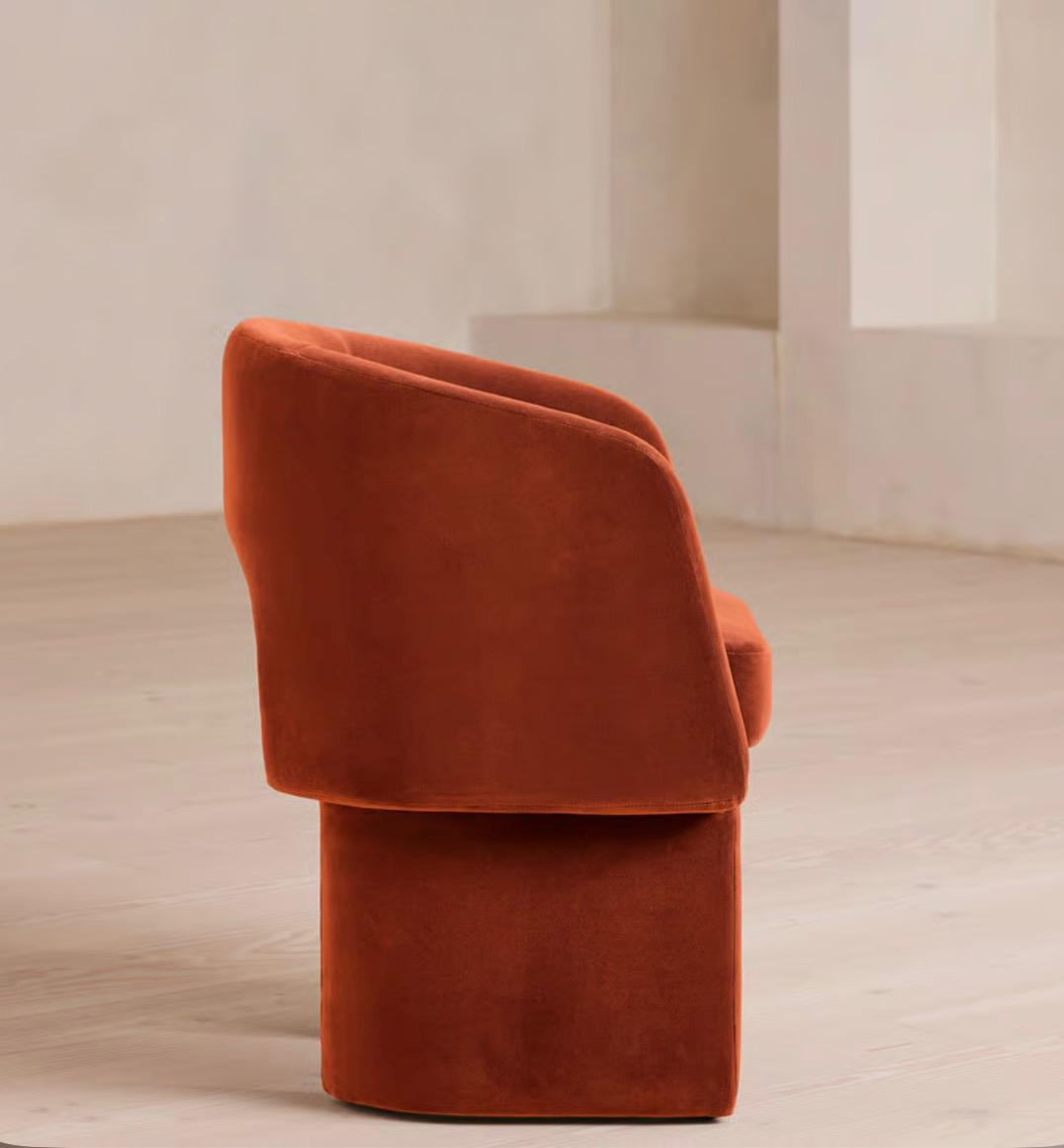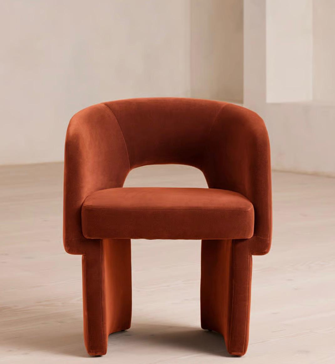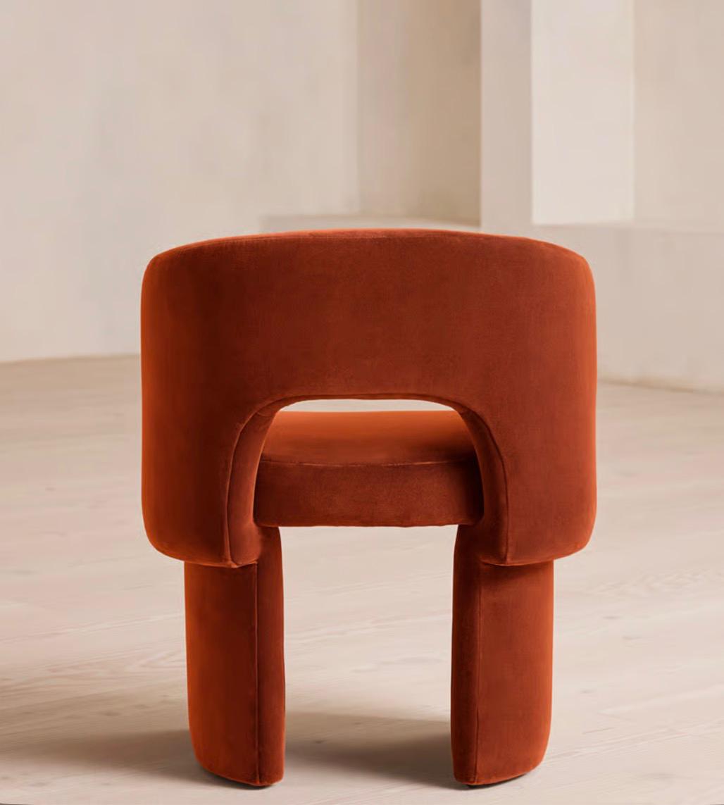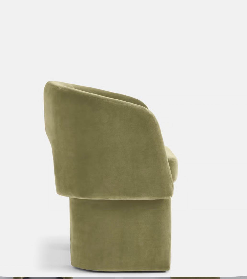 yumuşacık pamuk kadife döşemesi ve kavisli sırt formu ile yaşam alanlarında heykelsi bir duruş sergiler.