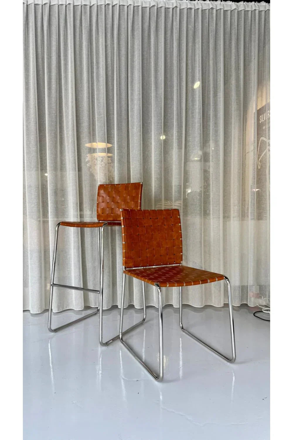 Dan Form Straps Ding Chair, İskandinav estetiğinin yalın hatlarını el yapımı İtalyan deri kayışlarla bir araya getiriyor. Metal gövdesi ve el örgüsü deri oturumuyla hem zarif hem de işlevsel bir tasarım sunan bu sandalye, yaşam alanlarında özgün bir karakter yaratır.