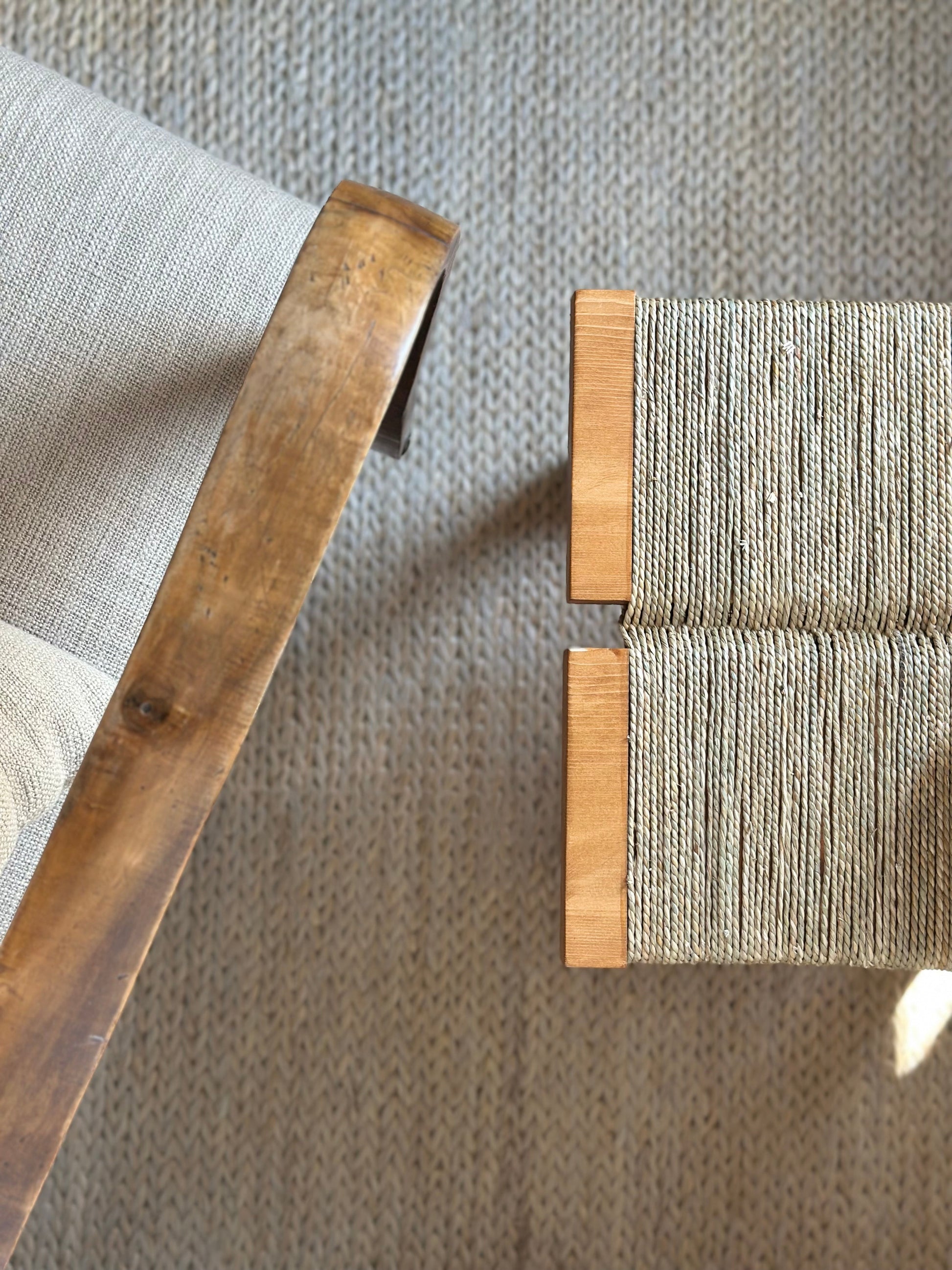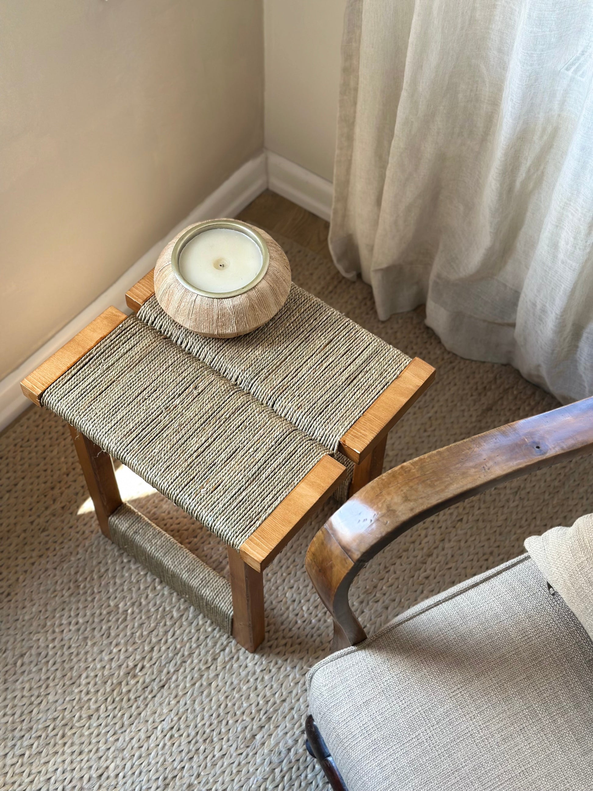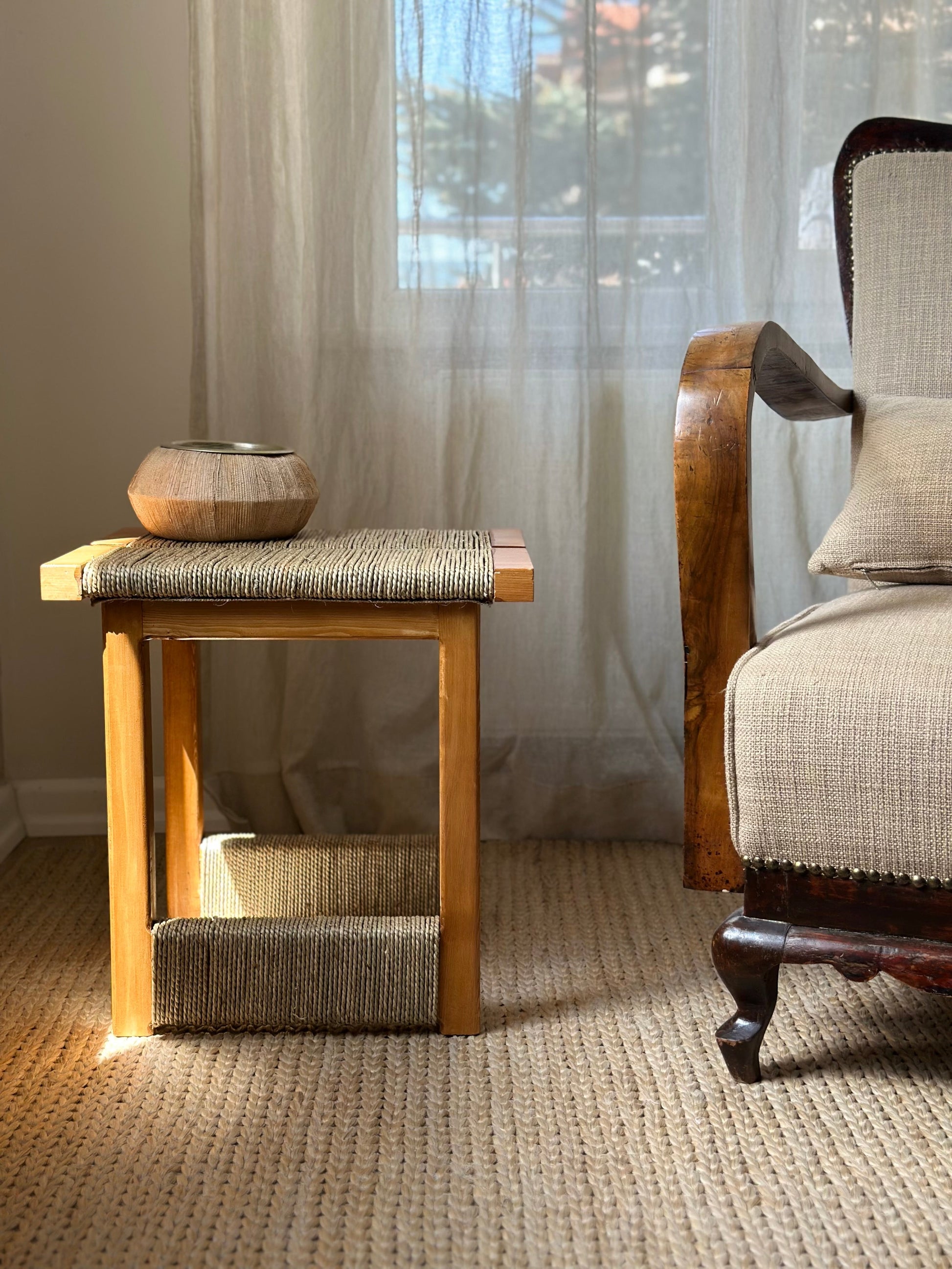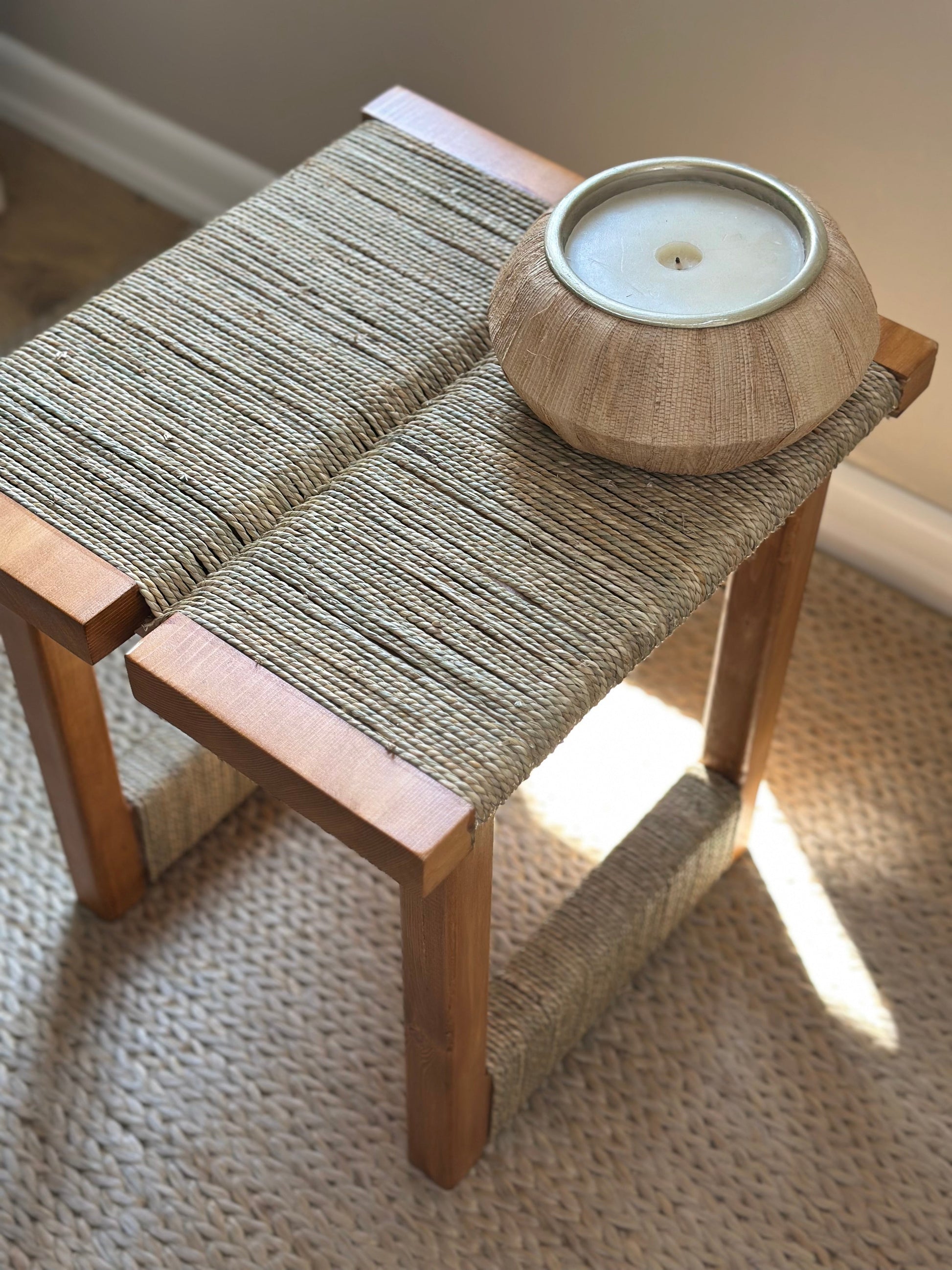 Modern tasarımı geleneksel zanaatkarlıkla birleştiren bu el yapımı ve el dokuması parça, ister sehpa ister tabure olarak kullanın, evinize çok yönlü bir doku katacaktır. Sürdürülebilir şekilde hasat edilen doğal deniz yosunu halatları, temiz hatlara sahip ladin ağacına sımsıkı sarılır.