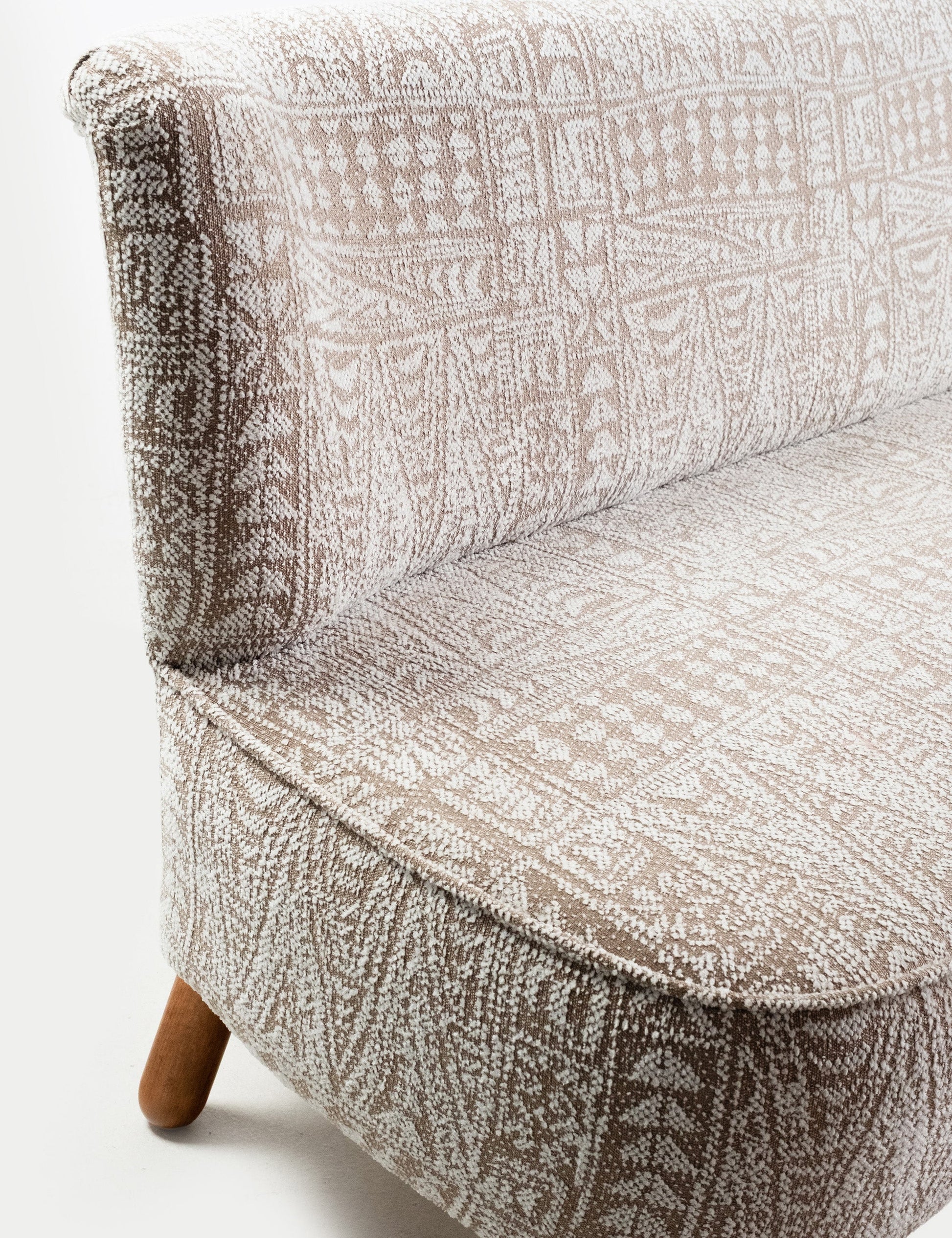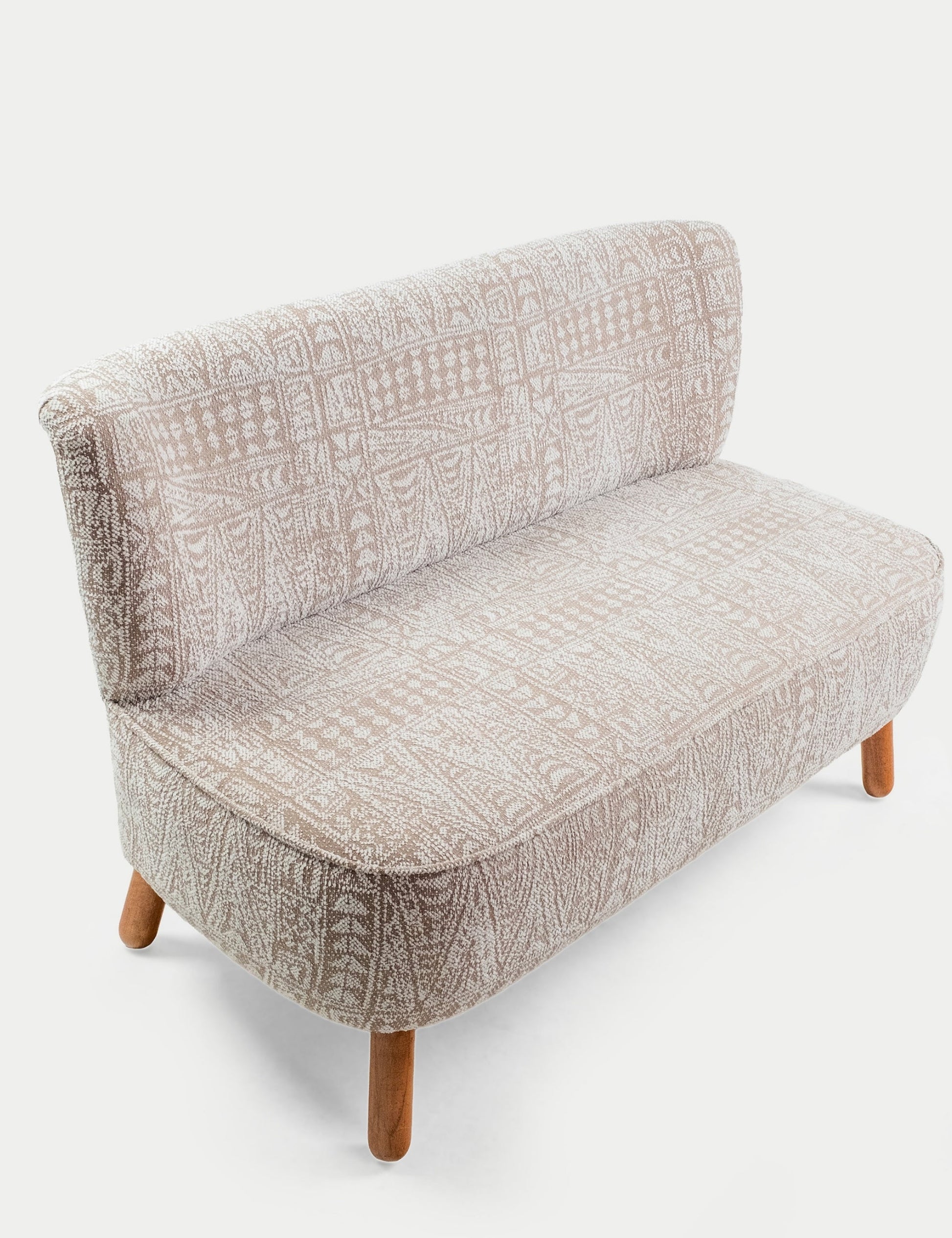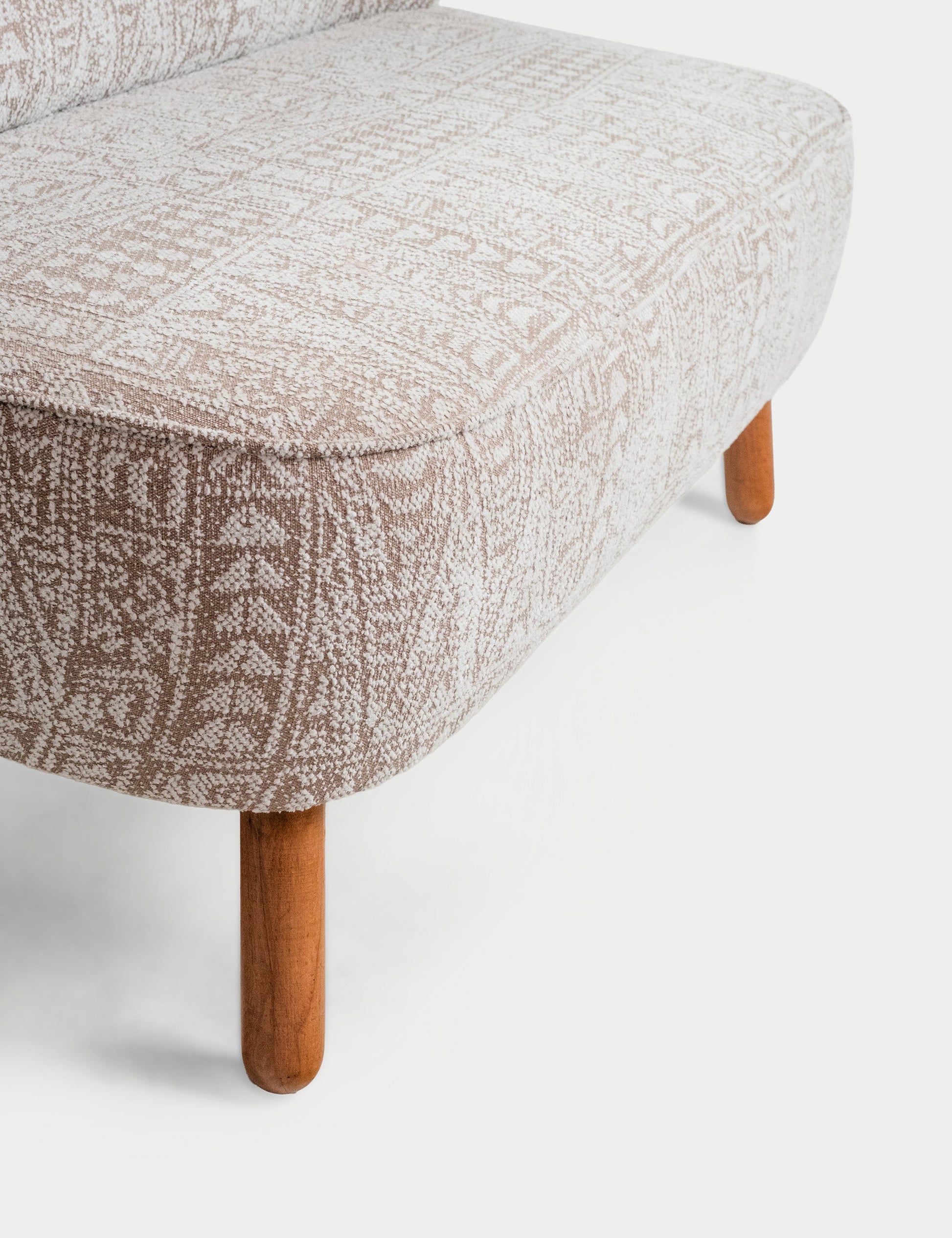 Mythology etnik çizgileri, farklı kültürlerin geleneksel desenleri ve doğal malzemelerle birleştirerek evde sıcak ve sofistike bir atmosfer yaratır. Kanepe, odanın sade fonunda bir vurgu noktası haline gelir.