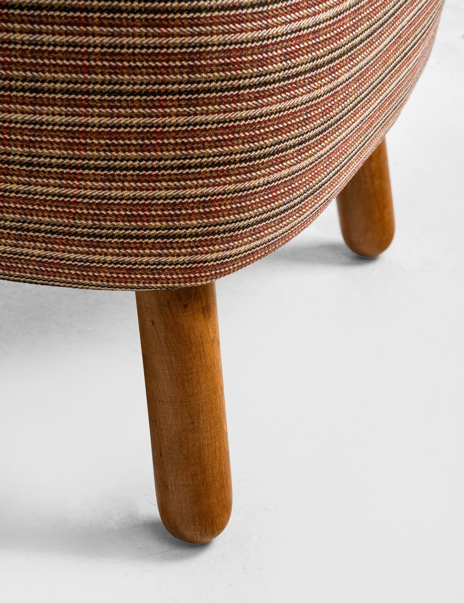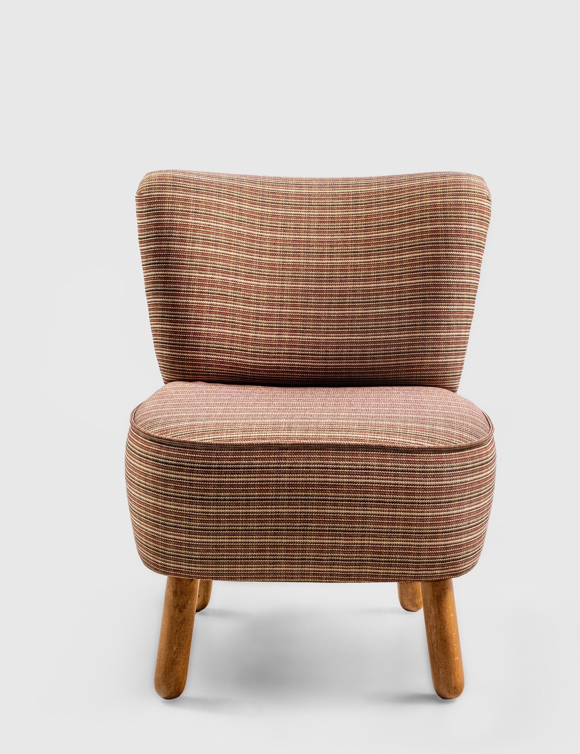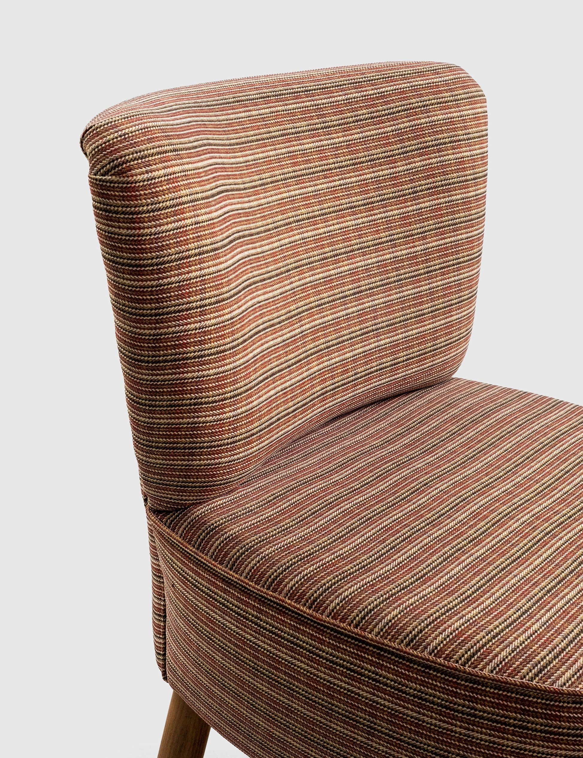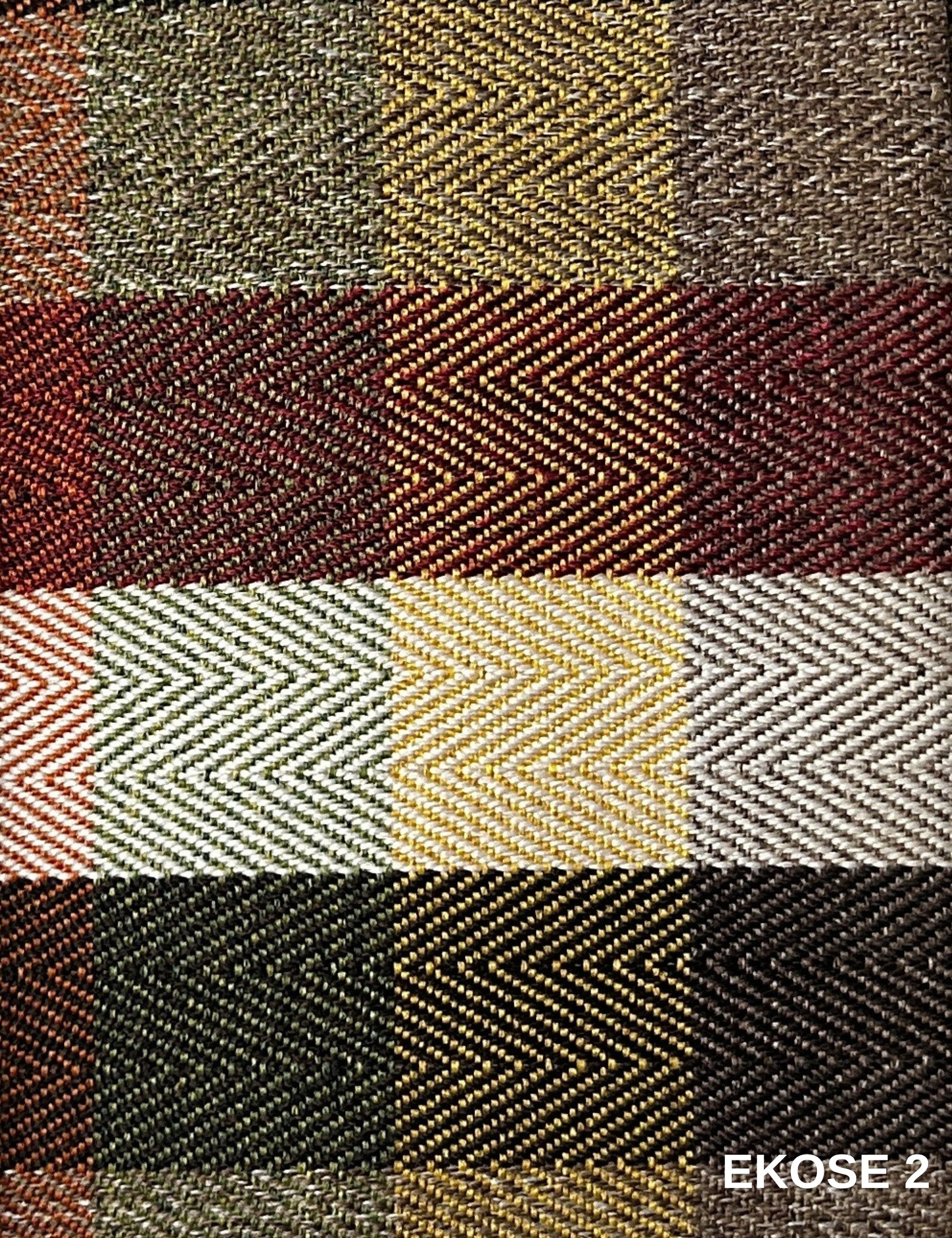 Ekose desenlerin her köşeyi tamamlayan dokusu, ilk bakışta huzur verir. Kıvrımlı masif ahşap ayakları, doğanın ve el işçiliğinin sıcaklığını taşırken, kenarlarını çevreleyen incelikli fitiller tasarıma nostaljik bir karakter katıyor.