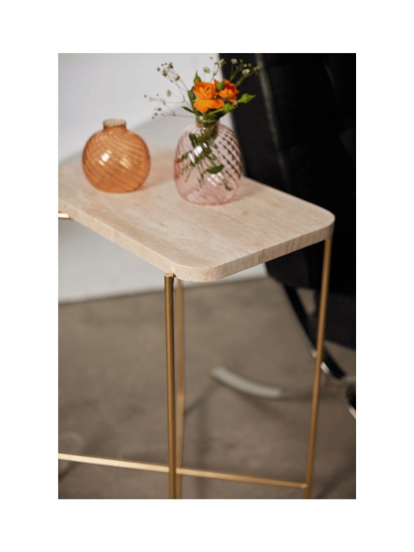 Üst mermer/traverten tabla ayaklara oturduğundan kayma, düşme ya da yerinden oynama yapmaz.