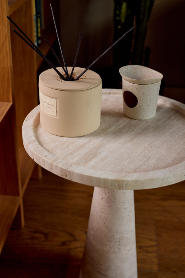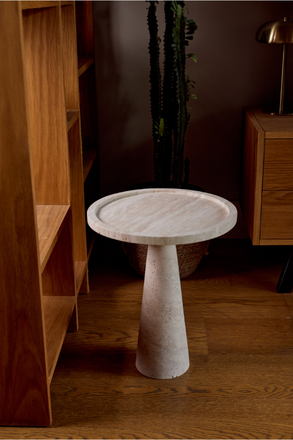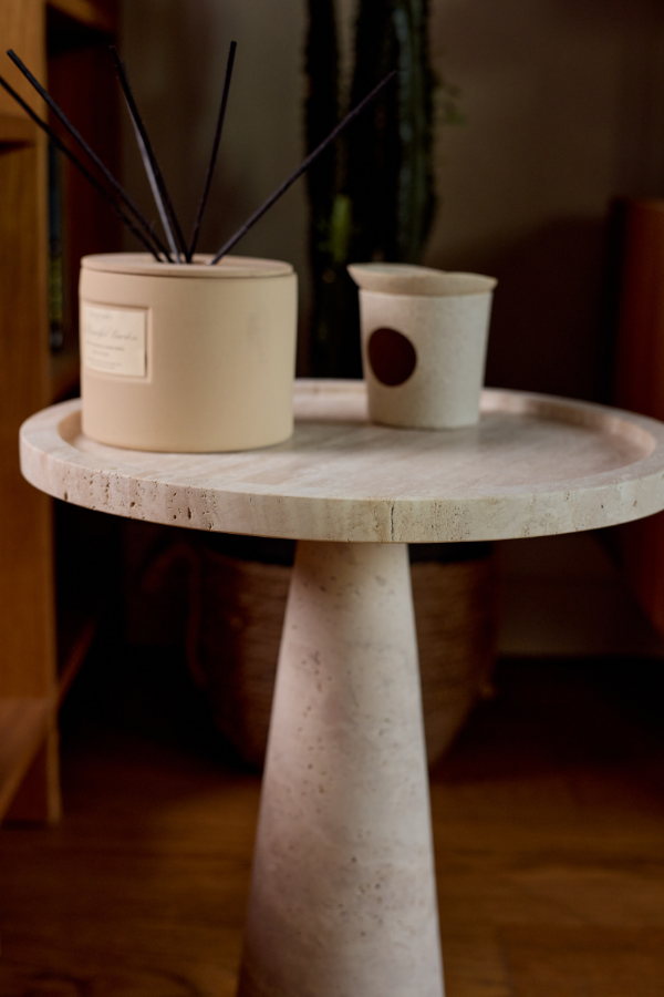 Vela, zarif konik formuyla modern iç mekanlara sofistike bir dokunuş katarken, doğal travertenin sıcak tonlarıyla mekâna organik bir denge getiriyor. Her bir parça, taşın özgün damarlarıyla şekillenen ve zamanla daha da güzelleşen bir yapıya sahip. Minimalist tasarımıyla öne çıkan Vela, yerden yükselen zarif hatlarıyla hem işlevsel hem de estetik bir öğe sunuyor. Bu sehpa, modern yaşam alanlarında sade şıklığı ve doğanın gücünü bir arada arayanlar için mükemmel bir seçim.