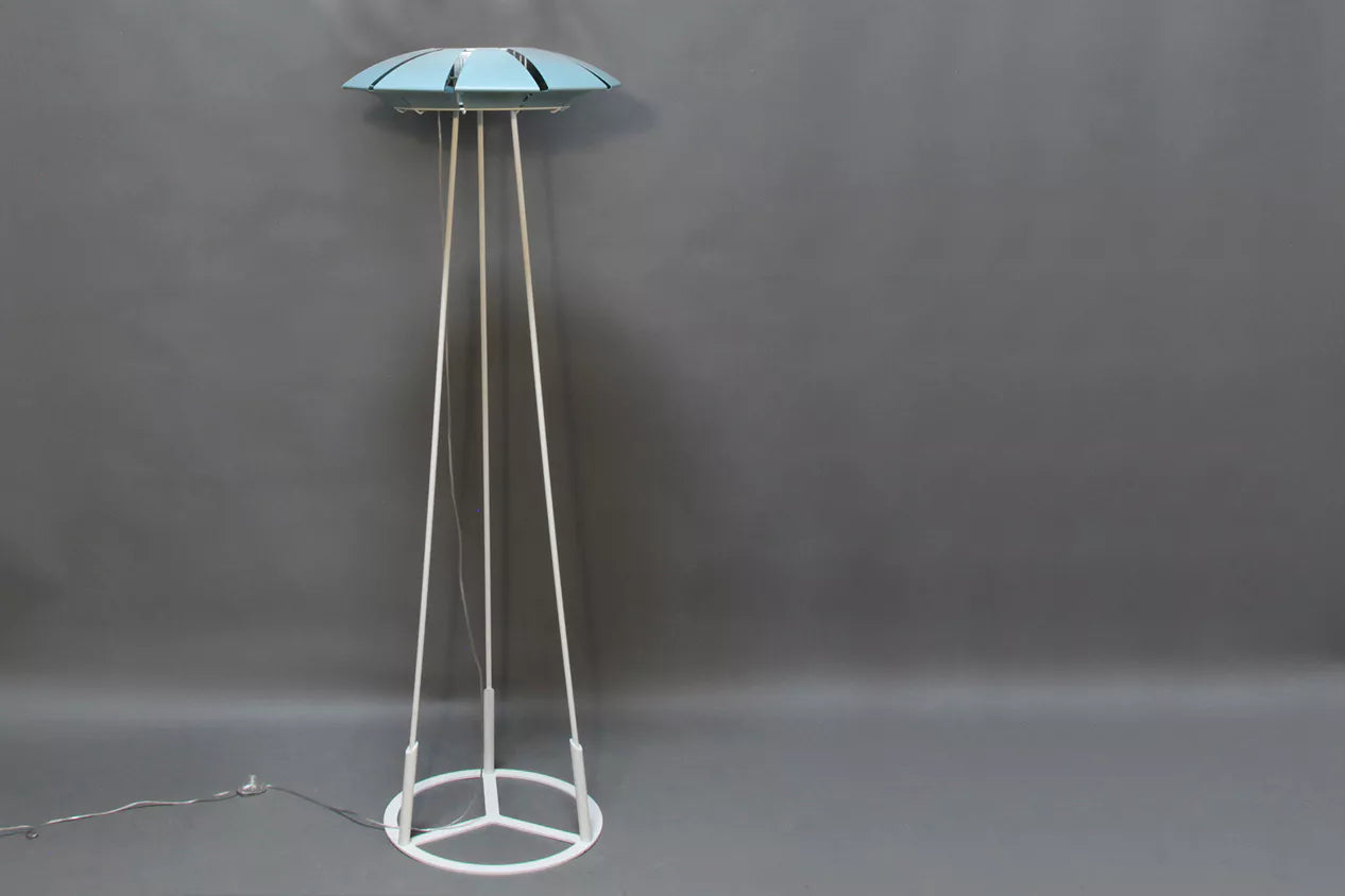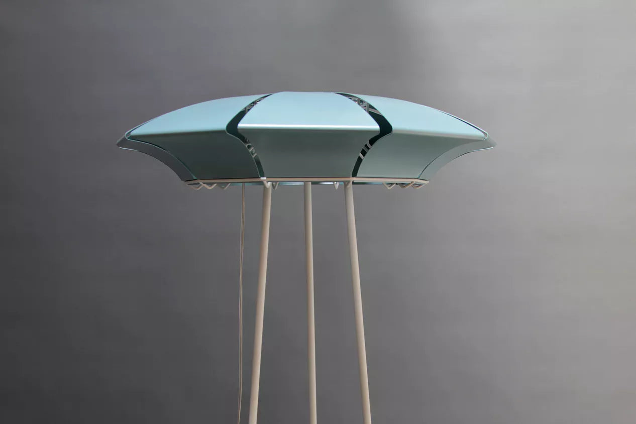 Lamba, metal bir iskelet üzerine yerleştirilmiş metal yapraklardan oluşan bir taç formuna sahiptir.