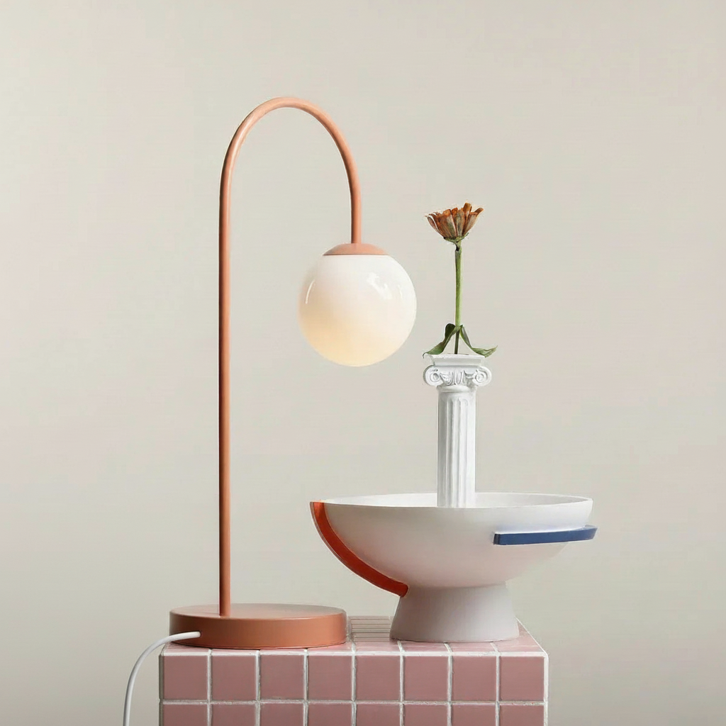 Umbra Masa Lambası, pastel saten bir dokunuşla tasarlanmış olup, kemer motifini kullanır. Modern ve farklı tarzdaki mekanlar için özel olarak tasarlanmıştır; masa üzerindeki alanı mükemmel bir şekilde doldurur. Umbra, iç mekana benzersiz ve göz alıcı bir katkı yapmak için süt beyaz rengindeki glop camı modern bir şekil ve ilginç renkle ustaca birleştiriyor.