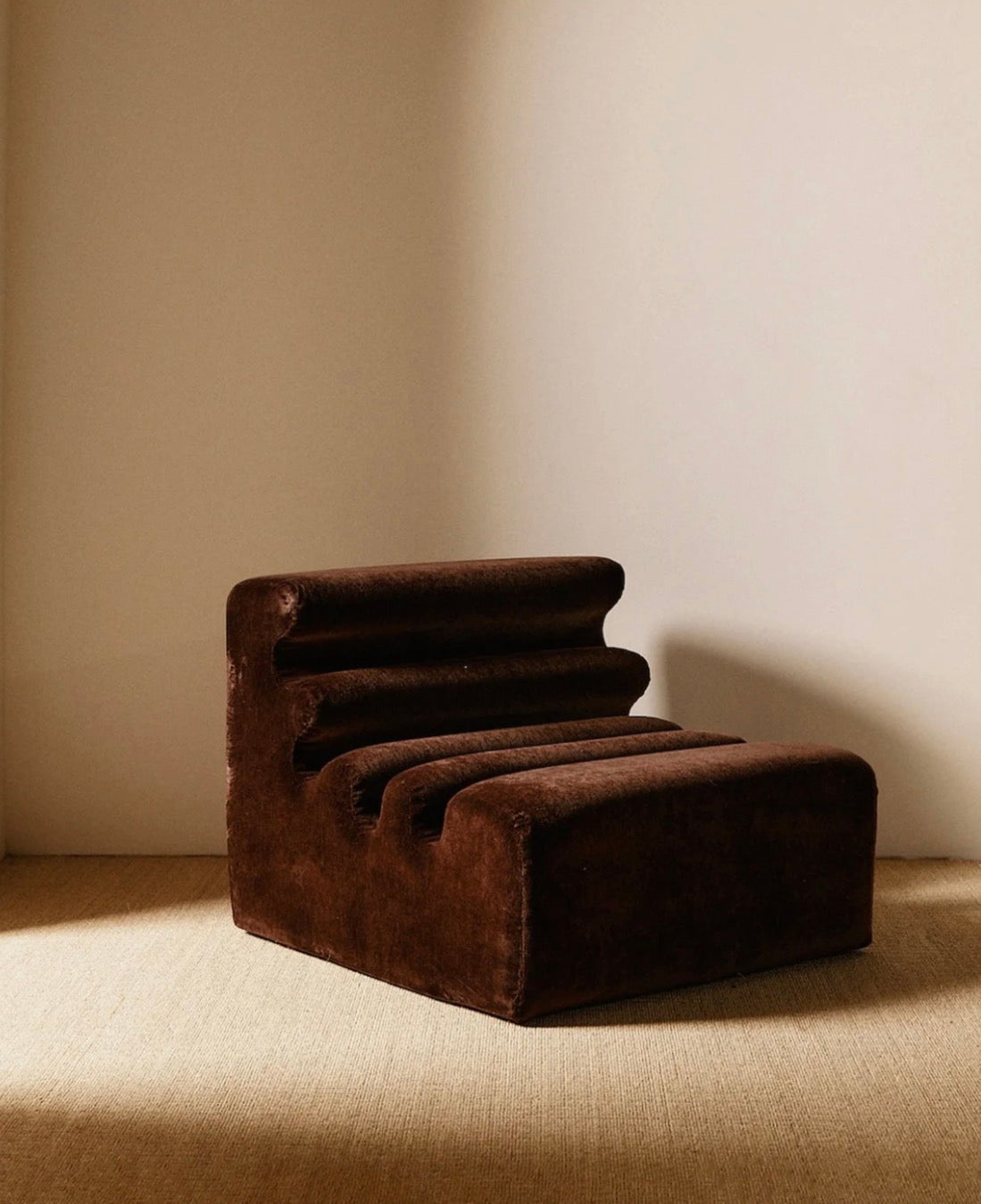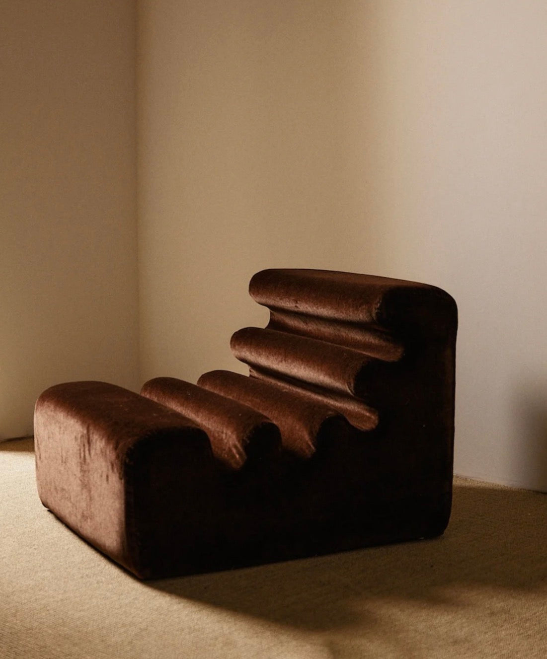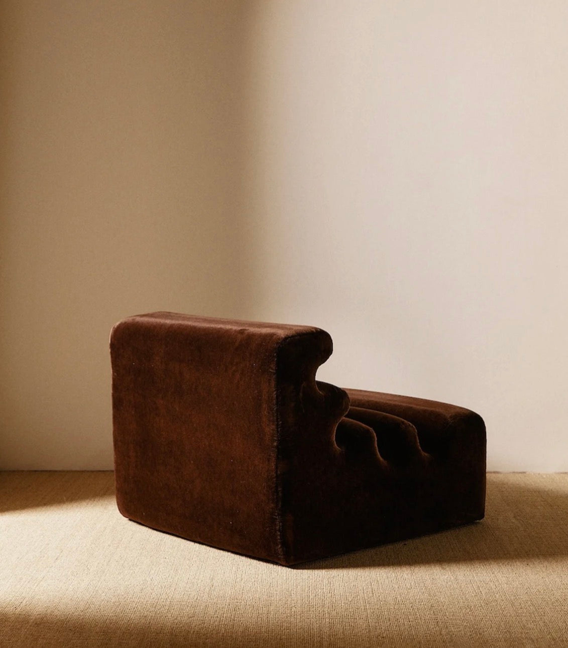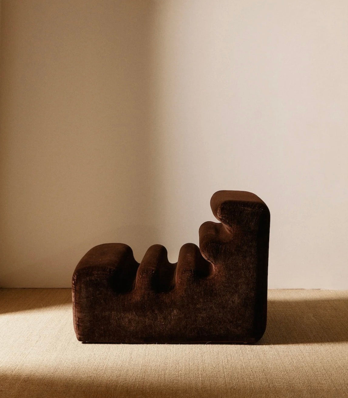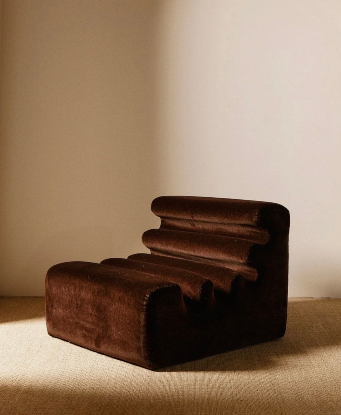 Düşük oturum yüksekliği, konforlu eğimli sırt formu ve kabartmalı yüzeyiyle sadece bir koltuk değil, mekânda odak noktası oluşturan bir tasarım objesidir.