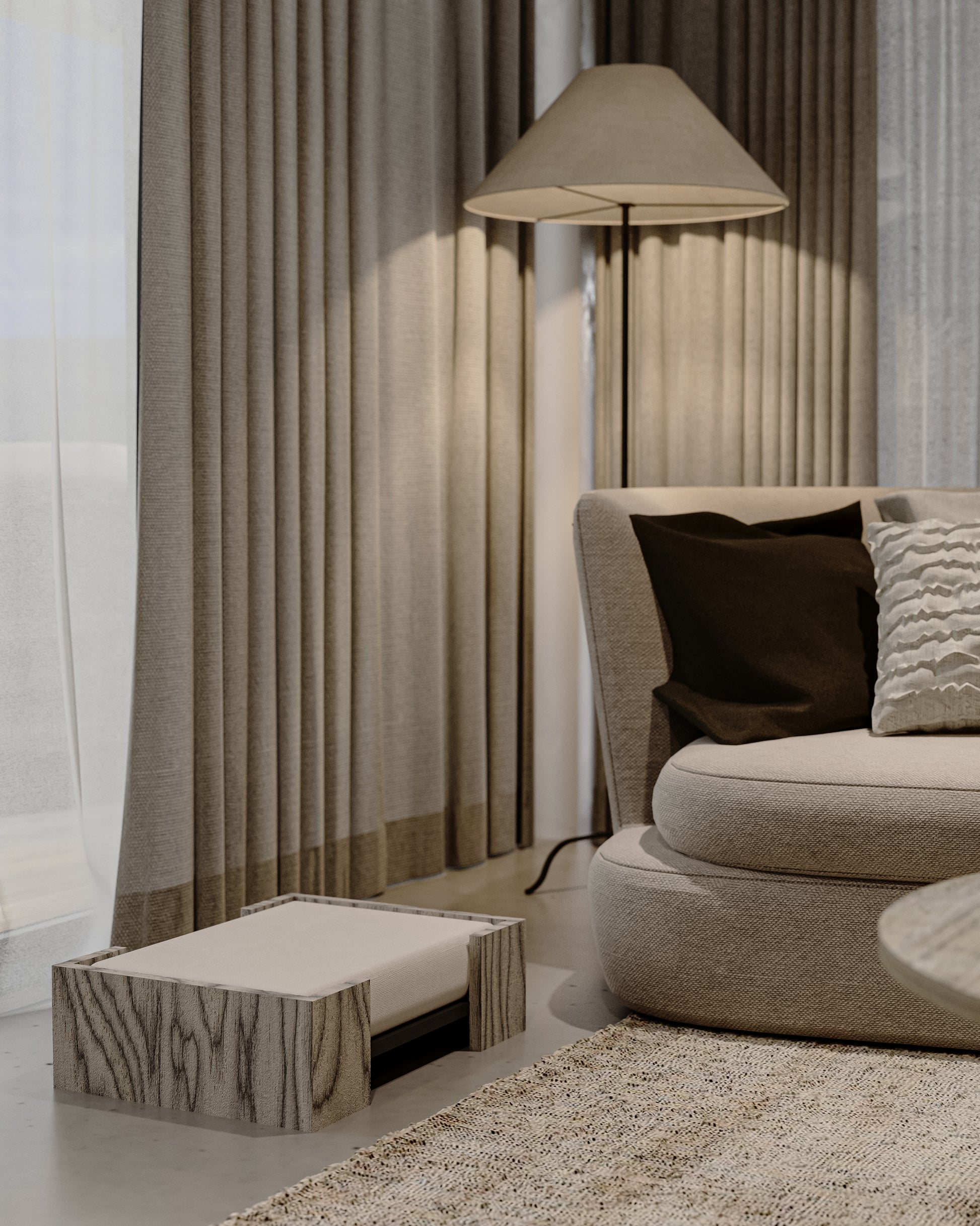 Pulse koleksiyonundan bu evcil hayvan yatağı, zarafet ve konforu kusursuz bir şekilde bir araya getirerek hem yaşam alanınıza hem de dostunuzun hayatına şıklık katıyor. Yumuşak ve pelüş yastığı, rahat ve huzurlu bir dinlenme alanı sunarken; sağlam yapısı uzun ömürlü kullanım sağlar. Rafine tasarımı ve özenli el işçiliğiyle bu parça, yalnızca bir evcil hayvan aksesuarı değil; yaşam alanınıza sofistike bir dokunuş kazandıran özel bir tamamlayıcıdır.