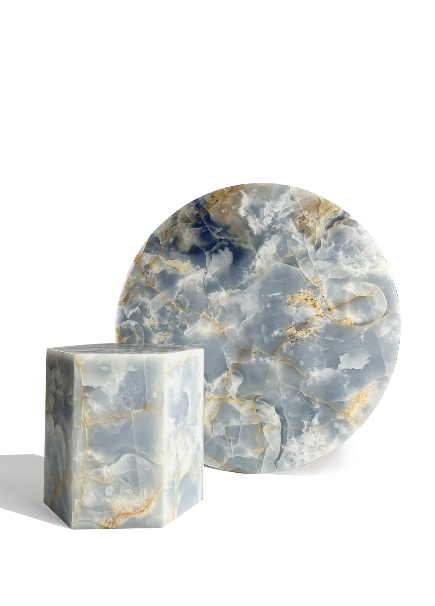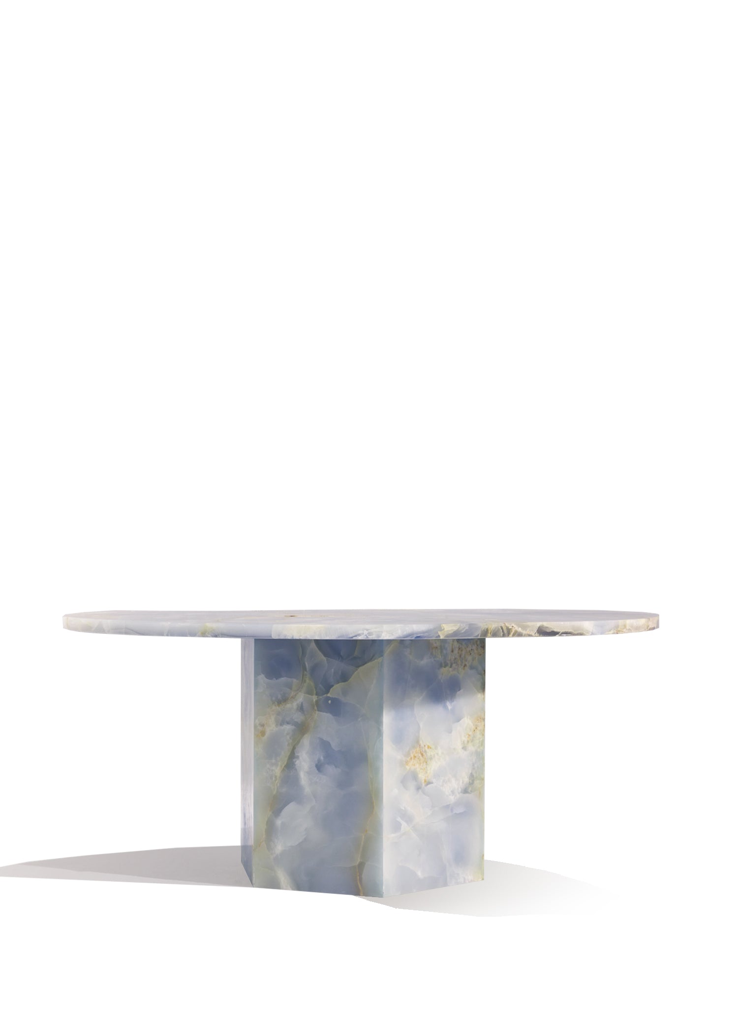 Mavi oniks taşının benzersiz renk ve desenleriyle öne çıkan bu sehpa, yaşam alanınıza sofistike bir dokunuş katar. Doğal taş olması nedeniyle, her ürünün desen ve renk tonları farklılık gösterebilir; bu yüzden sipariş ettiğiniz ürün, fotoğraftaki üründen küçük detaylarla farklı olabilir. Uzun ömürlü kullanım için yalnızca Arap sabunu ile temizlenmesi önerilir; diğer kimyasallar doğal taşın yapısına zarar verebilir. Oturma odanızda ya da salonunuzda Taffy, her ortamda zamansız bir şıklık sunar.