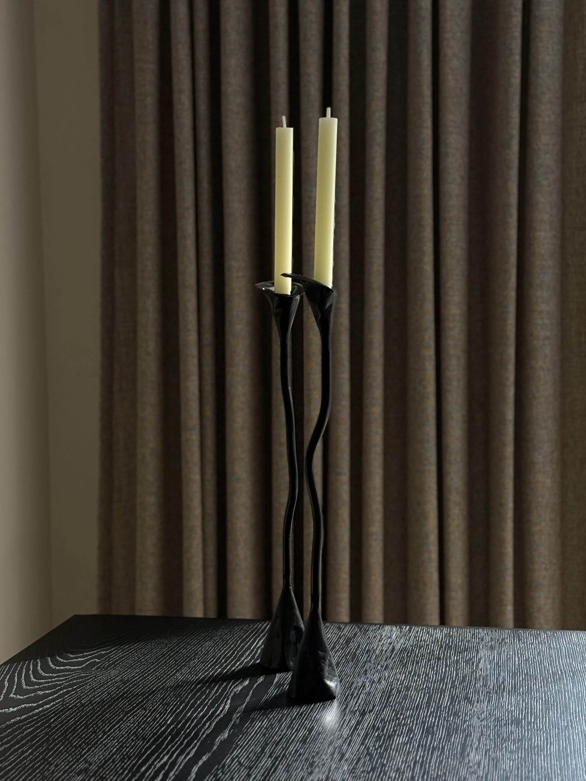 Mat siyah yüzey, hem ışığı emer hem de formun kıvrımlarında onu yeniden doğurur.