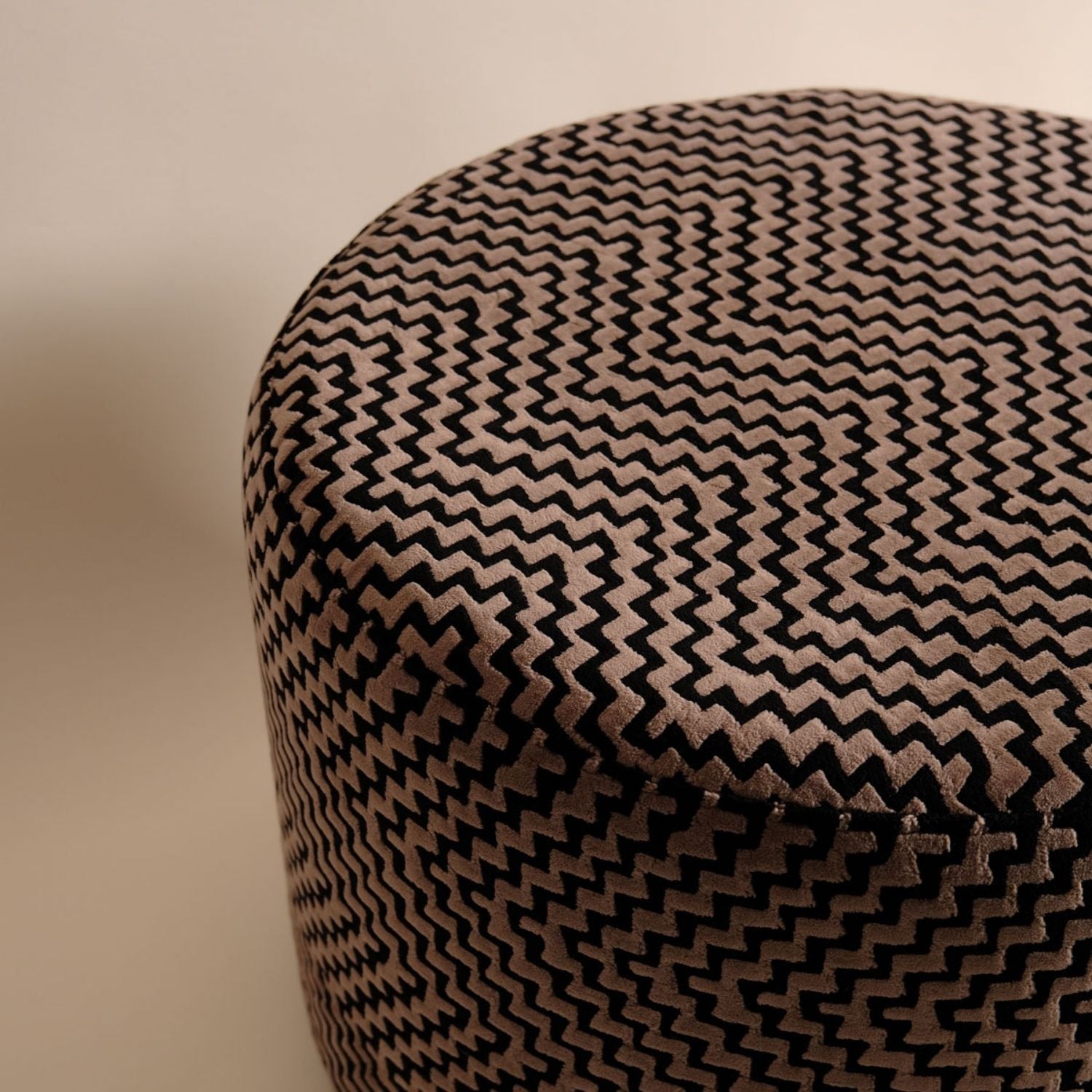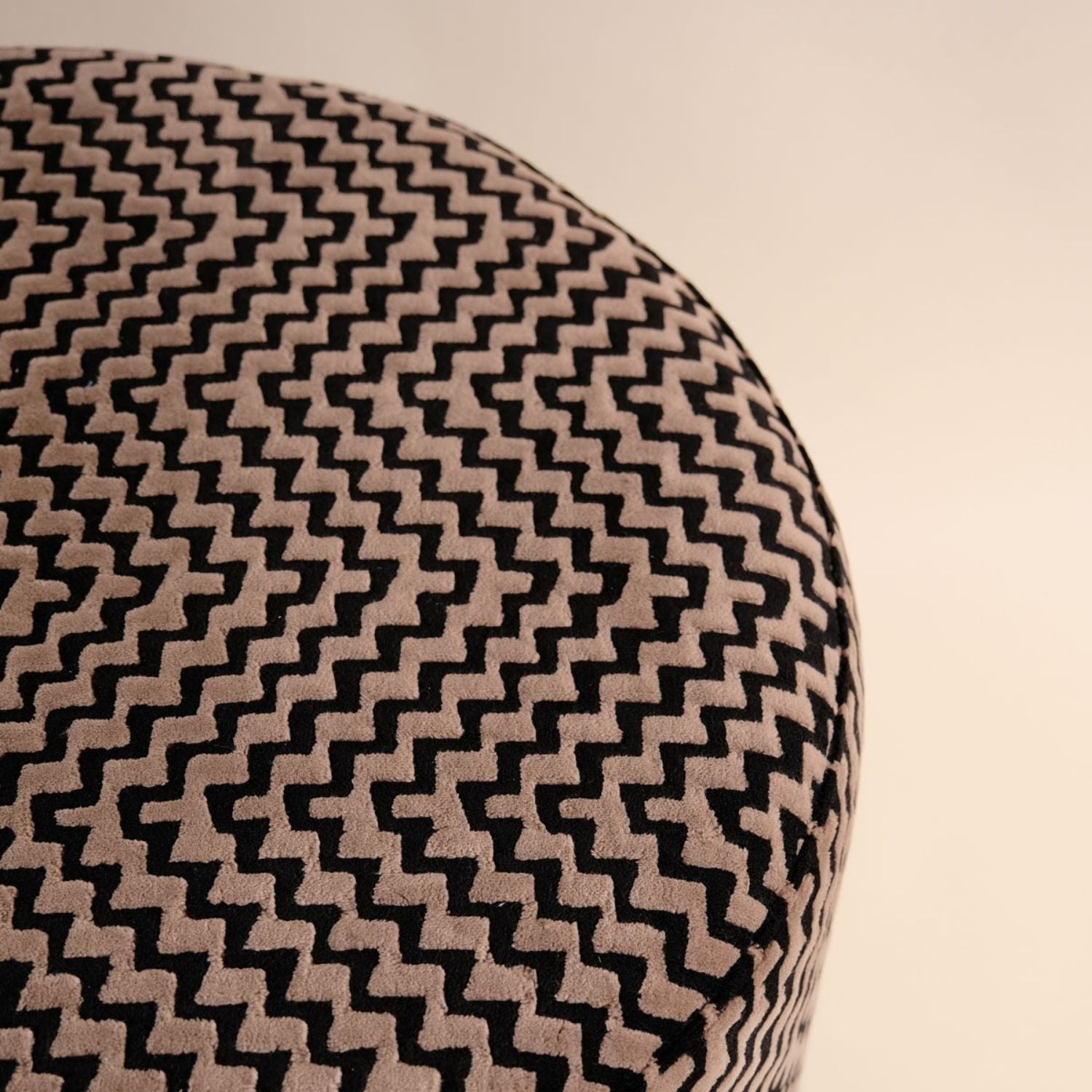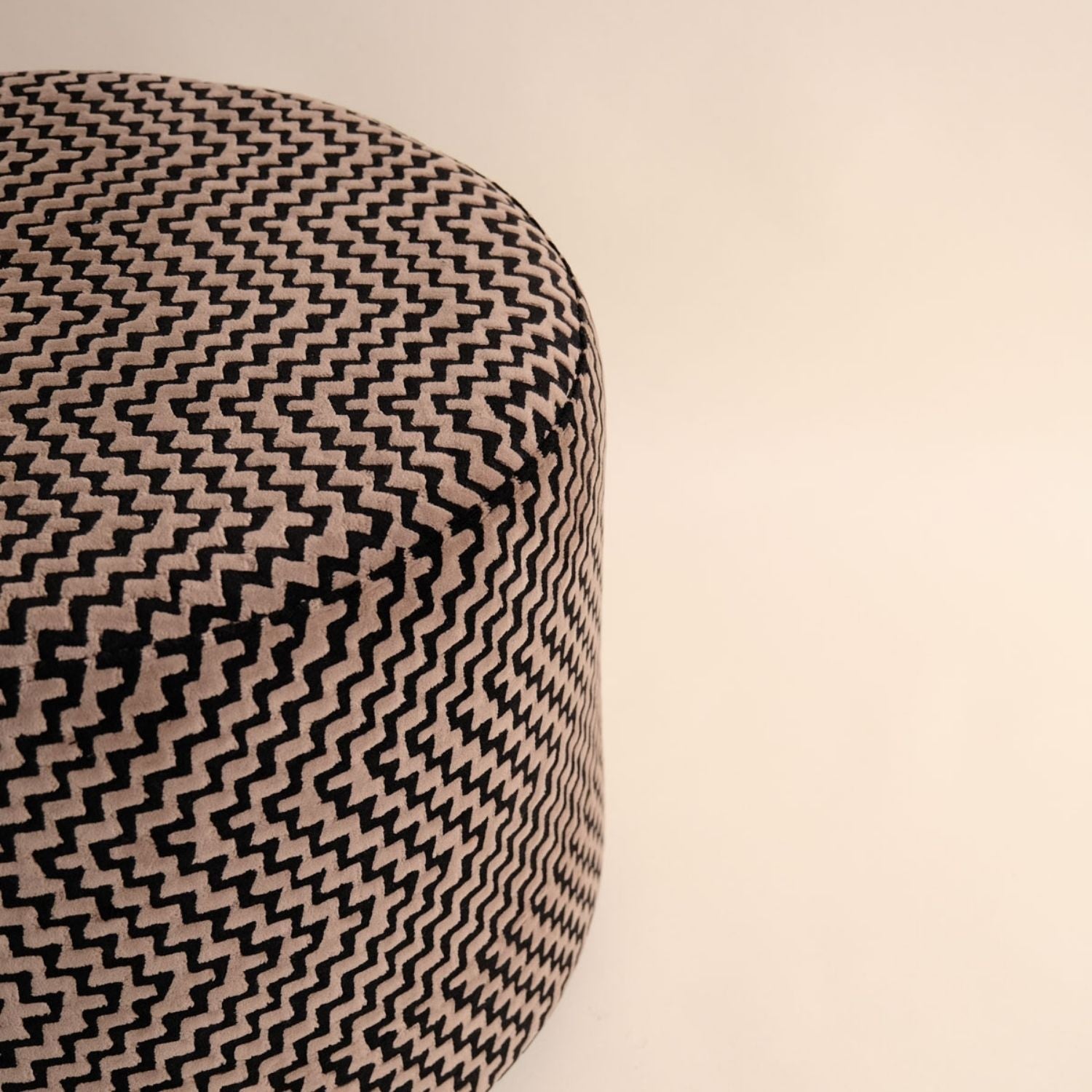 Cresta Puf, modern zigzag dokusu ve güçlü geometrik ritmiyle yaşam alanlarına enerjik, karakterli ve çağdaş bir ifade kazandırır. Yuvarlak formuyla mekâna yumuşak bir denge getirirken, 10 cm yüksek yoğunluklu sünger dolgusu ve sağlam MDF gövdesi sayesinde son derece konforlu bir oturum sunar. Alt bölümde kullanılan 3 cm lake boyalı MDF zemin, pufun modern çizgisini tamamlar ve kalın keçe bantlarla korunarak zeminde sürtünme riskini azaltır.