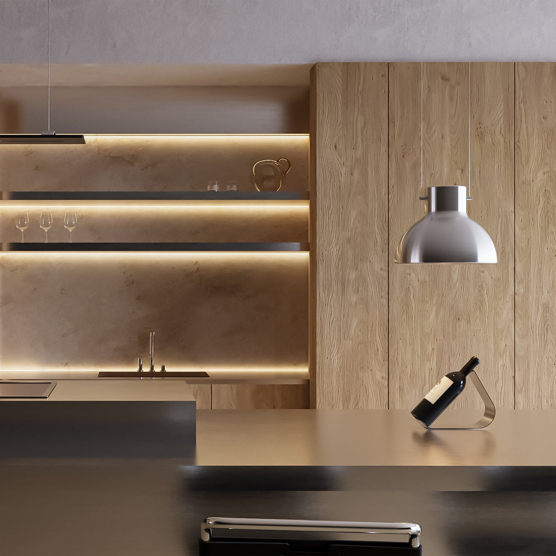 Şarabı taşımakla kalmaz; mekânda sakin ama güçlü bir odak noktası yaratır. Minimal ama kararlı çizgisiyle, gösterişten uzak bir zarafet sunar.