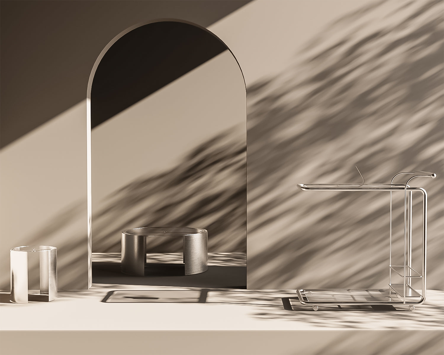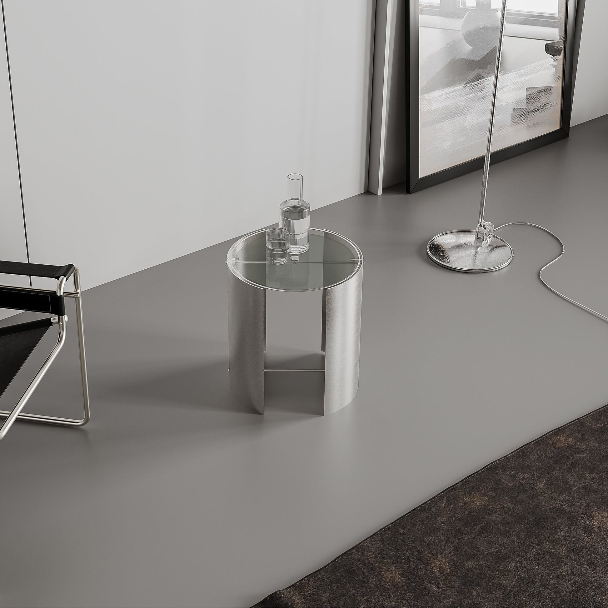 Dairesel formu ile paslanmaz çelik ayaklar üzerine oturan bu mobilya, çelik ve camı işlevsel mobilya parçalarına dönüştüren So Design Lab'in Non-Type koleksiyonun parçasıdır. Her açıdan farklı görüntüye sahip olan bu yan sehpa modeli, modern tasarımı pratiklikle birleştirerek şık bir görünüm sunar ve bulunduğu mekanlarda farklı etkiler yaratır.  Tasarımlar taşınırken ve temizlenirken dikkatli olması önerilir. Paslanmaz metal yüzeye sahip özel temizleyiciler ve silme bezleri ile temizlenmesi tavsiye edilir.