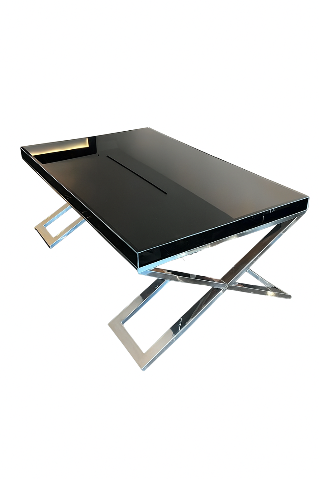 Çapraz metal ayakların keskin gücü, ayna dinginliğiyle biraraya gelerek mekanlara dominant bir modernlik katıyor.