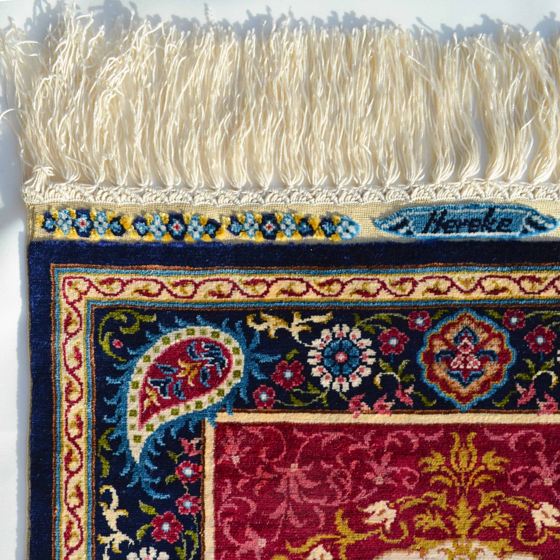 Büyük ebatlarıyla koleksiyonluk veya duvar dekorasyonu için idealdir. Bursa ipeğinin zarif dokusunu taşıyan bu halı, tarih ve estetiği yaşam alanınıza taşır.