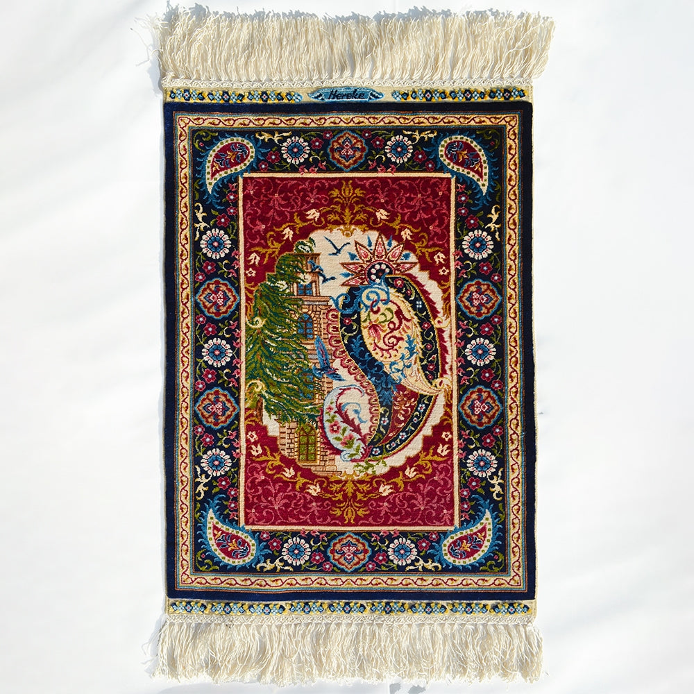 Orijinal Bursa ipeğinden, tamamen el işçiliğiyle dokunan bu özel Hereke halısı, 10x10 kaliteye sahip olup metrekaresinde yaklaşık 1 milyon düğüm barındırır. Saf ipek ipliklerin doğal parlaklığı, Tophane Saat Kulesi’nin zarif siluetini detaylı ve canlı renklerle öne çıkarır. Bursa’nın simgesi olan bu yapı, geleneksel el dokuma sanatının ince işçiliğiyle buluşur.